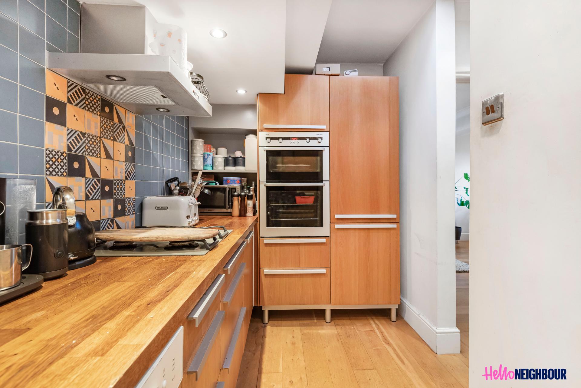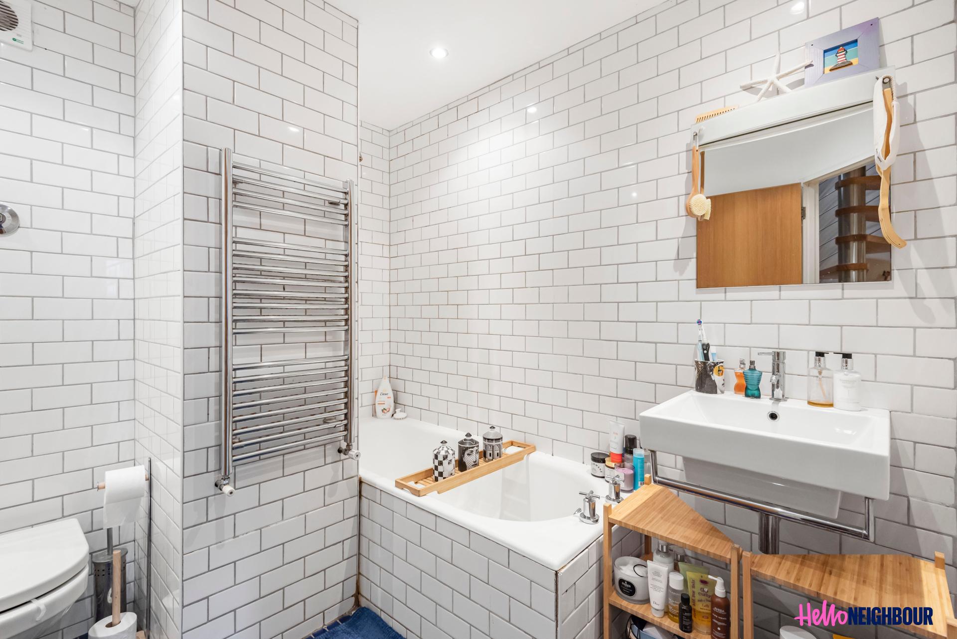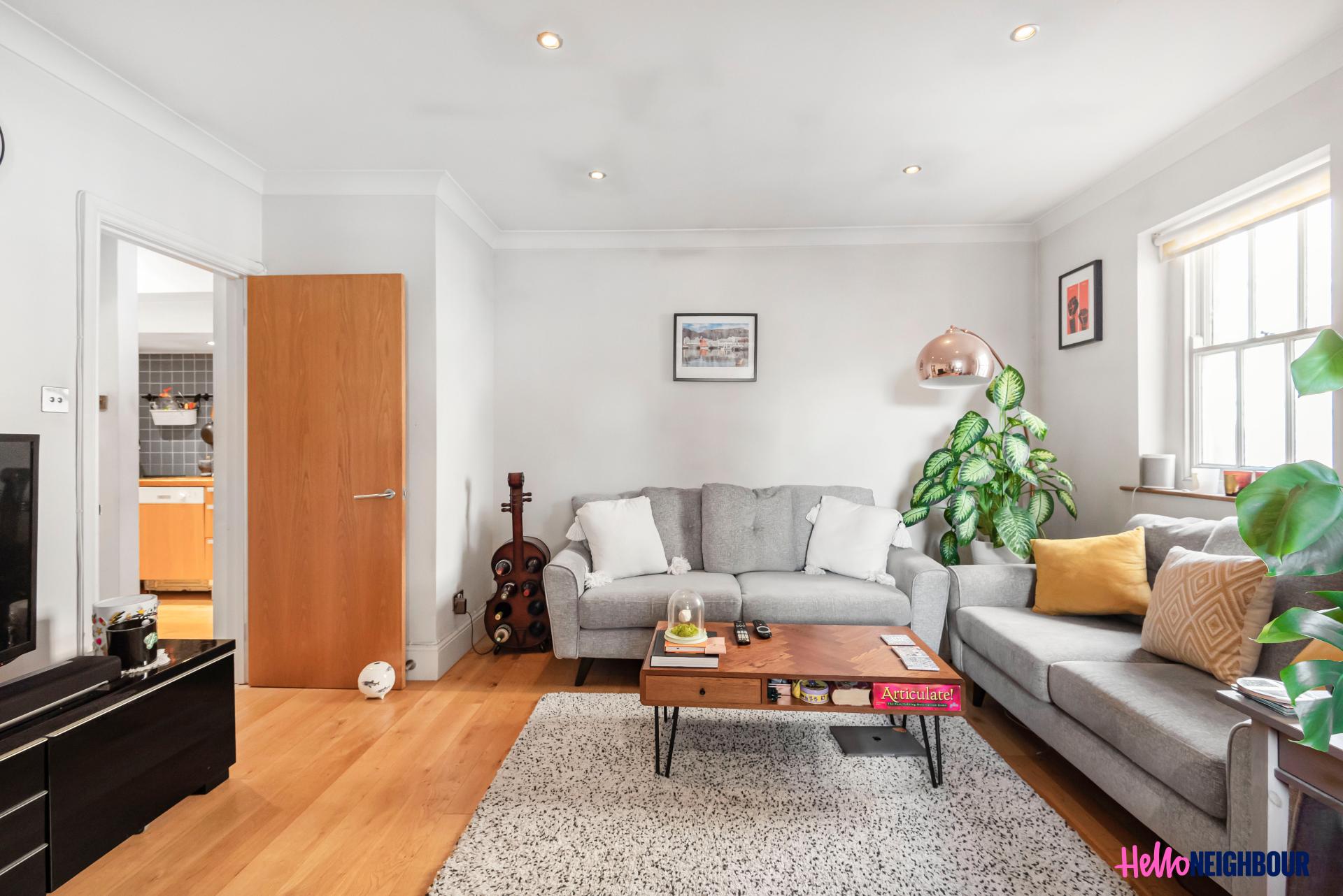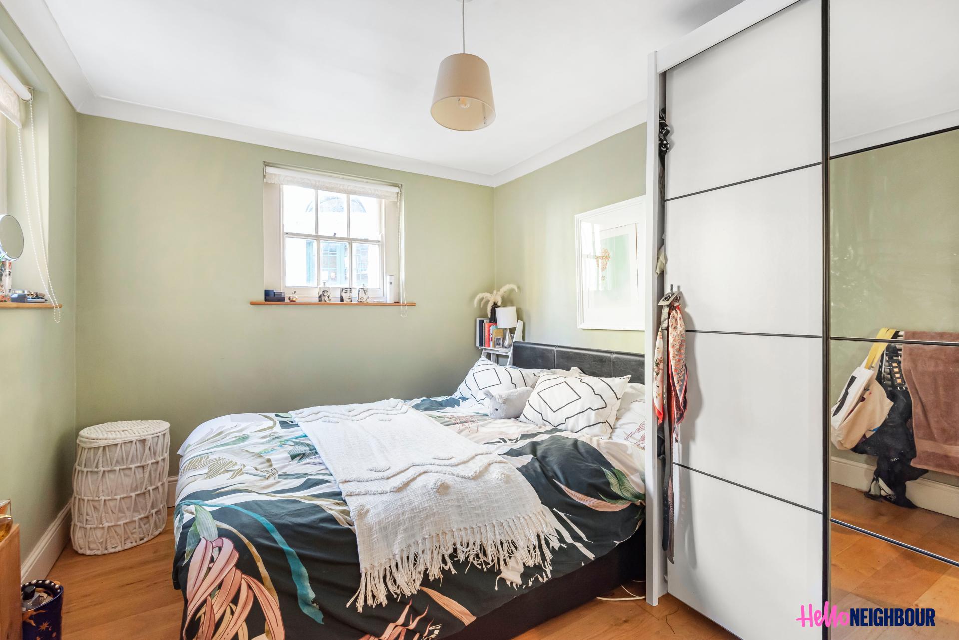 Hello-Neighbour proudly presents this lovely 2 bed & 1 bath apartment in East London E3.\n\nThis high spec property spans across two levels. The ground floor boats a huge reception area, 2 double bedrooms with large windows that allow ample natural light to brighten up the spaces. The level also includes a well sized 3 piece bathroom that has been elevated by the modern design finishes and built in storage space for ease and convenience. \n\nThe first floor is made up of a spacious living room with vast windows brightening up the space, the kitchen is well sized, and has stunning modern integrated appliances with built in storage. The property also benefits from an impressive spiral staircase which gives the property some character and at the top of the stairs there's space for a home office.\n\nTransportation links are easily accessible as Bow church station is a mere 4 minutes walk and Bow road station a stone throw away.\n \nSharers: Maximum 2 sharers as per HMO license\nParking: 1x space allocated.
