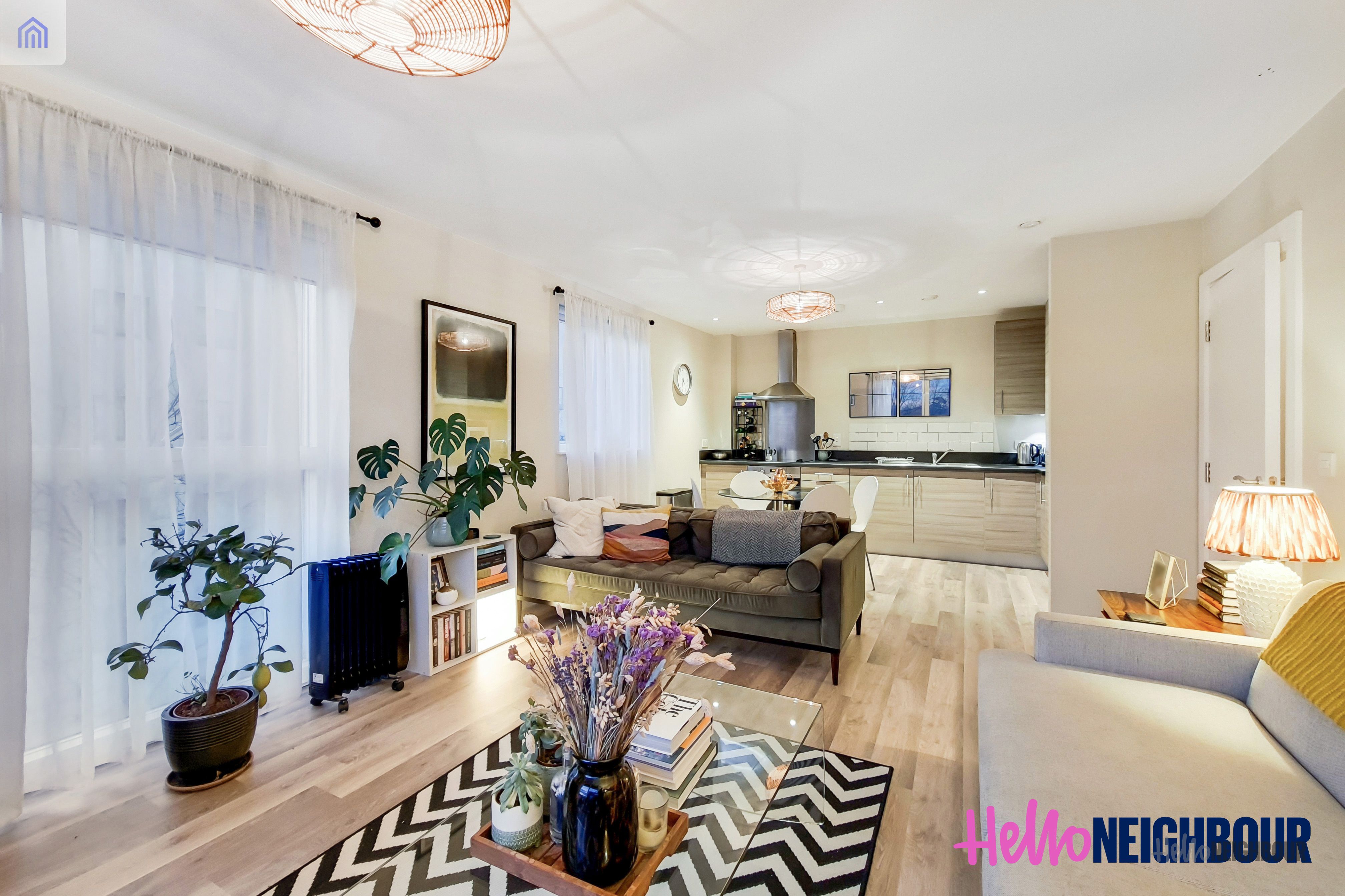 Hello Neighbour proudly presents this high spec 2 double bedroom property located in a highly sought after development moments from the River Thames in Brentford, TW8.\n\nThis 3rd floor property consists of an open plan living room, fitted kitchen with integrated appliances, a sleek modern full bathroom with a shower, two spacious double bedrooms and private south facing balcony with an unobscured view of the River Thames.\n\nThe Pump House Crescent property is located in a quiet development, moments from Kew Bridge. Residents can access an excellent selection of shops, cafes, pubs, and restaurants on both sides of the river, with a further selection of amenities nearby in Brentford, Chiswick, and Kew town centers. The Kew Bridge Mainline station and Gunnersbury Underground station provide commuters with transport links towards the city center, supplemented by local bus routes that pass along the nearby Kew Bridge Road making this an ideal home for a couple, families or x2 professional sharers. \n\nTransport\nKew Bridge Rail Station (0.5km)\nBrentford Rail Station (1.5km)\nGunnersbury Station (1.5 km)\n\nPets: Considered. \nSharers: Maximum 2 as per HMO license. \nParking: Not included.