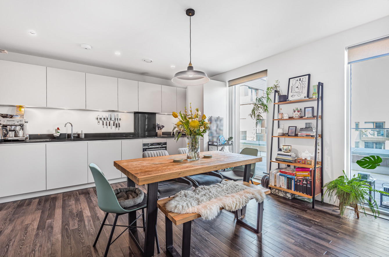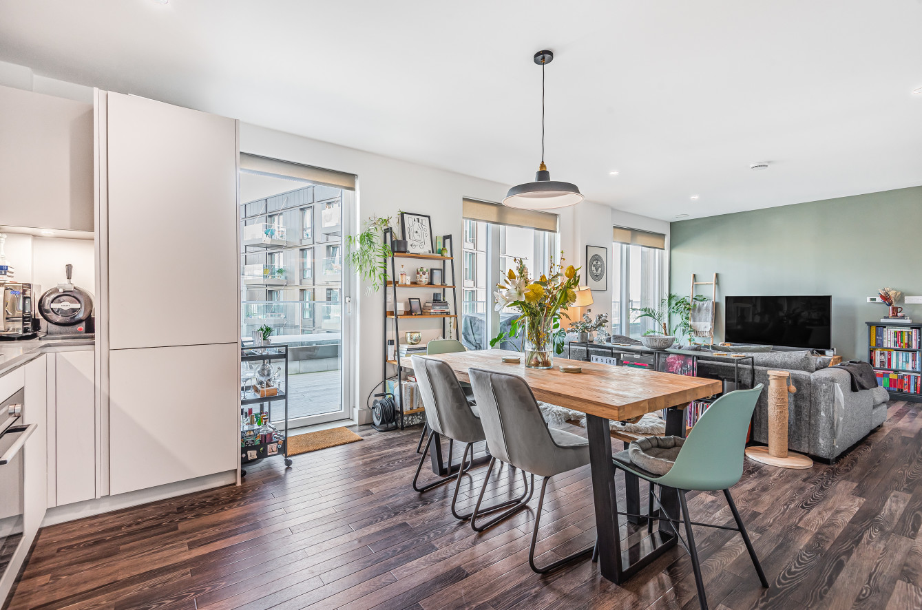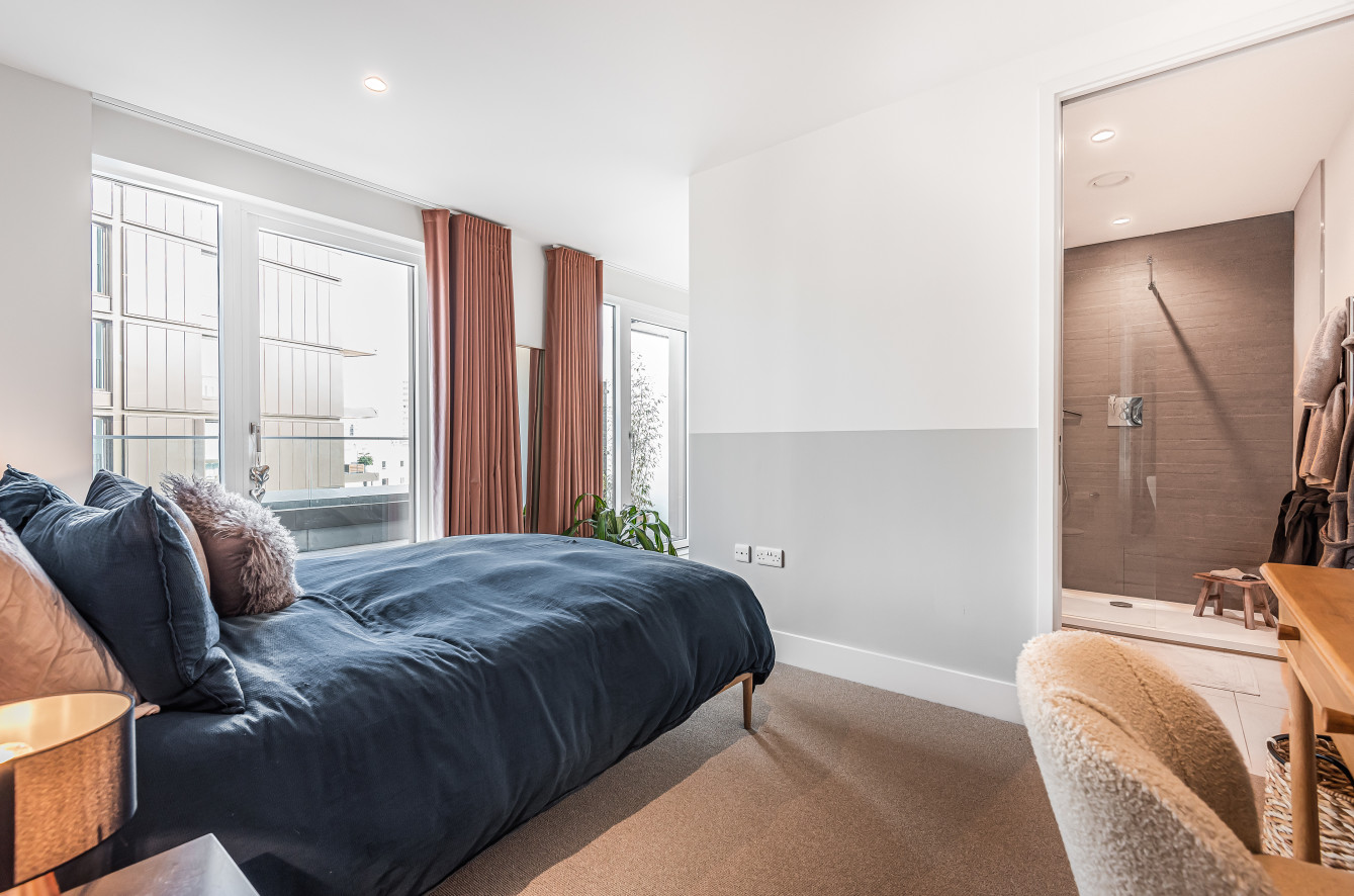 Hello Neighbour proudly presents this modern, high spec 3 bed apartment with a must see wrap around balcony situated in Deptford, SE14. \n\nThis stunning three bedroom apartment is set within the esteemed Anthology Deptford Foundry development, and offers incredible living space and streams of natural light throughout. \n\nThis modern property comprises of a large Master bedroom with an En-suite shower room, a further 2nd double bedroom, both benefiting from full height fitted wardrobes, plus a comfortable double currently being used a convenient home office. The property benefits from a large wrap round balcony which links all bedrooms to the light and airy open plan living room. The kitchen is fully equipped with ultra-modern and fully integrated appliances. \n\nThe Arbor House property is offered unfurnished and boasts stylish full height double glazed composite windows throughout, the contemporary kitchen features utility cupboards with heating / electrical components and washer dryer. The recently renovated Folkstone Gardens are on your doorstep, providing a peaceful spot for a stroll and a coffee, making the ideal home for professionals and those with a small family. \n\nPets: Considered.\nParking: Not included.