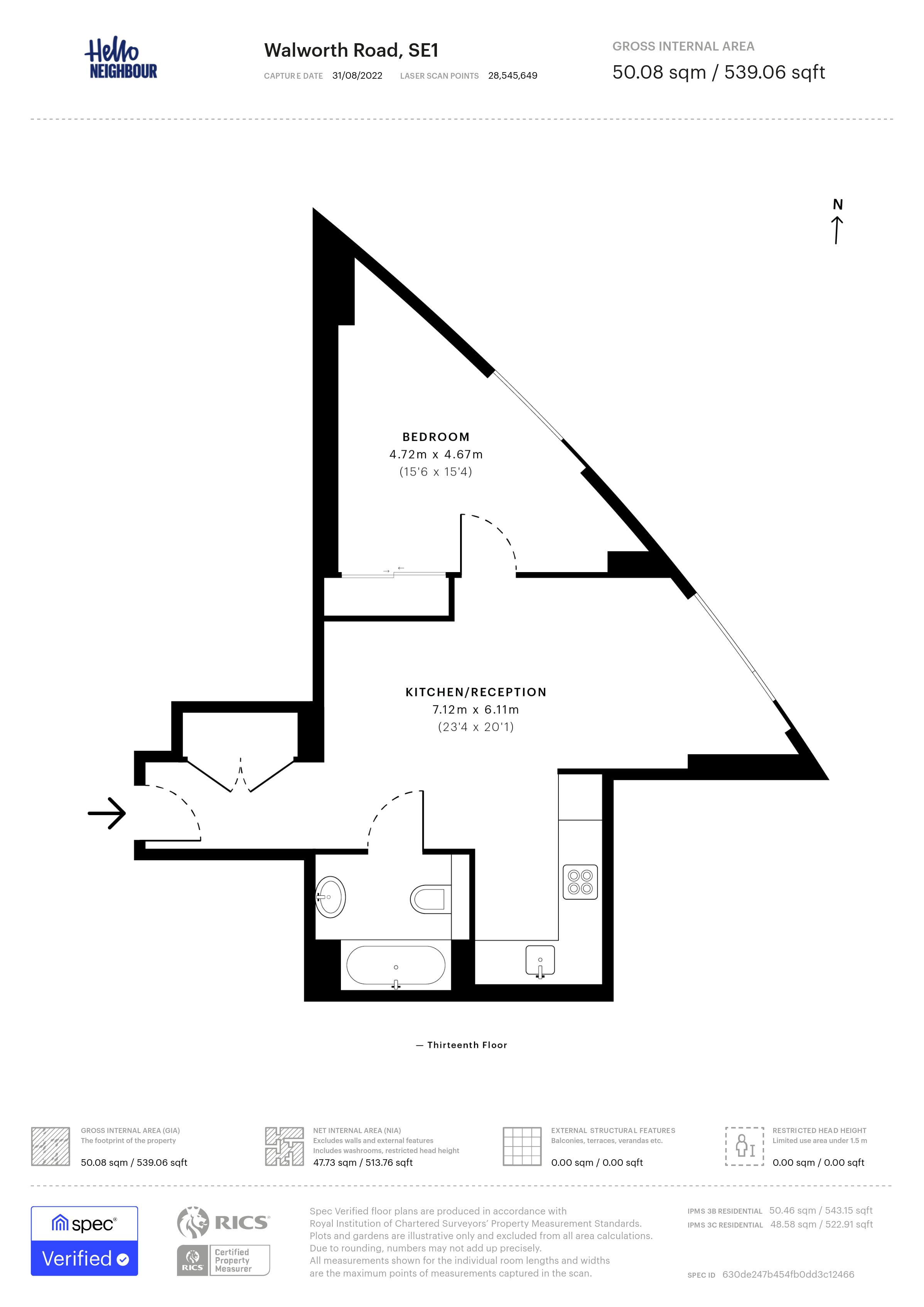 Hello Neighbour proudly present this beautifully presented, furnished one bedroom, one bath apartment in Elephant and Castle, SE1.\n\nLocated on the 13th floor of a highly sought-after development, this property features a spacious double bedroom and a large open-plan area that seamlessly blends a bright, modern kitchen with integrated appliances, a dining space, and a living area. The living area boasts a large window that floods the space with natural light and offers a beautiful view of Elephant Park. Additionally, down the hallway, there is a beautifully appointed three-piece bathroom with a convenient shower facility.\n\nAdditional benefits include recently installed flooring and access to 24 hour concierge service. The property is just a 3-minute walk from Elephant & Castle Station and a 10-minute walk from Kennington Station.\n\nThe property is in an excellent location with easy access to transport links, bars, restaurants, cinemas, theaters, shopping centers, parks, and recreation grounds, making it an ideal home for professionals.\n\nParking: None\nPets: Not permitted