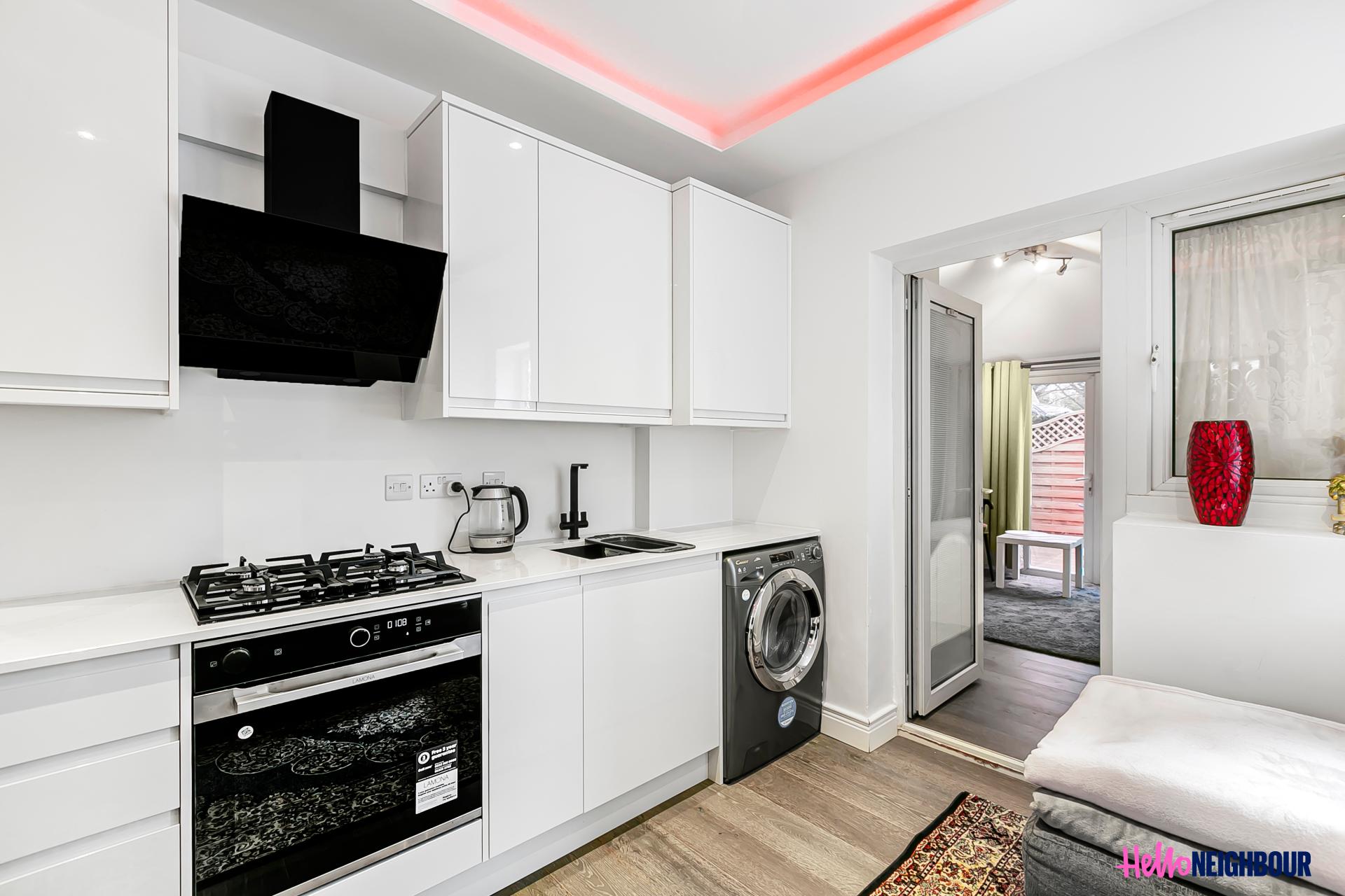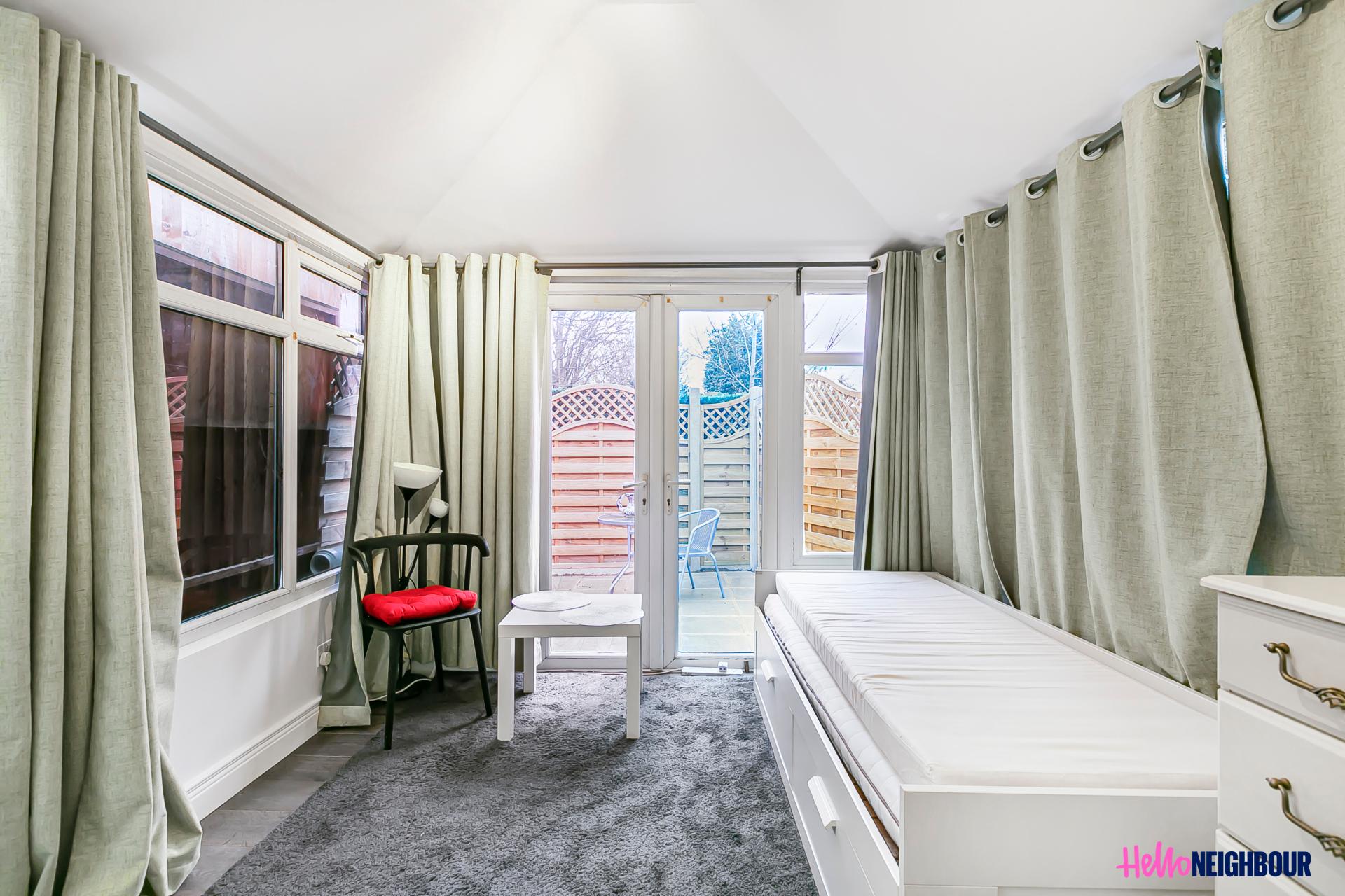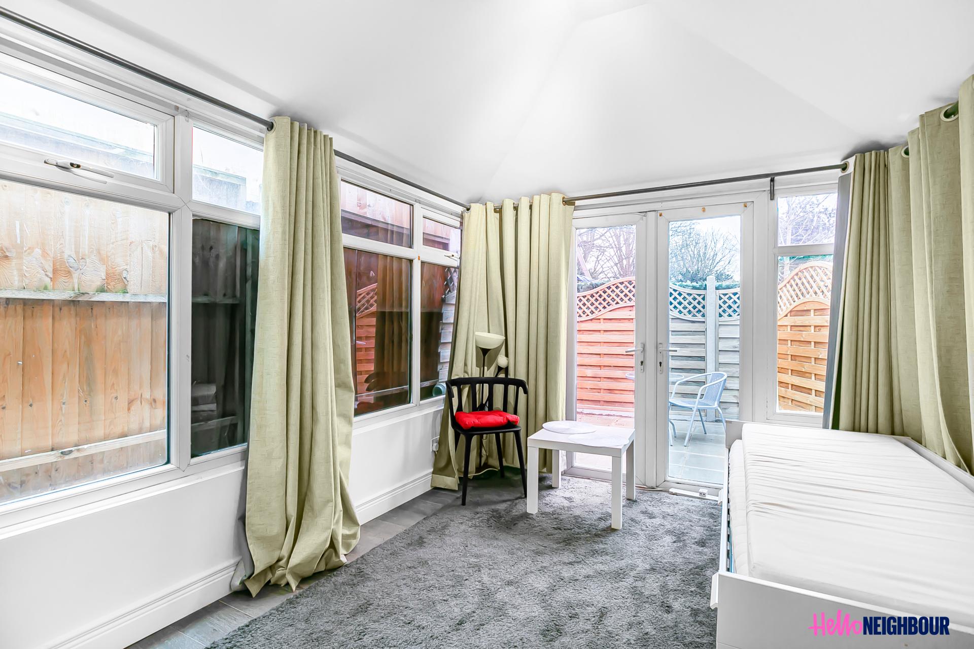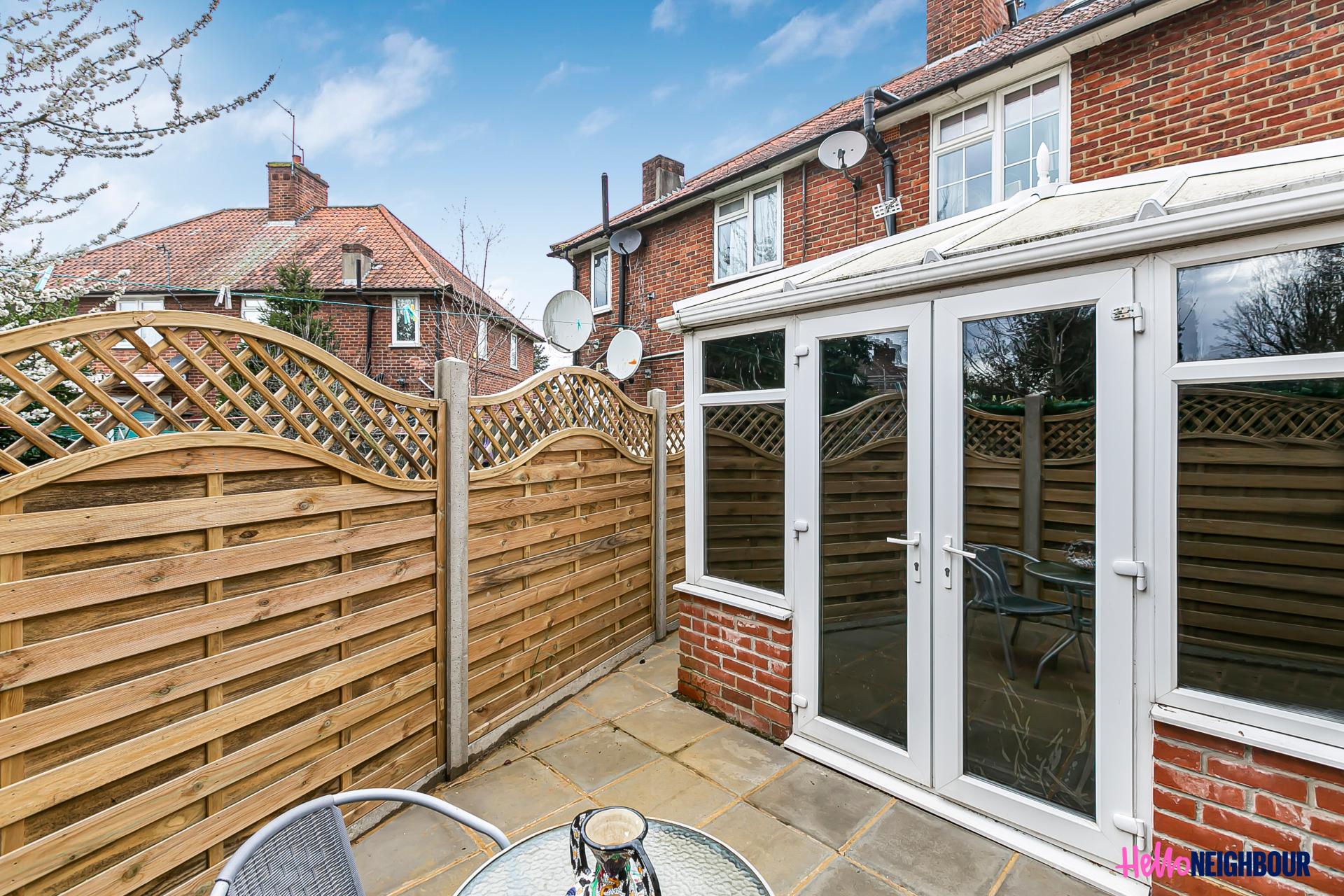 Hello Neighbour are very proud to present this stunning, furnished 2 beds, 1 bath property offering a unique blend of modern living and natural beauty. Situated within walking distance to Wormholt Park, this gem is gated and boasts a rear patio, perfect for enjoying the outdoors and entertaining guests.\n\nThe property comprises of a large open plan area made up of a living room and a fully fitted kitchen with integrated appliances. The master bedroom features a bay window for ample natural light, the conservatory space has been converted to a 2nd roomy bedroom and a well-appointed shower room with contemporary features. \n\nAvailable in April, the property is offered furnished, ready to move in. One of the highlights of this property is its private patio, which provides a serene oasis for outdoor activities and relaxation. The rear patio is perfect for hosting BBQ's or enjoying a morning cup of coffee. Additionally, the property benefits from a convenient location, within walking distance to local amenities, shops, restaurants, and Wormholt Park, where you can enjoy nature walks, picnics, and recreational activities making it the ideal home for professionals max 2 x sharer's.\n\nTransport:\nThe Bryony Road property is conveniently located for transport as its a mere 8 minute journey from East Acton Station whilst White City Station is a mere 12 minute journey on foot from the property.\n\nPets: not allowed.\nParking: permit on street via council.