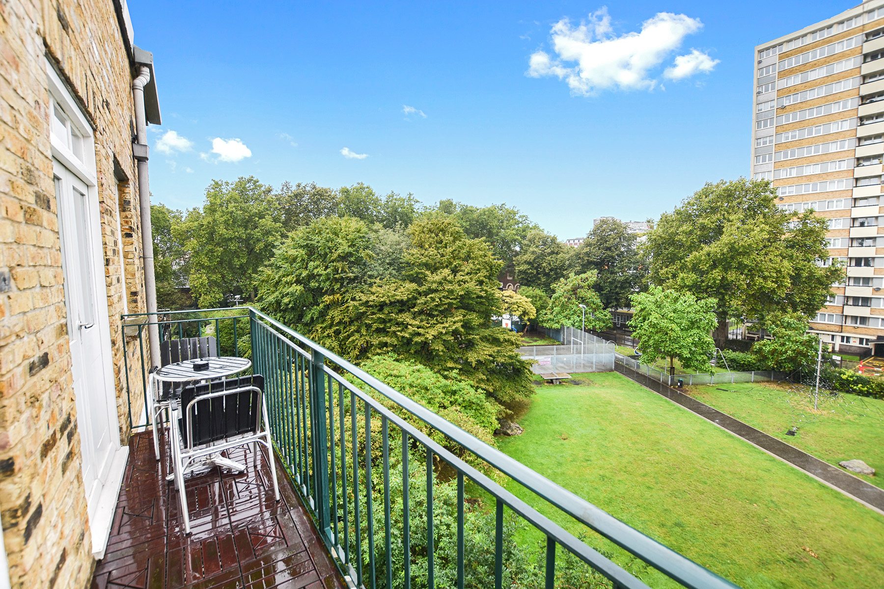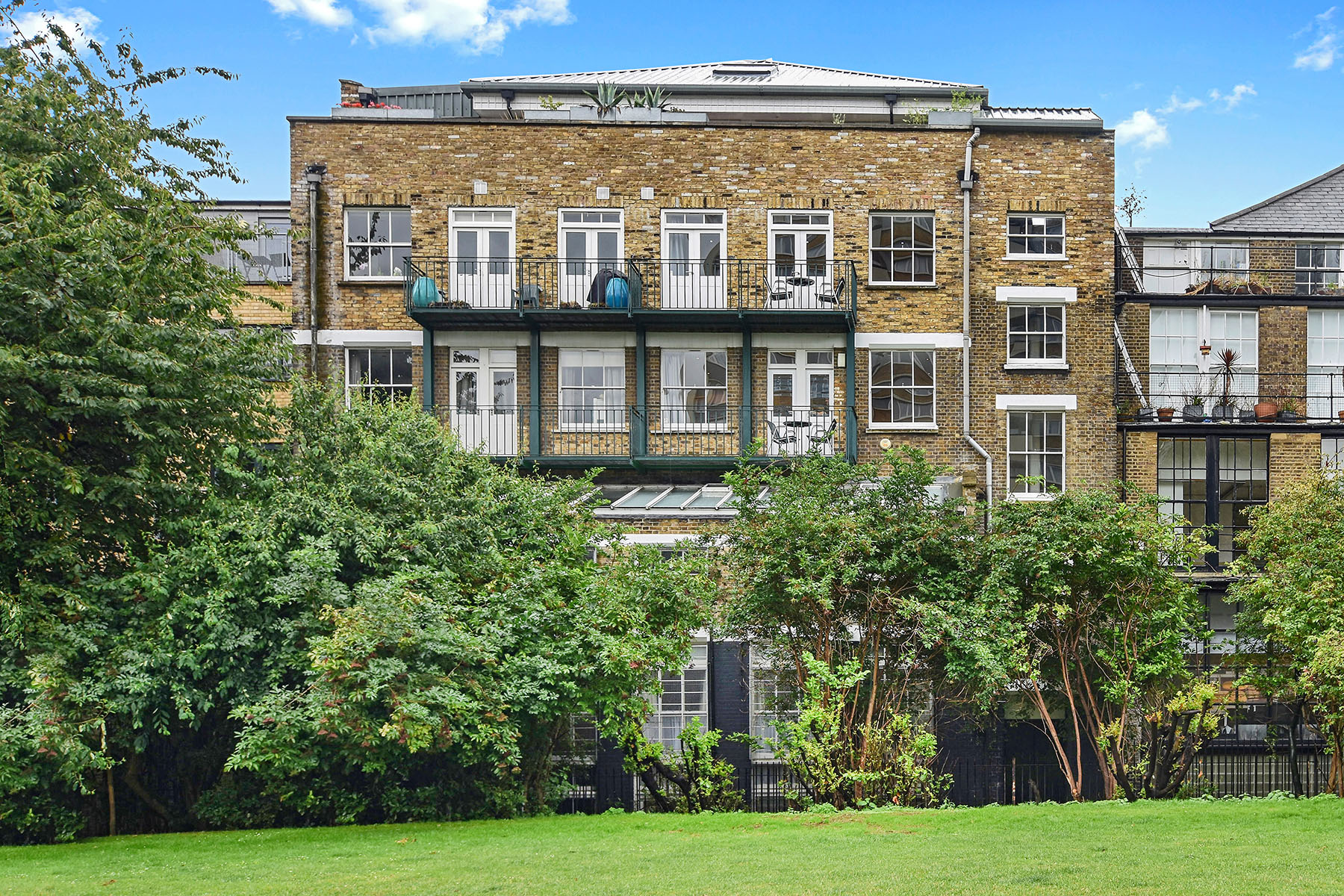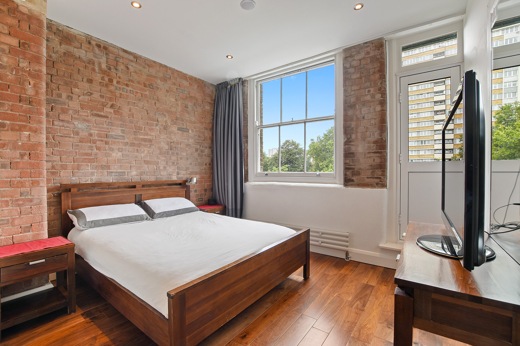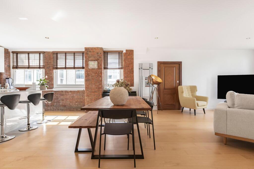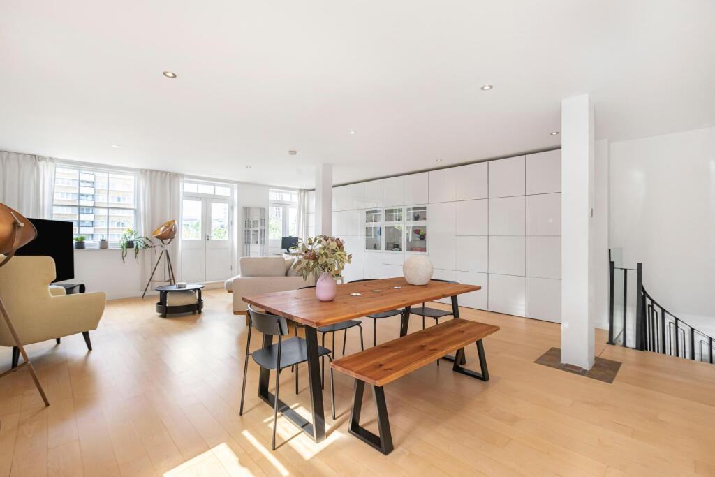 Step into this impressive two-storey loft apartment on a quiet street — just moments from Old Street station and the buzz of Shoreditch and The City.\n\nThe entrance opens on the lower level, where you’ll find two generous double bedrooms, each with ample storage, large windows, and direct access to a private balcony. This floor also features two modern bathrooms and a handy laundry area, blending comfort with convenience.\n\nAscend the spiral staircase to the upper level, where a stylish open-plan living space awaits. Designed with an industrial edge, this bright and versatile area is perfect for entertaining, dining, or simply unwinding. The contemporary kitchen boasts quartz worktops, feature lighting, and a central island with breakfast bar, making it the heart of the home. From here, step out onto a second balcony with open views across the park - a dynamic backdrop for evening sunsets. Substantial storage and a full bathroom complete this level.\n\nWith 1,280 sq ft of living space, two balconies, and a prime location, this loft offers the perfect balance of industrial character and modern finishings, all in the heart of the city.