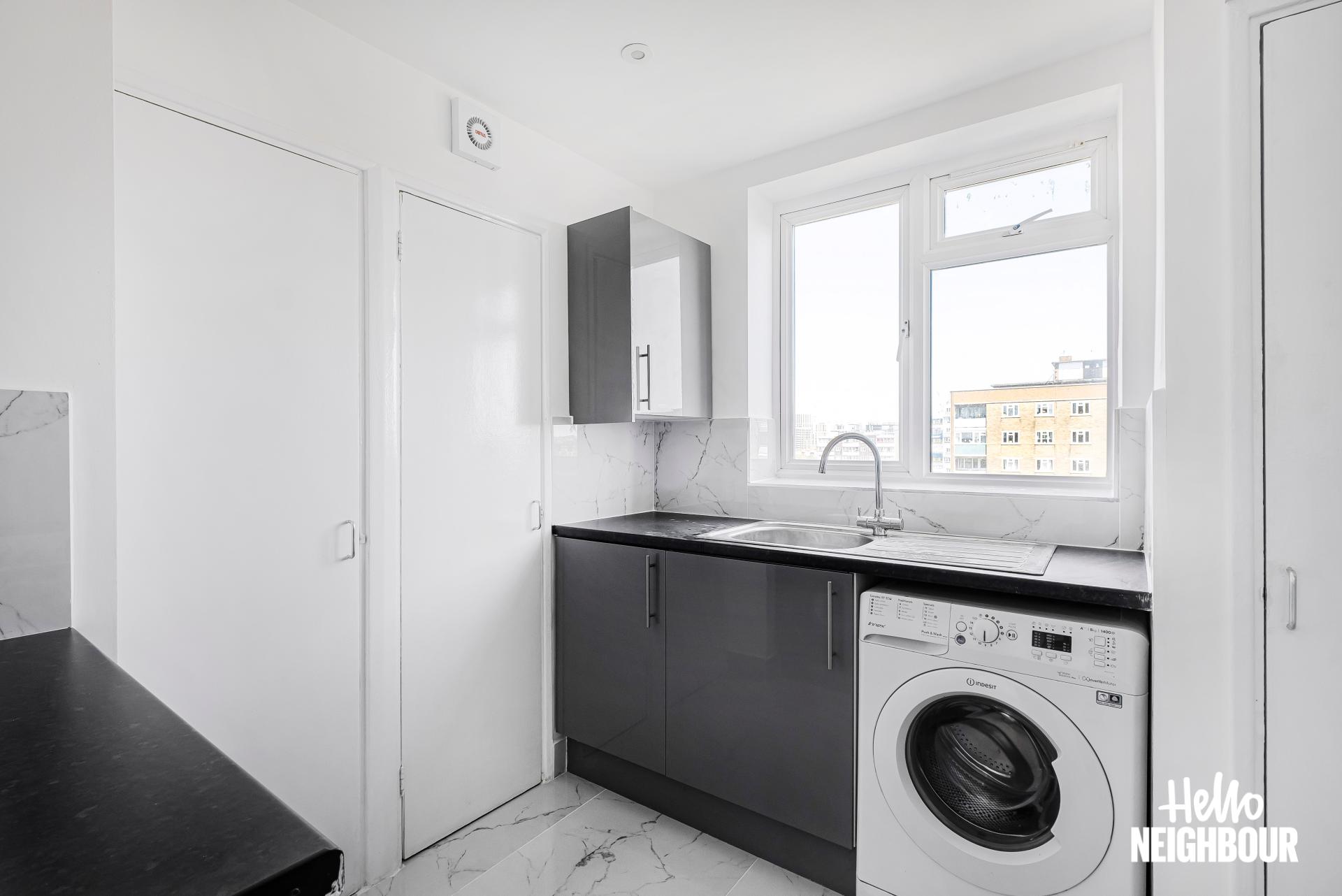 Hello Neighbour proudly presents this newly refurbished 2-bedroom apartment offering contemporary living in the heart of Wandsworth, SW18.\n\nLocated on the 9th floor, this bright and stylish home features large windows filling the space with natural light. The layout includes a spacious living room with access to a private balcony, a modern separate kitchen with ample storage and essential appliances, and a sleek 3-piece bathroom with quality finishes.\n\nBoth double bedrooms are generously sized, offering comfort and flexibility for professional sharers or couples. The apartment is offered unfurnished, allowing tenants to make it their own.\n\nResidents benefit from permit parking, and the property is ideally situated close to shops, restaurants, parks, and excellent transport links. For commuters, Queenstown Road (Battersea) and Battersea Park Rail Stations are both within a 10-minute walk, offering easy access across London. A perfect choice for professionals seeking a bright, modern home in a well-connected and desirable location.\n\nPets: Not accepted \nSharers: Maximum 2x sharer's as per HMO license\nParking: Permit parking