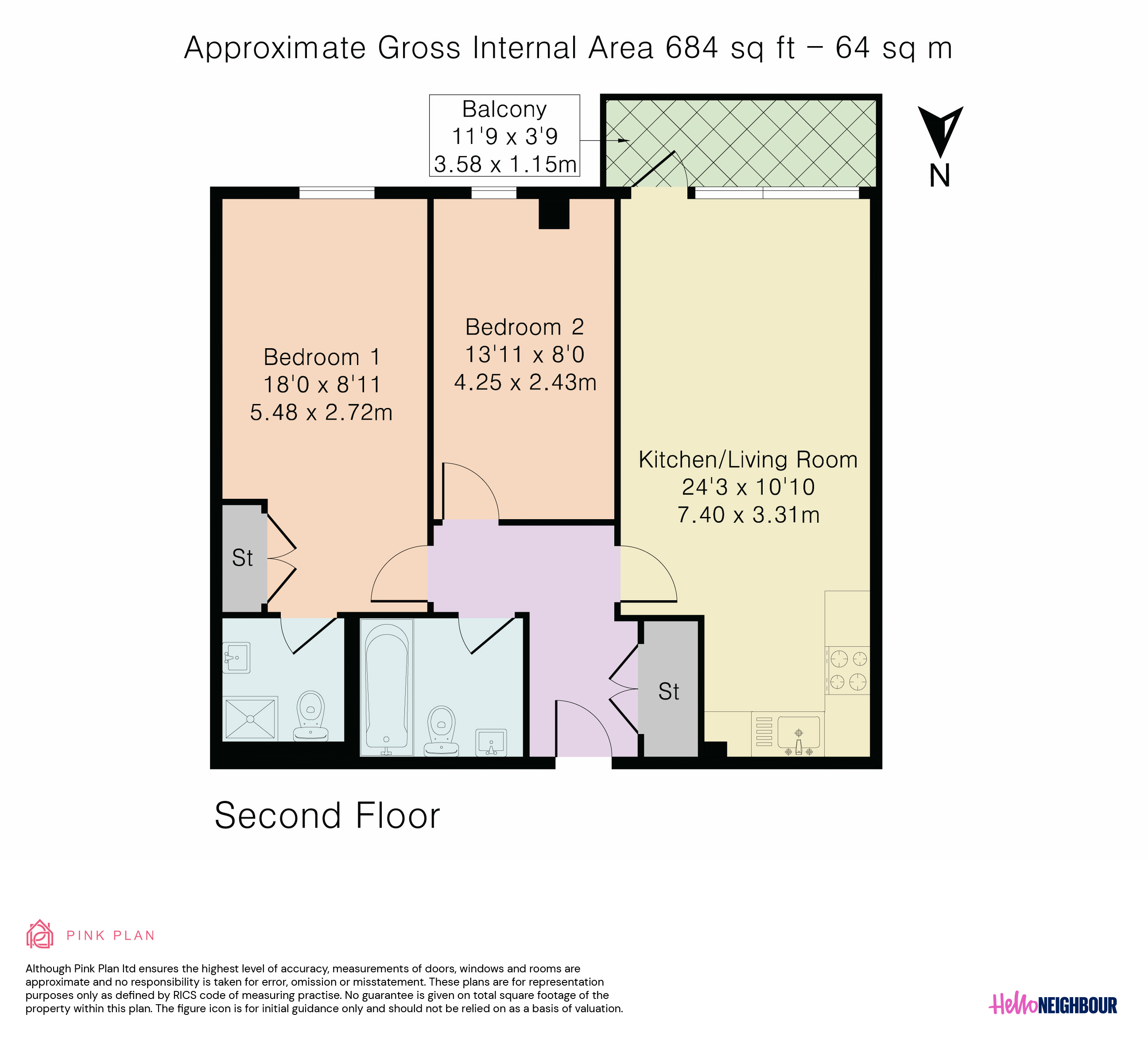 684 sq ft