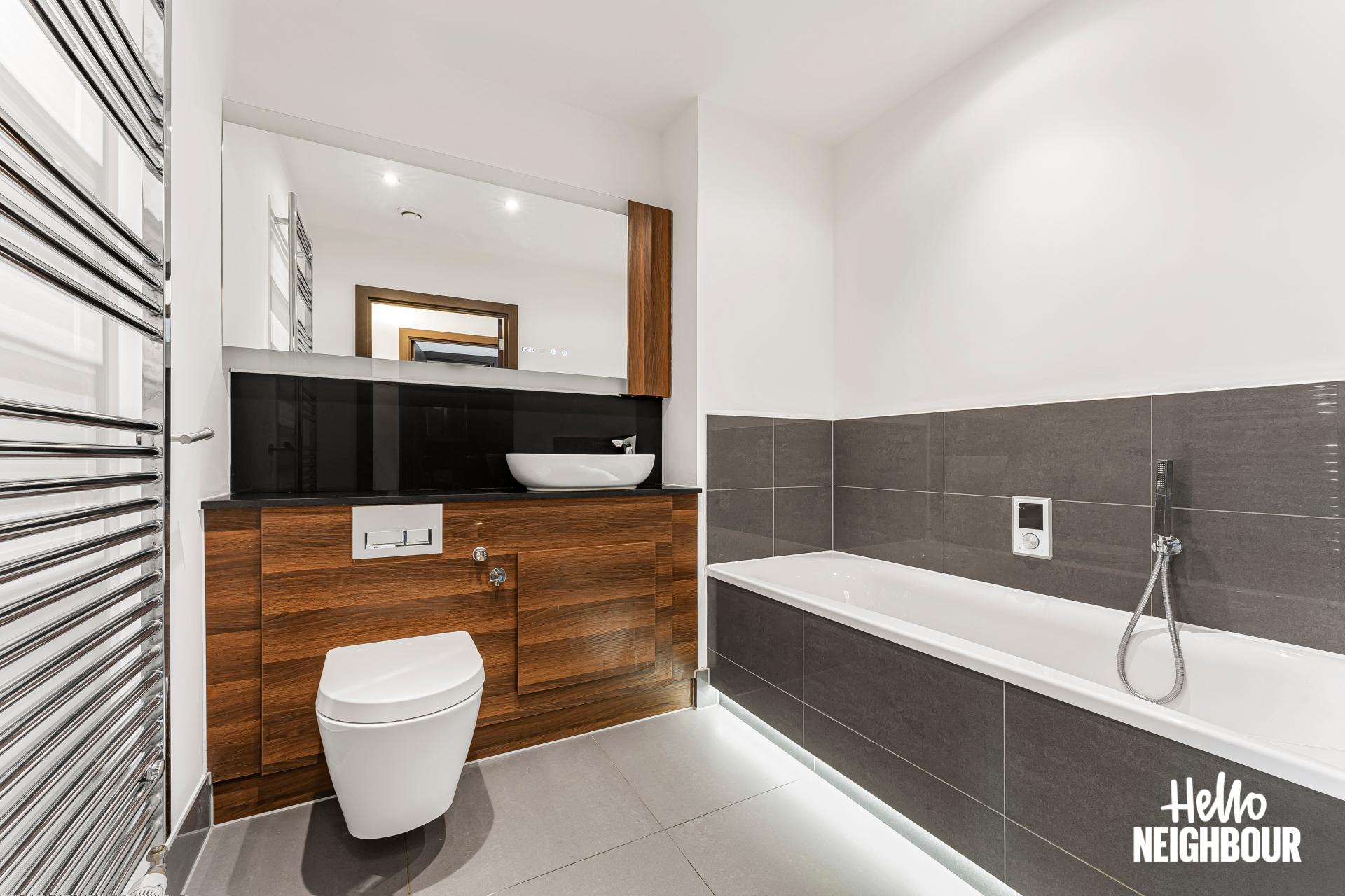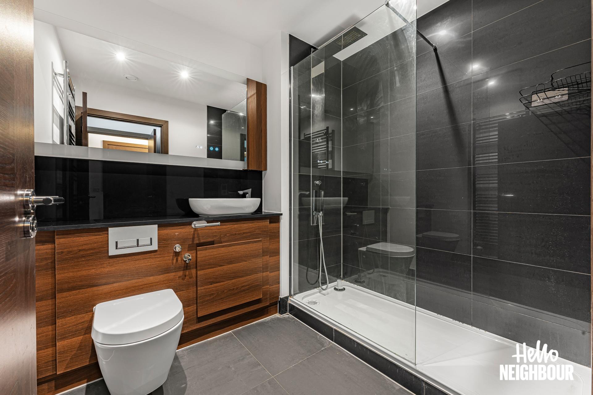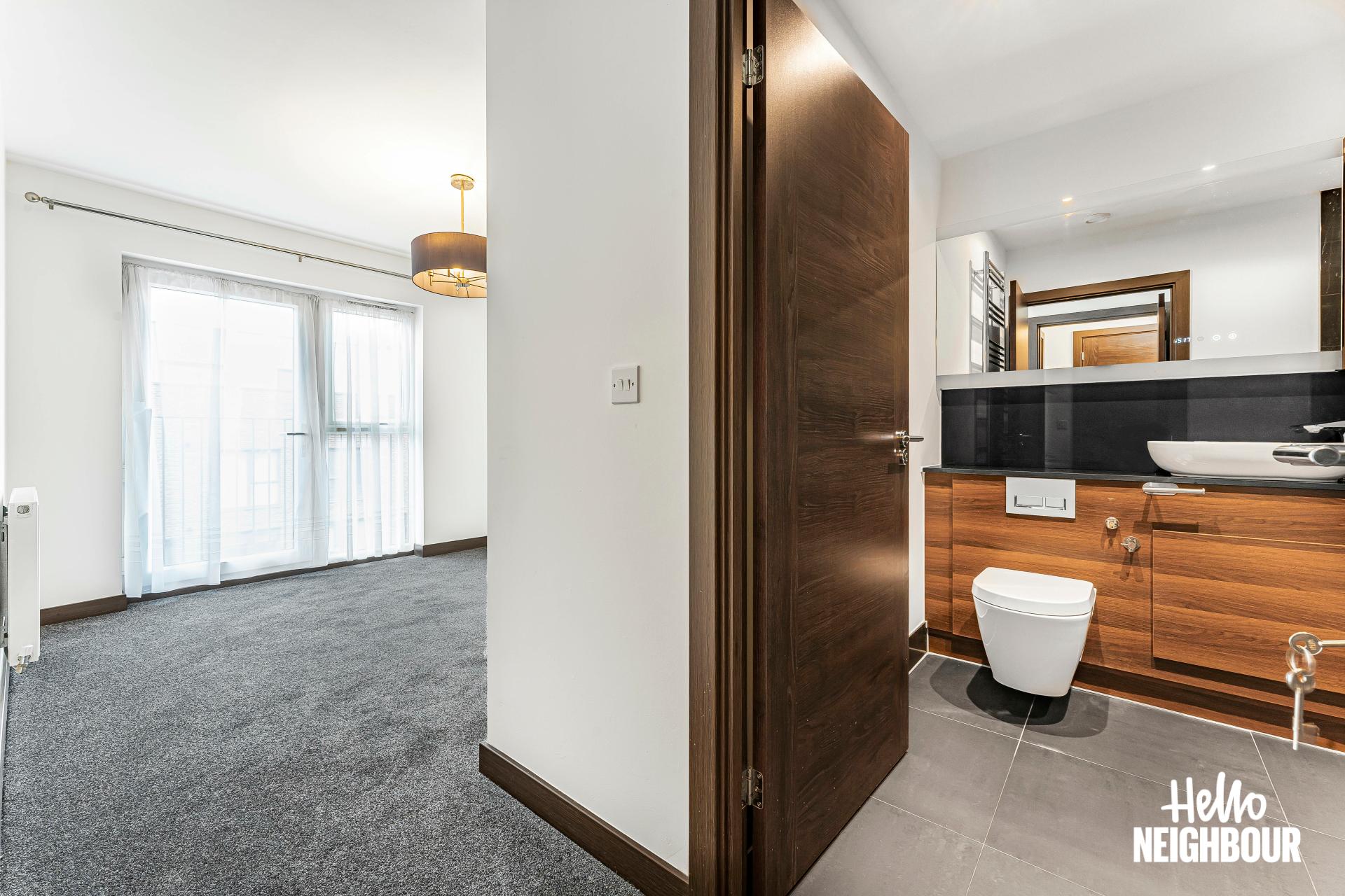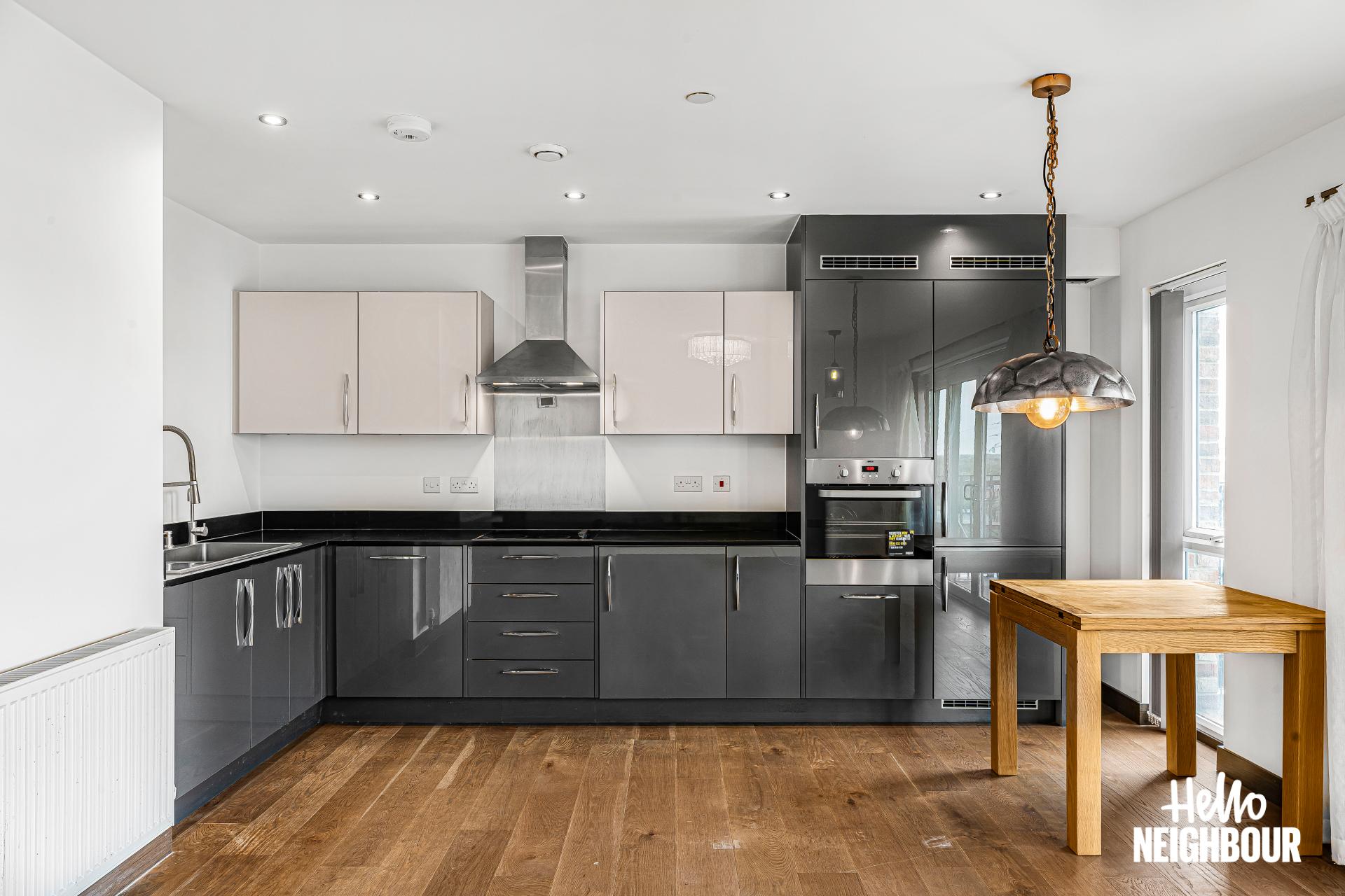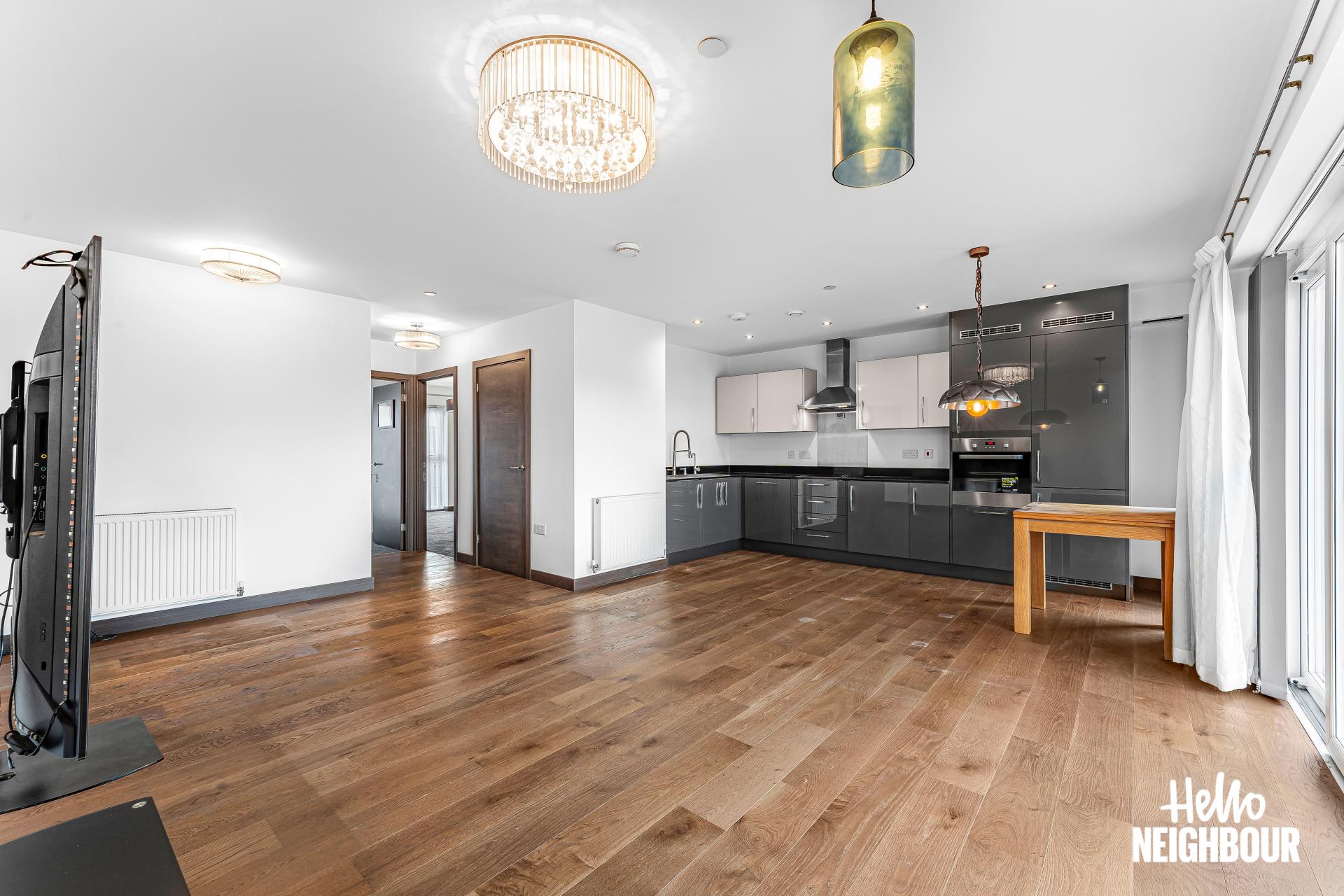 Hello Neighbour are proud to present this modern and spacious 2-bedroom flat part furnished, located in Barking, IG11.\n\nBoasting a spacious layout and high-spec finishes throughout, this property this property is ideal for a professional single applicant, couples or small family. The flat is spacious, and light filled, thanks to large windows that flood the space with natural light, creating a warm and inviting atmosphere.\n\nUpon entering, you are greeted by an airy reception room bathed in natural light, leading seamlessly to a large balcony. The open-plan design effortlessly connects the reception room to a fitted modern kitchen, complete with integrated appliances. The two double bedrooms feature storage options plus one of them has a private balcony, and the two 3-piece bathrooms offer convenience and comfort for residents and guests alike.\n\nSituated within walking distance to the picturesque green spaces of Barking Abbey Grounds, residents can enjoy leisurely strolls and outdoor activities amidst tranquil surroundings. Furthermore, Barking rail station is just a 12-minute walk away, providing easy access to central London and beyond.\n\n*To book a viewing: submit your enquiry and you'll receive an email and SMS detailing availability - within 10 min