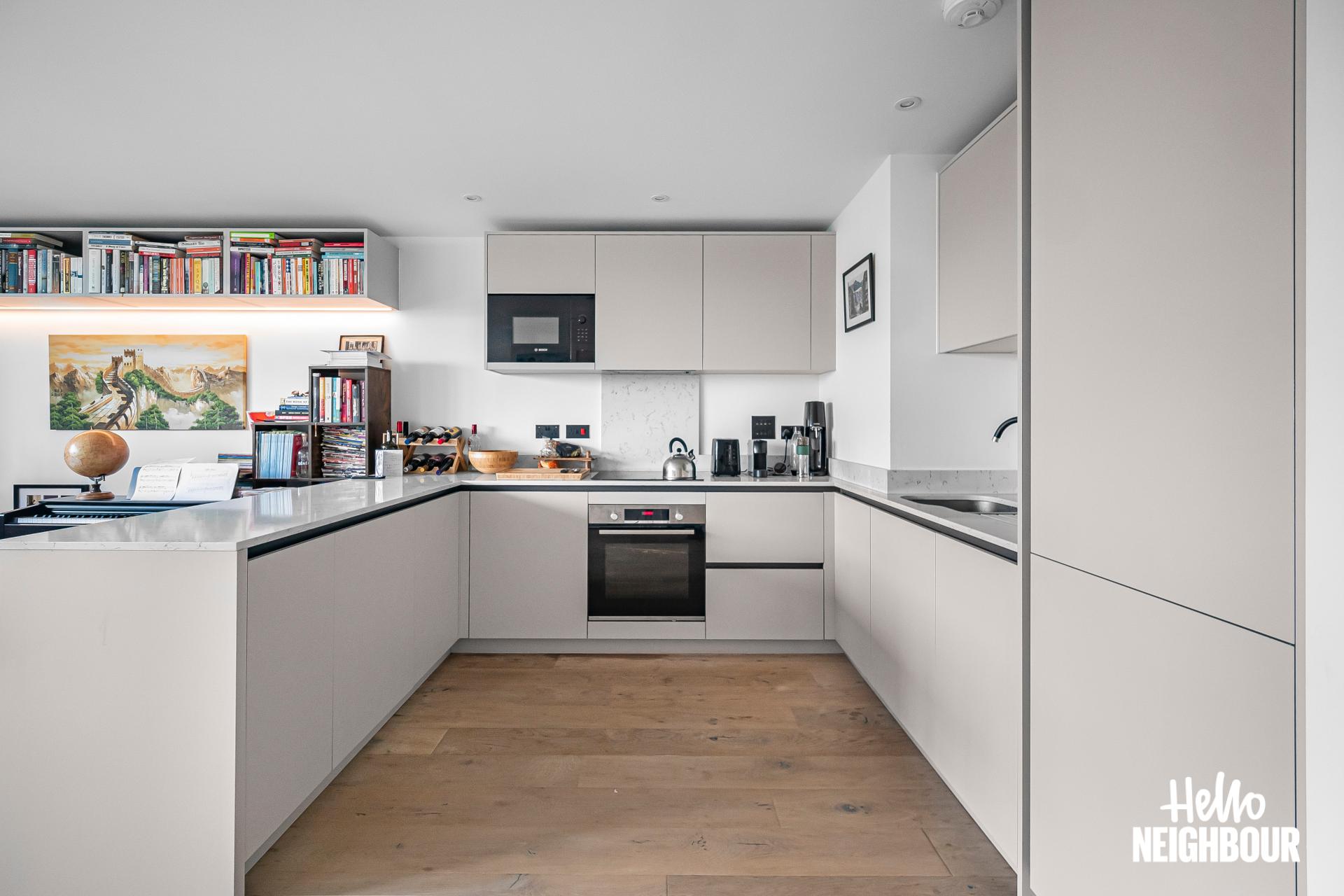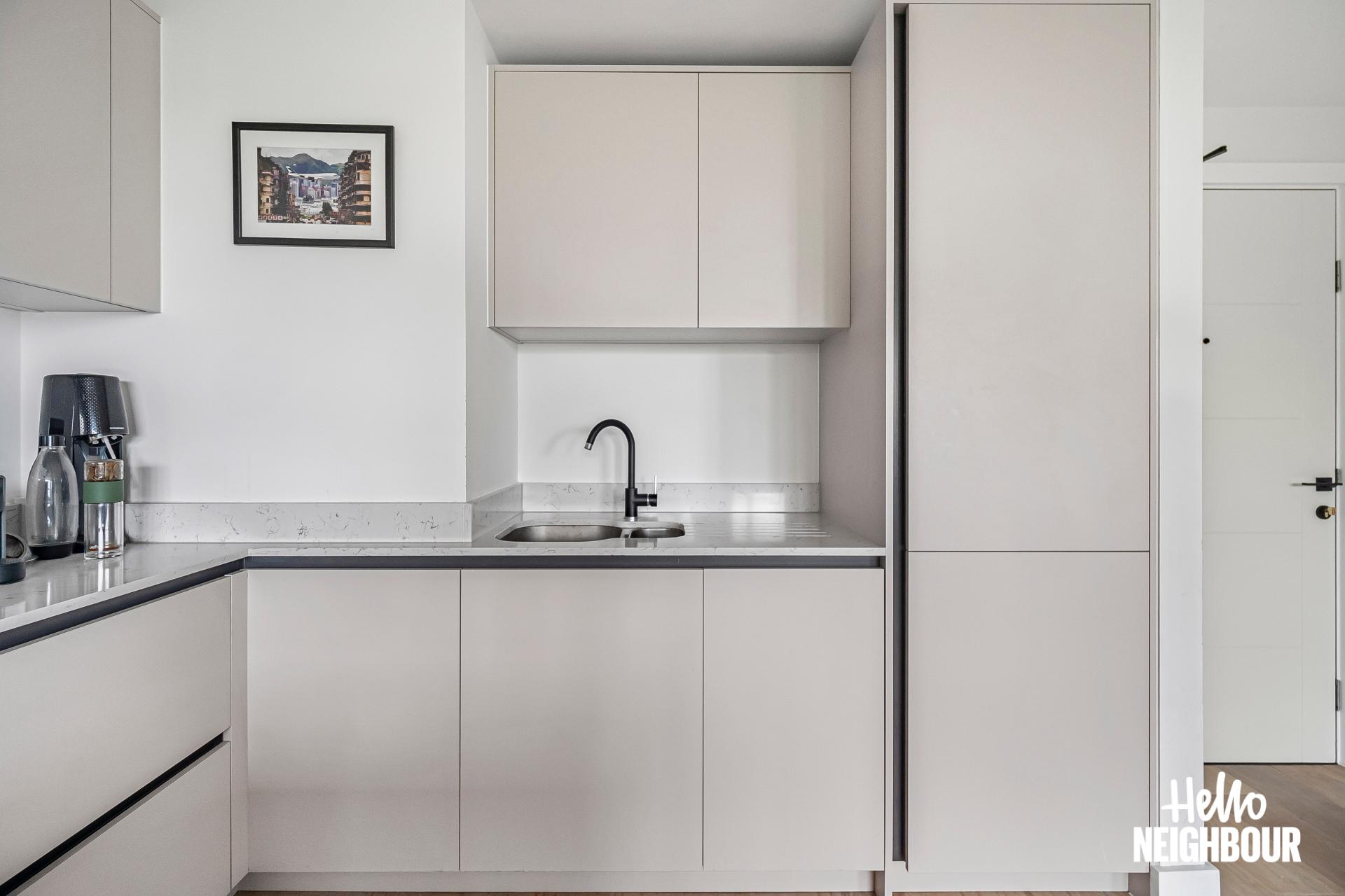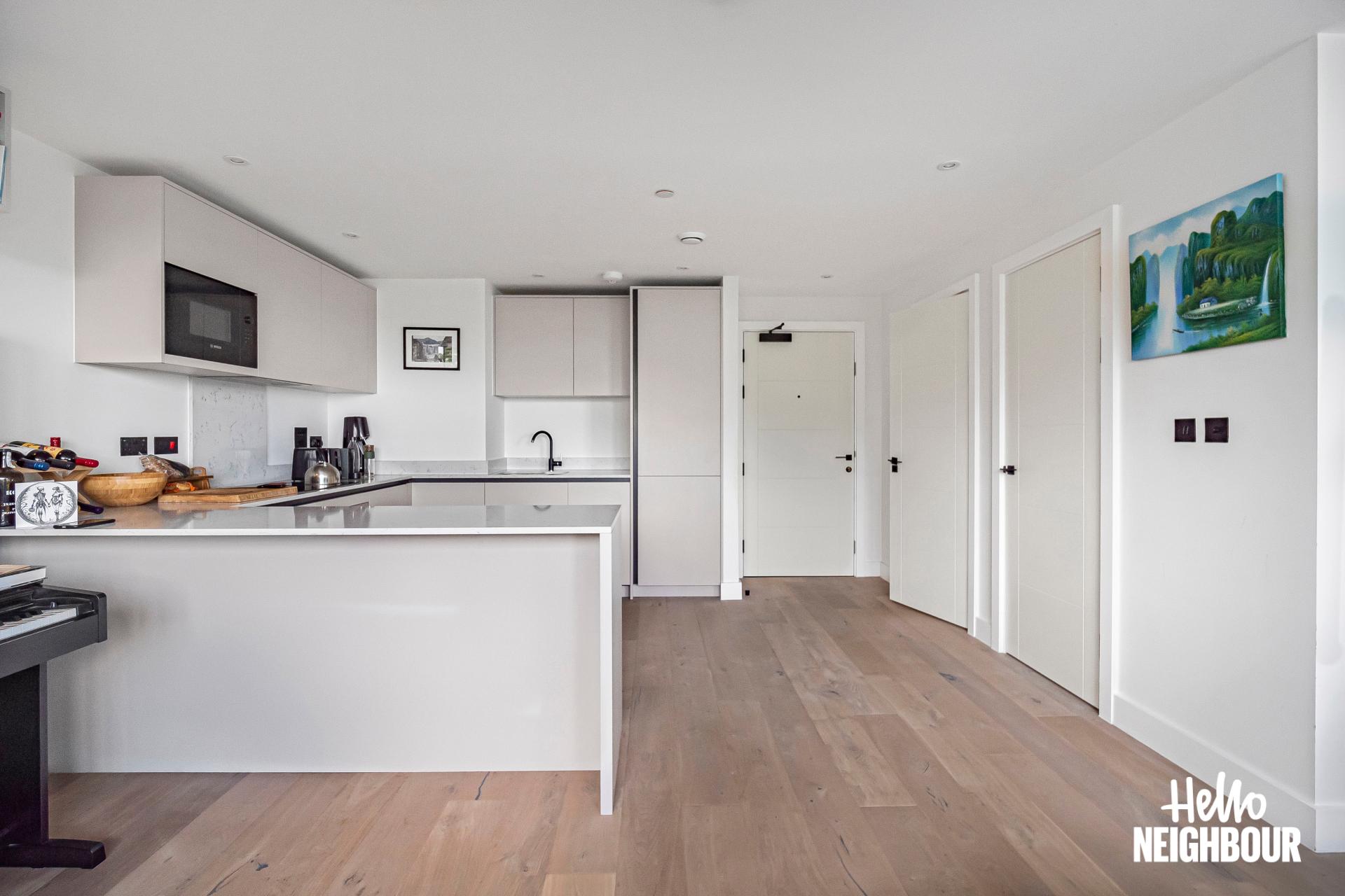 Hello Neighbour are proud to present this beautifully designed studio flat in this modern, new developed Irene House in the heart of Balham. \n\nFinished to a high quality and carefully designed to make most of the space. Bespoke kitchen area with stone worktops, integrated appliances and led lighting. The bedroom area is separated from the rest of the living spaces by a stylish divider that complements the decor, while the main living area enjoys ample natural light from the large windows. The property is finished off by a contemporary bathroom with a glass shower.\n\nThe studio has oak flooring throughout, comes part-furnished. Irene Studios benefit from residents' lounge, private dining room, games room, and business centre. Basement storage is also available for residents, useful for bike storage.\n\nThe property is situated in the heart of Balham, known for its village vibe and relaxed, friendly atmosphere. It is ideally positioned near all three commons: Wandsworth Common is a 9-minute walk (0.6 miles), Clapham Common is a mile away, and Tooting Common is just a 12-minute walk (0.6 miles). Balham's tube and train stations provide excellent transport links for quick access to the city.\n\n*To book a viewing: submit your enquiry and you'll receive an email and SMS detailing availability - within 10 min