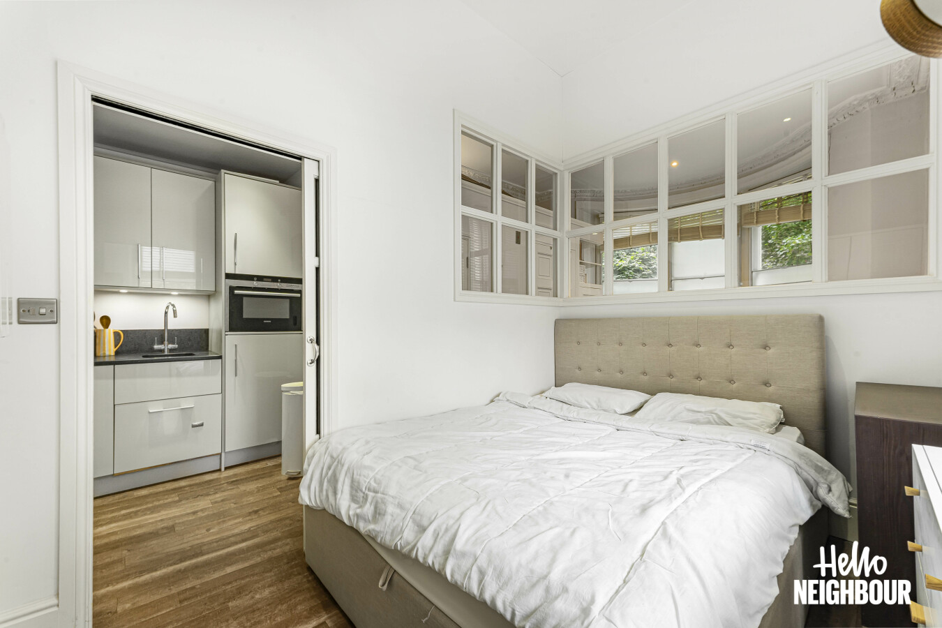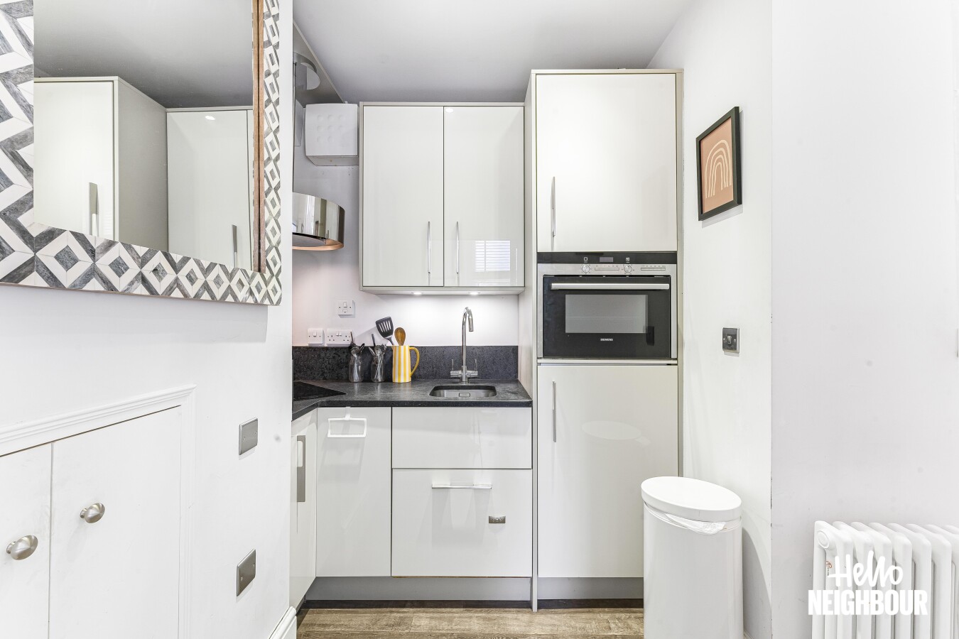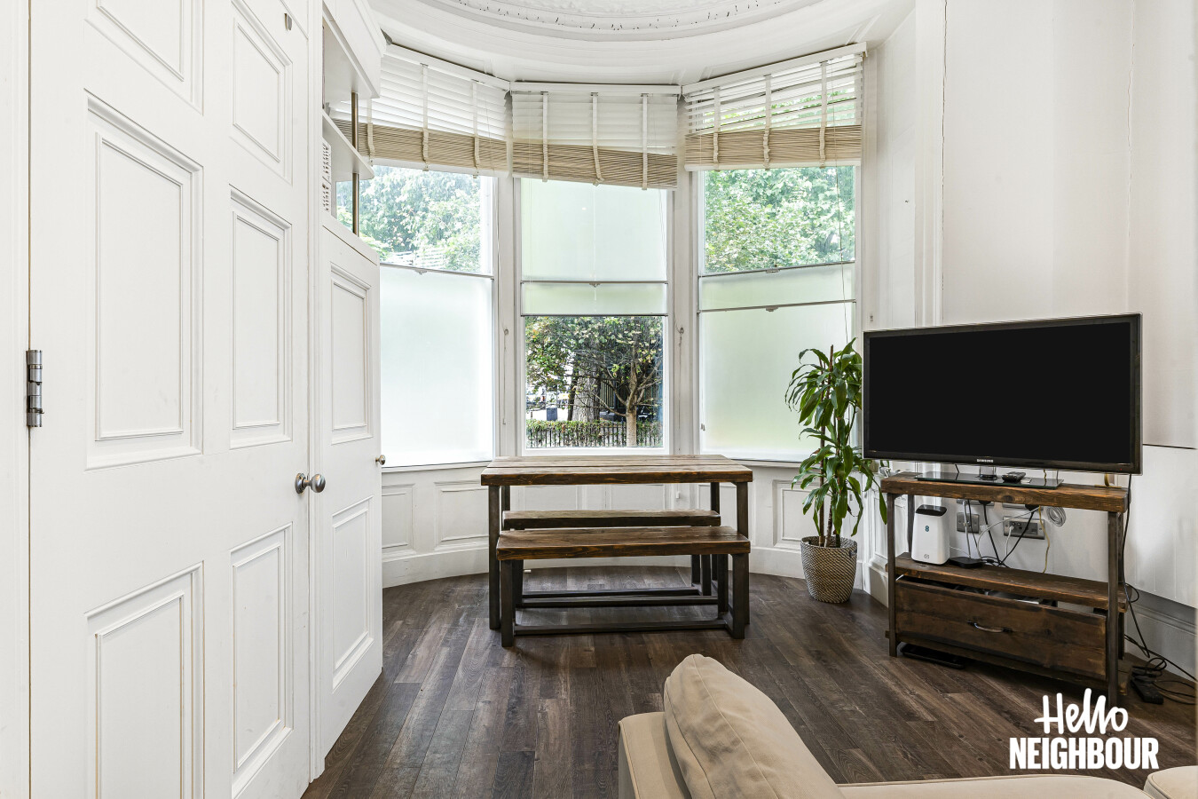 Hello Neighbour are proud to present this beautifully presented 1-bedroom conversion apartment, set within the iconic Grade II listed Dalby House in Clerkenwell, EC1V.\n\nThis furnished home perfectly blends period charm with modern design. The bright and spacious living area offers an inviting space for both relaxing and entertaining, complemented by a sleek fitted kitchen equipped with contemporary appliances. The generous double bedroom includes built-in cupboards for convenient storage, and the modern 3-piece shower room completes the accommodation.\n\nIdeally located for professionals, the property is within easy reach of Angel, King’s Cross/St Pancras, and Farringdon Stations, with excellent bus links providing quick access to the West End and The City.\n\nA unique opportunity to enjoy a home that combines historical character with modern living in one of London’s most vibrant neighbourhoods.\n\nPets: Not permitted\nParking: None