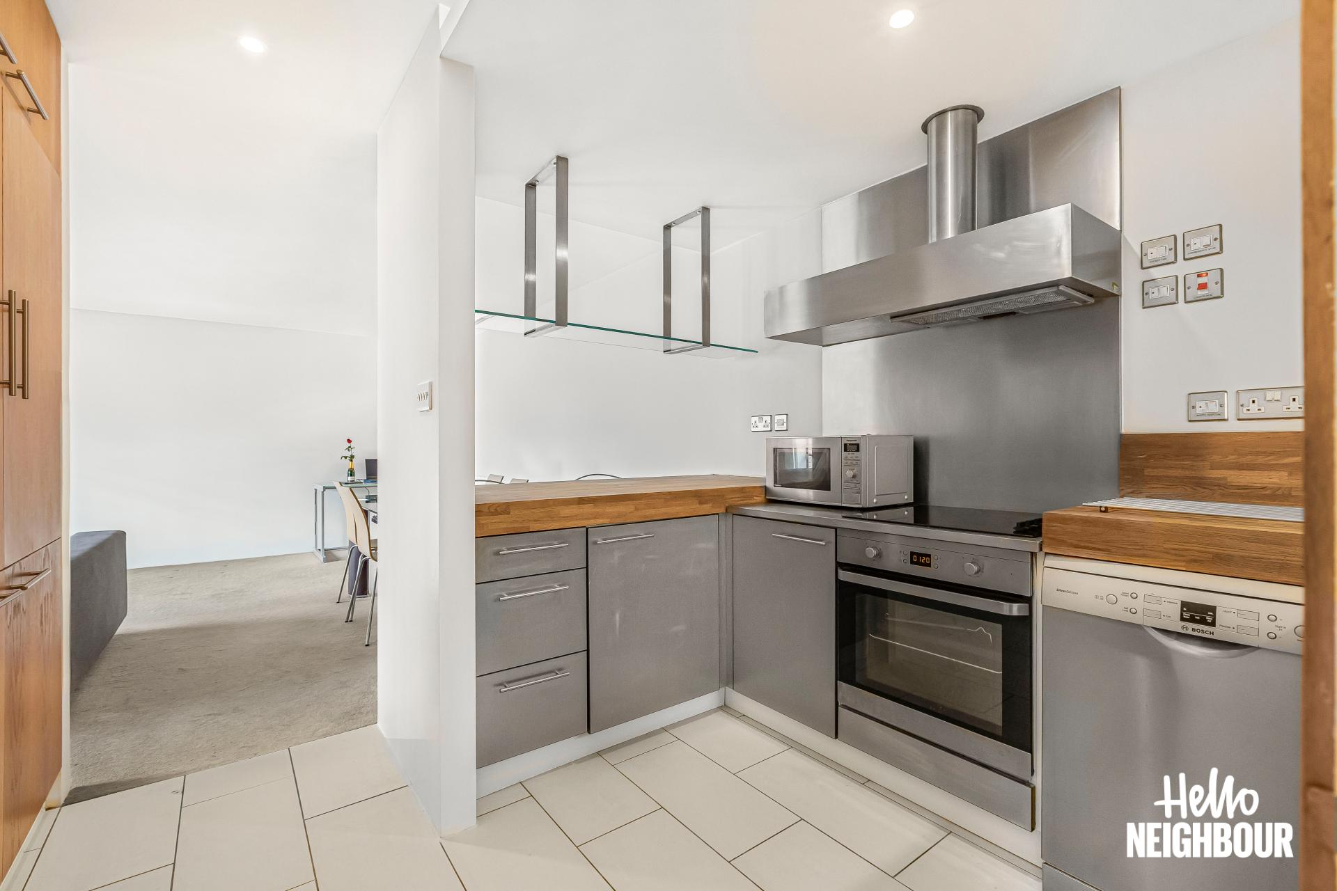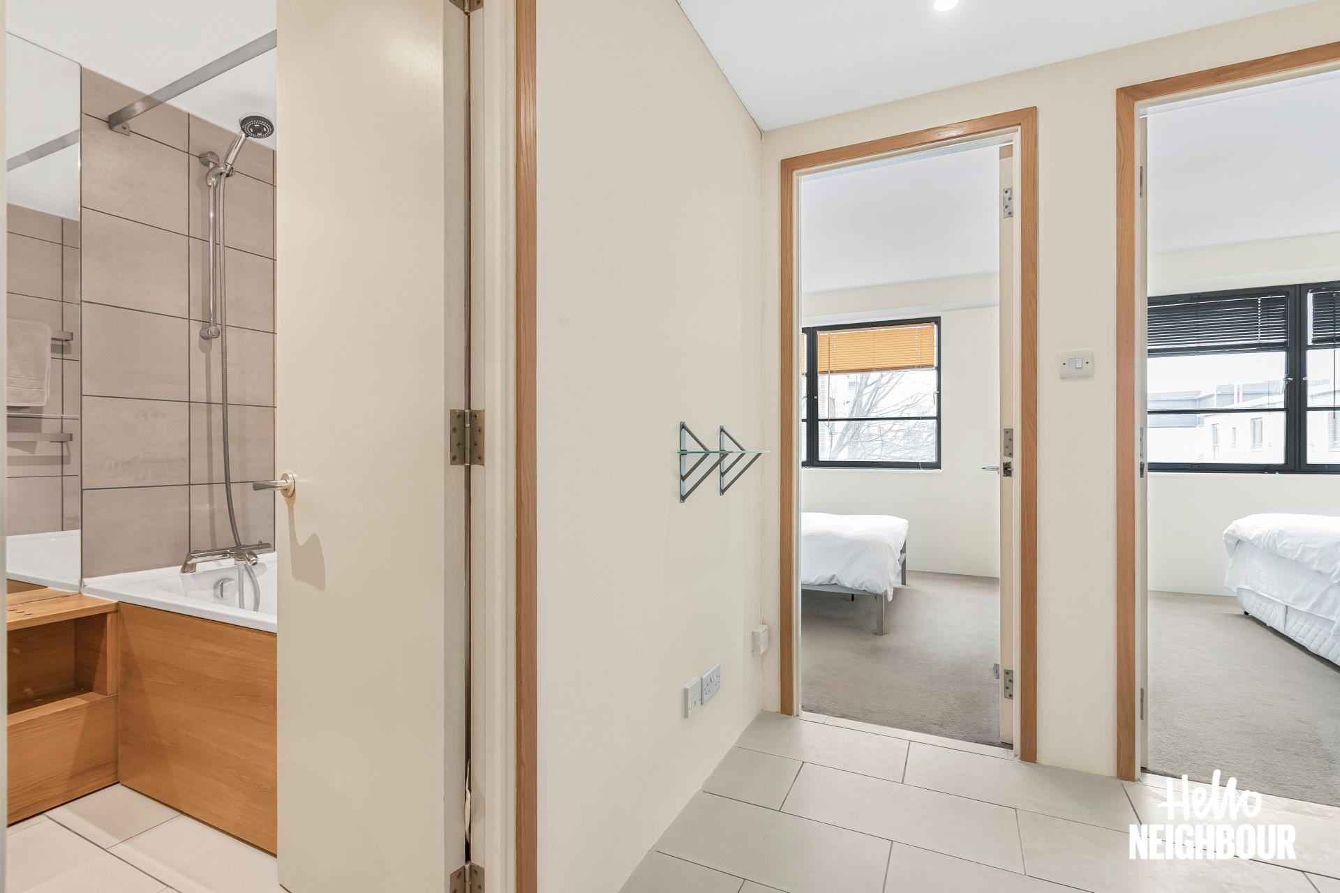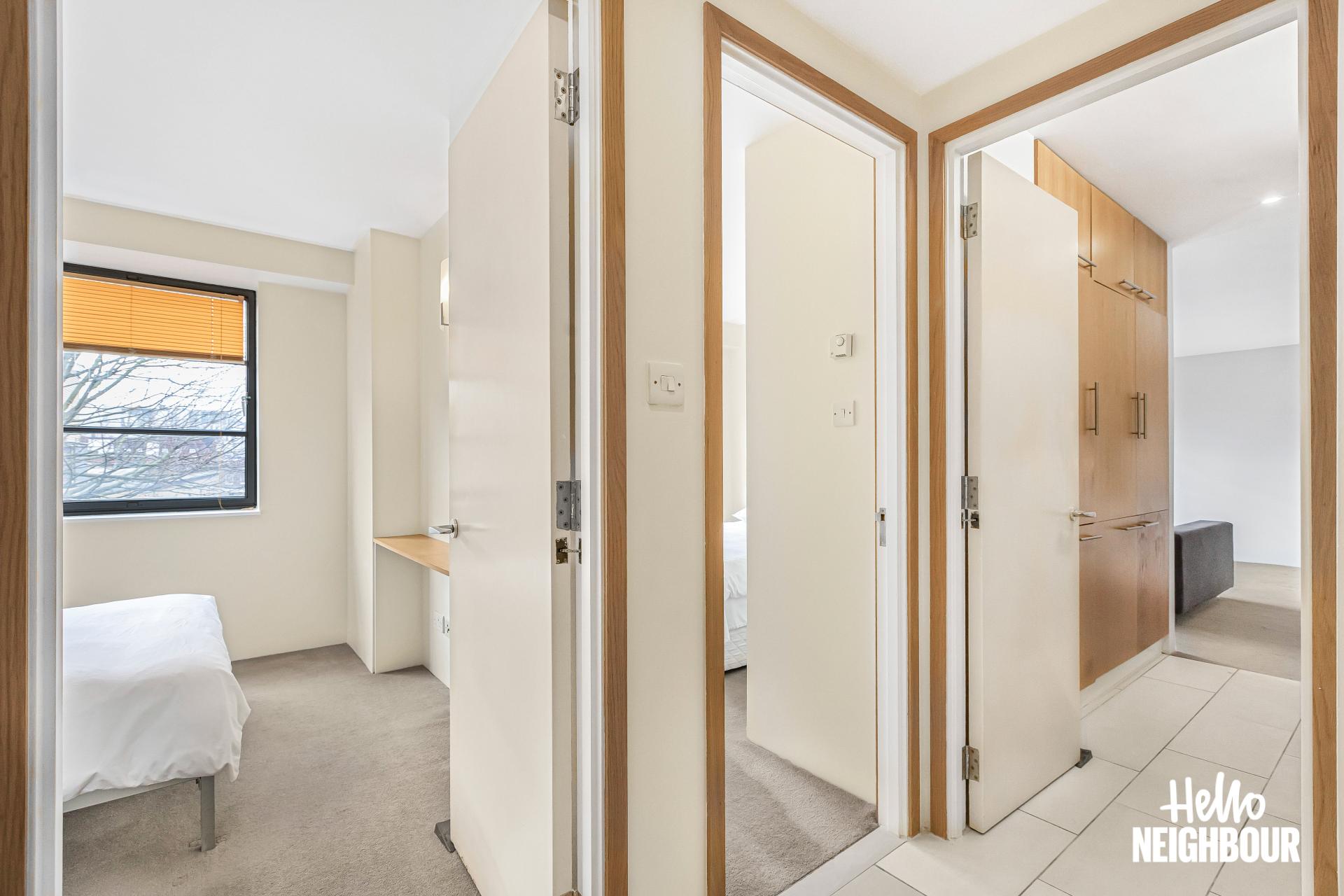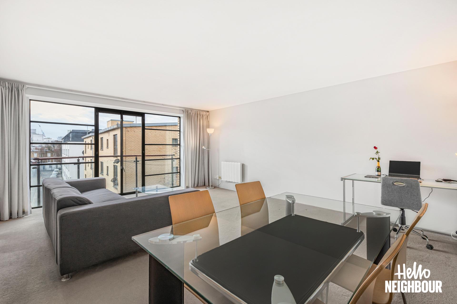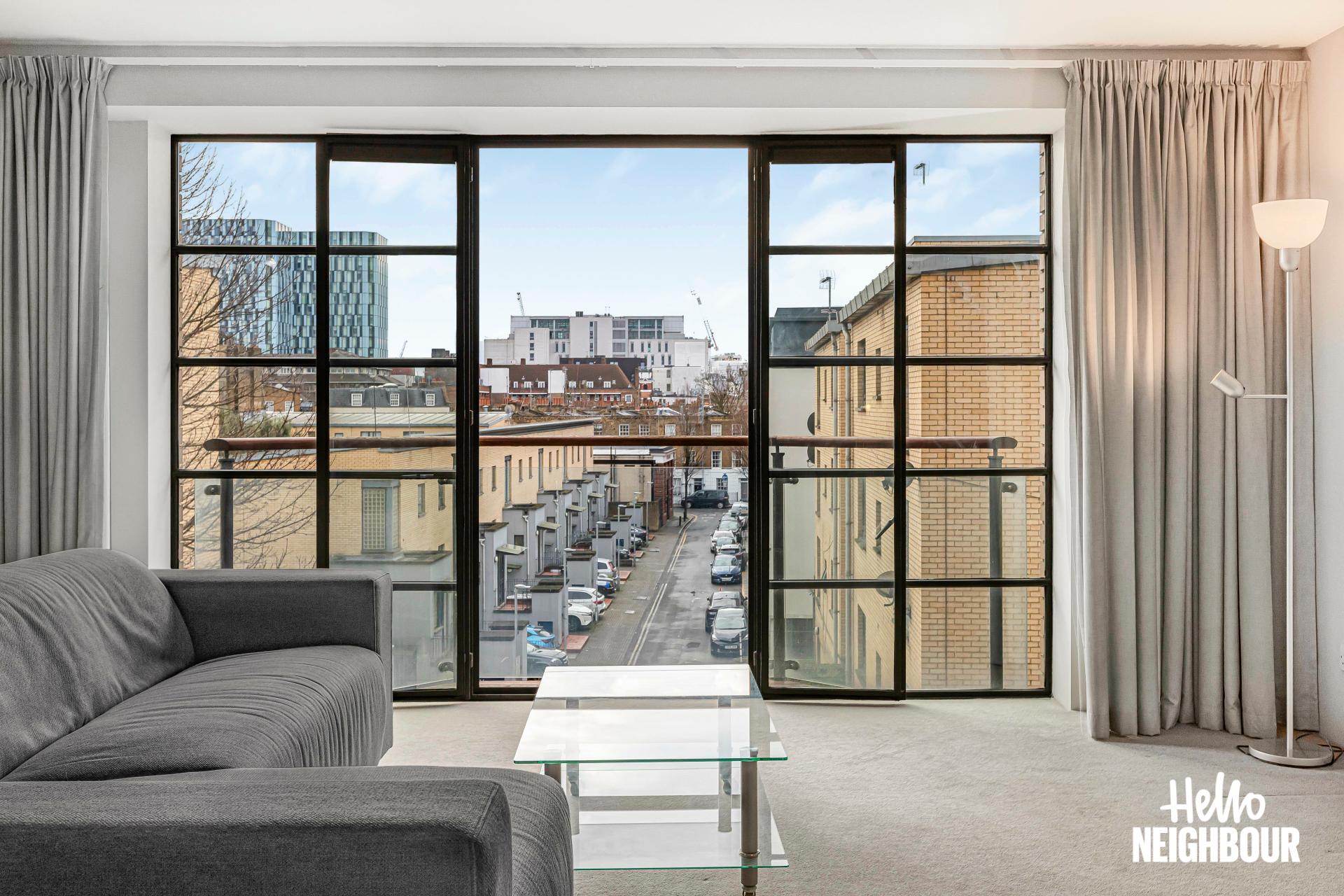 Hello Neighbour proudly presents this stunning and well-presented 2-bedroom apartment with a private balcony in the heart of King’s Cross, ideal for couples or professional sharers.\n\nFully furnished to a high standard, this home offers two spacious double bedrooms with built-in cupboards, a sleek 3-piece bathroom, and an open-plan living area with floor-to-ceiling windows. The private balcony, accessed from the living area, is perfect for relaxing, while the modern kitchen features integrated appliances and plenty of storage.\n\nThe flat offers excellent transport links, with King’s Cross St Pancras Station just a short walk away, providing access to multiple Underground lines, National Rail services, and Eurostar for easy commuting across London and beyond. The area is a vibrant cultural hub, with Granary Square and Coal Drops Yard offering trendy cafes, fine dining, and boutique shops, while Regent’s Canal provides scenic walking and cycling routes.\n\nPets: sadly not allowed due to building regulations \nSharers: welcomed, 2 x max due to HMO license \nPossible to get a permit for parking on the street outside the flat from Islington Borough council.