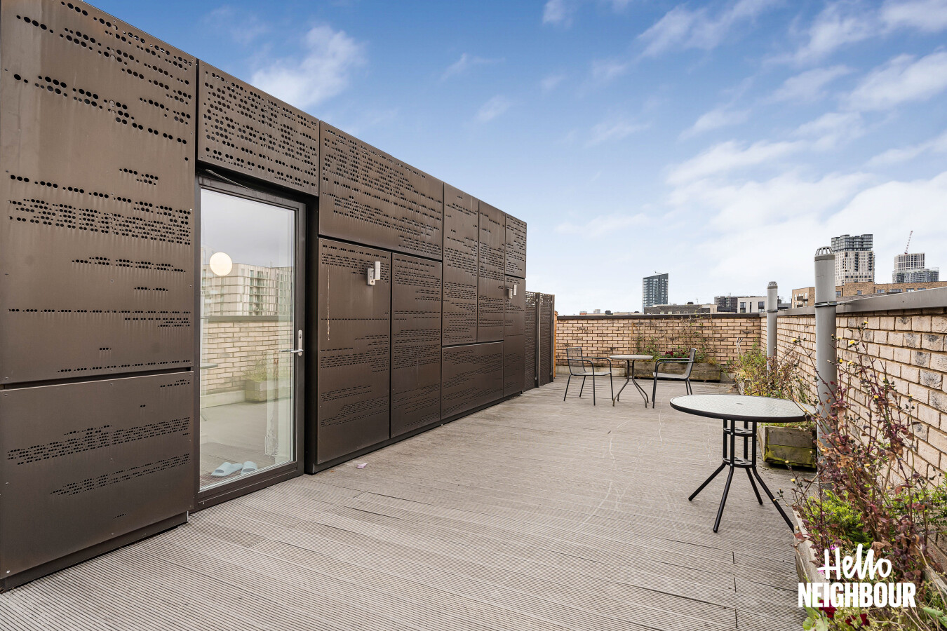 Stunning 3-Bedroom Top Floor Duplex with Private Roof Terrace – Stratford\n\nA rare opportunity to rent this exceptional 3-bedroom, 2.5-bathroom duplex apartment spanning three floors, complete with a breathtaking 520 sq ft private roof terrace.\n\nKey Features:\n- Spacious 1,438 sq ft corner unit with dual-aspect (south & west-facing) living spaces\n- Three double bedrooms (master with en-suite)\n- Modern kitchen/diner with integrated appliances (fridge/freezer, oven, dishwasher)\n- Separate living room with Juliette balcony\n- Underfloor heating throughout & floor-to-ceiling windows for abundant natural light\n- 520 sq ft private roof terrace with panoramic views – perfect for entertaining\n- Private underground parking \n- Ample built-in storage\n- Luxurious bathrooms + convenient cloakroom/WC\n\nPrime Location:\n- 13 min walk to Stratford Station and Westfield Shopping Centre\n- 10 min walk to Stratford International Station\n- 14 min walk to Queen Elizabeth Olympic Park (Aquatics Centre, East Village bars & restaurants)\n- Short stroll to Hackney Wick’s vibrant scene\n- On-site gym, yoga studio, nursery, communal garden and children’s playground\n\nThis beautifully presented home offers a separate private entrance, high-end finishes, and an unbeatable combination of space, natural light, privacy, quiet environment and outdoor living.\n