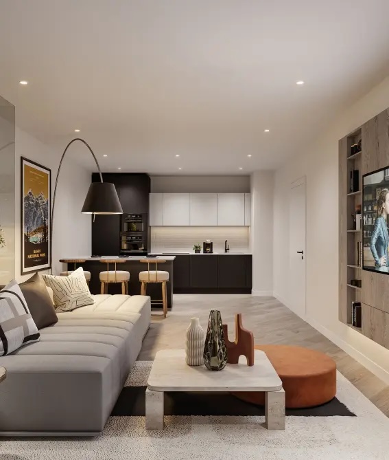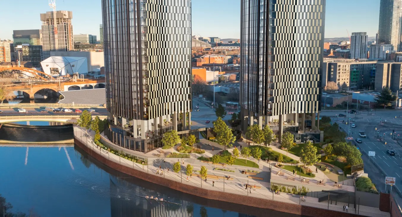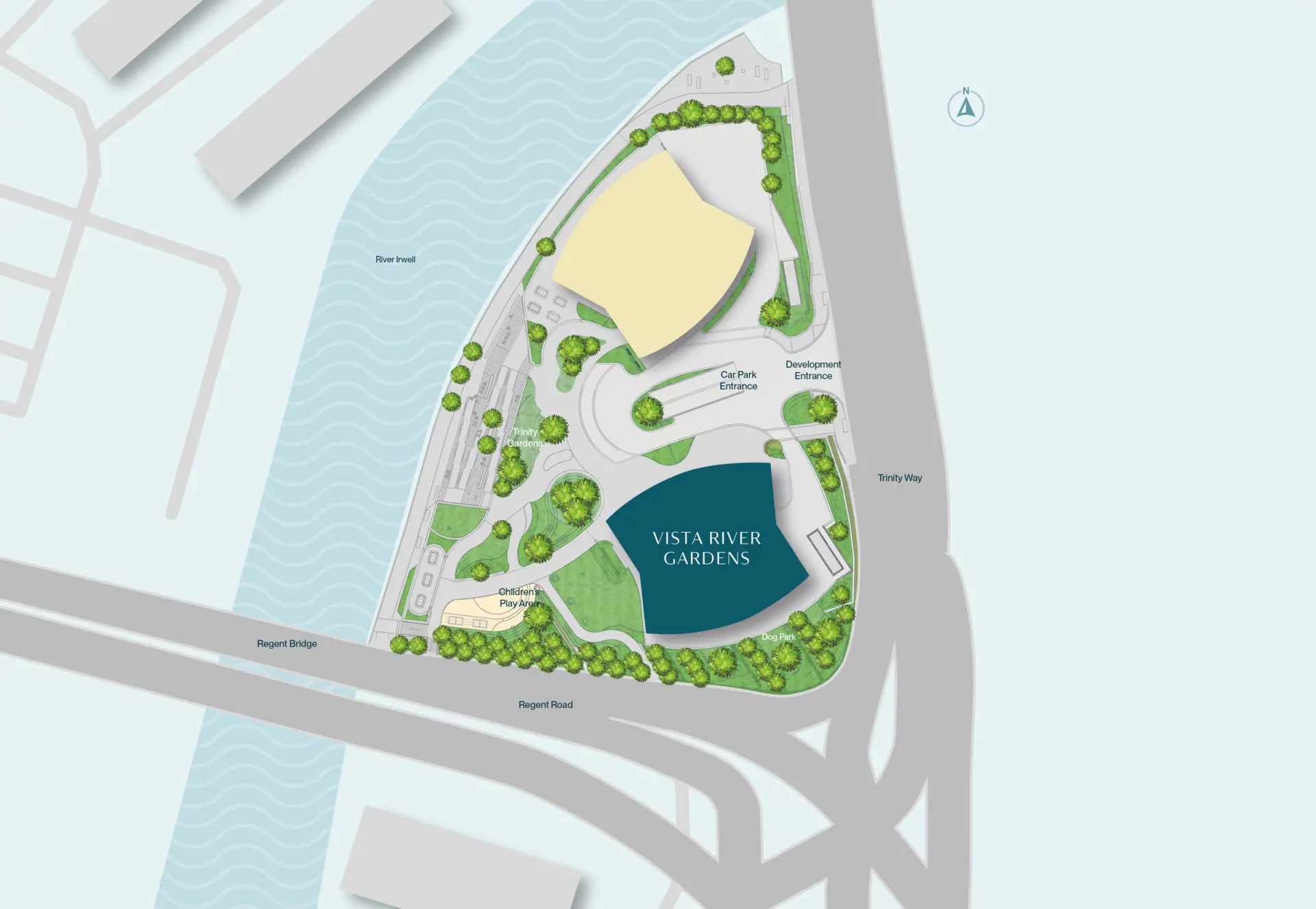 Key Features\n• An impressive 55-storey tower with a unique geometric design, elevated on exposed columns. \n• Brand New Development, boasting 4 levels of amenities wellness deck, fitness areas, and a rooftop Green & Screen. \n• Elevated Riverside Living, 1.6 acres of landscaped gardens including a children's play area and a dog park. \n• State of the Art Facilities including onsite Gym, Fitness and Spin Studio\n• 24 Hour Concierge, with automated entry system\n• Co-working spaces & Residents Lounges\n• Podcast, Content creation and Instagram studios\n• Walking Distance to Spinningfields, Deansgate and Excellent Transport Links\n• Communal Lifts, car park and cycle store\n• High-end bathroom specification with German white goods.\n\nDescription \nSituated on the River Irwell within the Castlefield Conservation Area, close to the new St John's development and Spinningfields, nature is at the heart of the development.\n\nBoasting a stunning riverbank setting and 1.6 acres of riverside park, Vista River Gardens is also situated close to St John’s, an area brimming with culture, enterprise and innovation.\n\nResidents can indulge in four levels of exceptional amenities, including a state-of-the-art gym, fitness and spin studio, The Wellness Deck, and a lively Games Room. each thoughtfully designed to enhance everyday living. For work or leisure, enjoy stylish co-working spaces, inviting Residents Lounges, and the assurance of a 24-hour Concierge delivering seamless service.