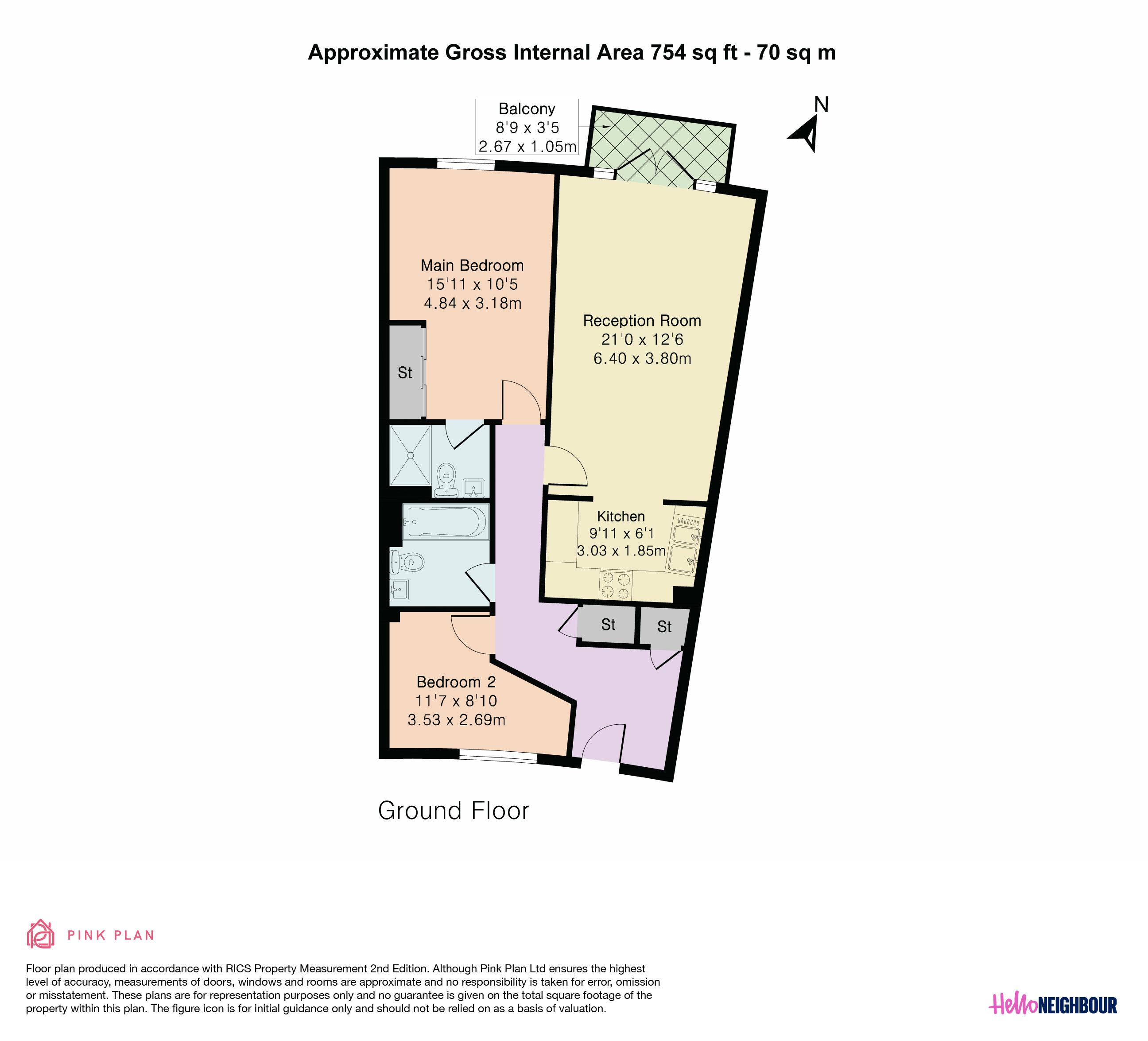 Hello Neighbour is proud to present this bright and airy 2-bedroom, 2-bathroom flat with a private balcony, located on Percy Circus, WC1X.\n\nBeautifully presented and fully furnished, this charming home offers a welcoming living space with wooden flooring throughout. The spacious open-plan living and dining area is filled with natural light and opens onto a private balcony, providing the perfect spot to relax or entertain. The modern kitchen is well-equipped with integrated appliances, making daily life a breeze.\n\nThe property comprises two well-proportioned bedrooms, including a main bedroom with en-suite, and an additional contemporary bathroom. Both bedrooms are tastefully furnished, creating a comfortable retreat at the end of the day.\n\nResidents will also benefit from permit parking and a prime location close to local amenities, including shops, cafés, and restaurants, with excellent transport links nearby for easy access across the city.\n\nPets: On request\nSharers: Maximum 2x sharer's as per HMO license\nParking: Permit parking with council