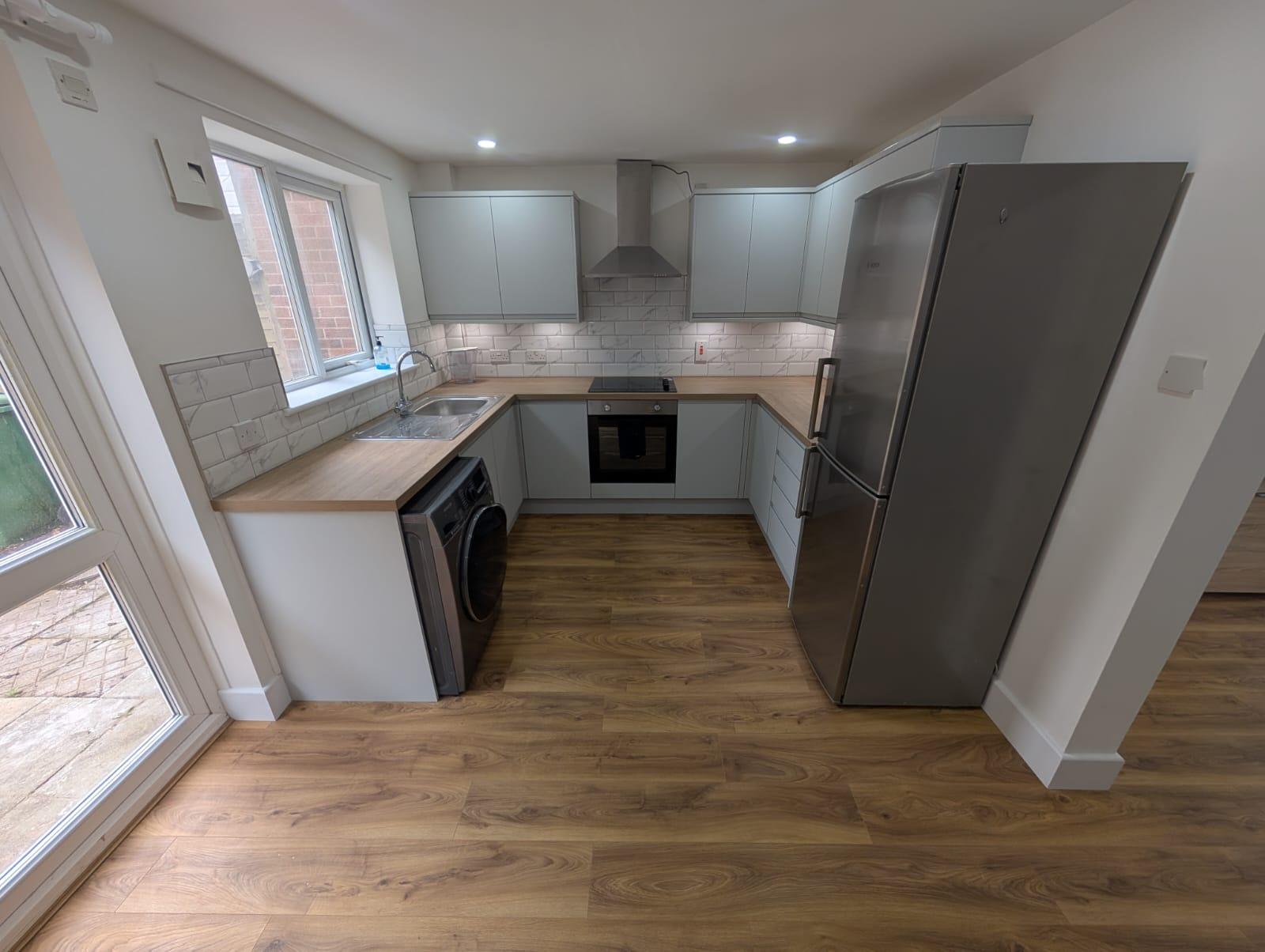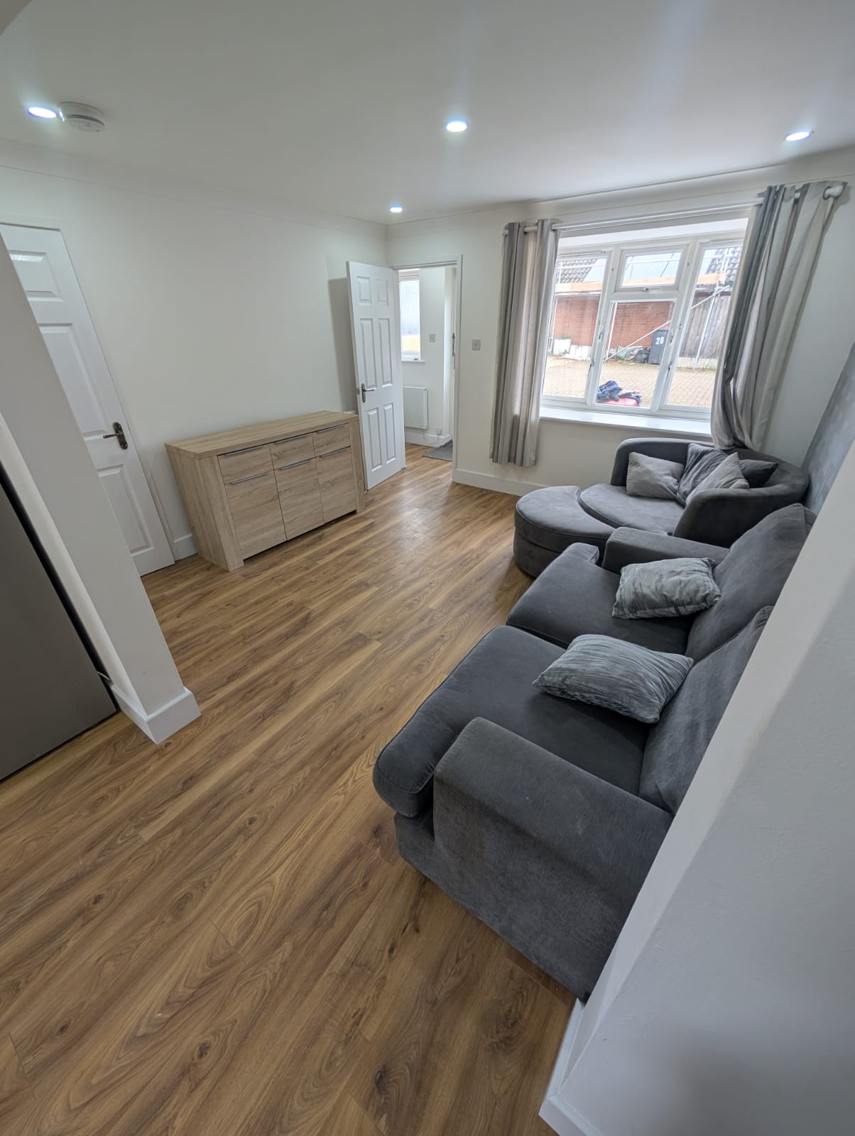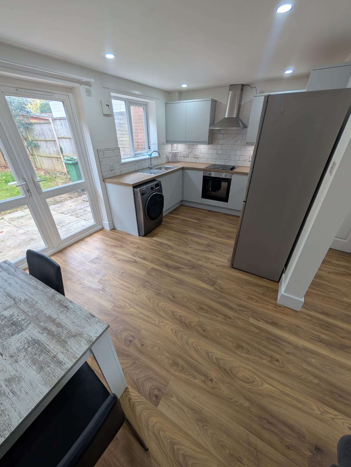 Beautifully presented, recently fully refurbished, spacious, two double bedroom semi-detached house located in a quiet cul-de-sac. The property comprises a living room, dining room, kitchen, two double bedrooms with fitted wardrobes and a bathroom.\n\nThe property also benefits from a garden and private driveway for two cars.\n\nThe property is in an excellent condition and is offered unfurnished. \n\nThe property is in a great sought-after location, close to local amenities, including shops and schools. \n\nMust pass reference checks. Applicants must have a minimum household annual salary of £27,500. Minimum 12 month contract.