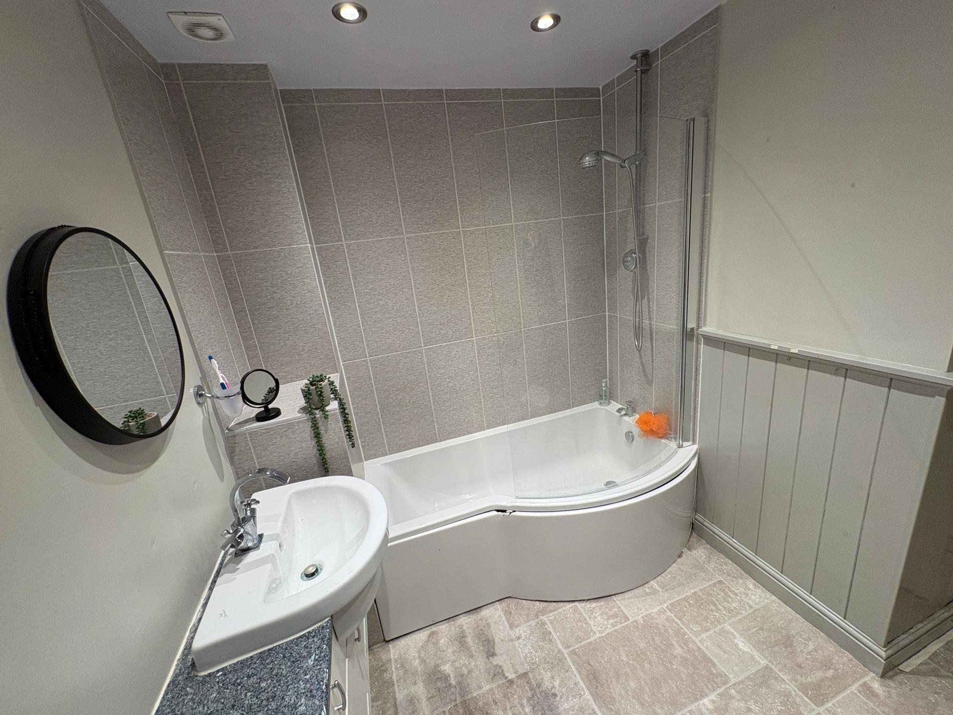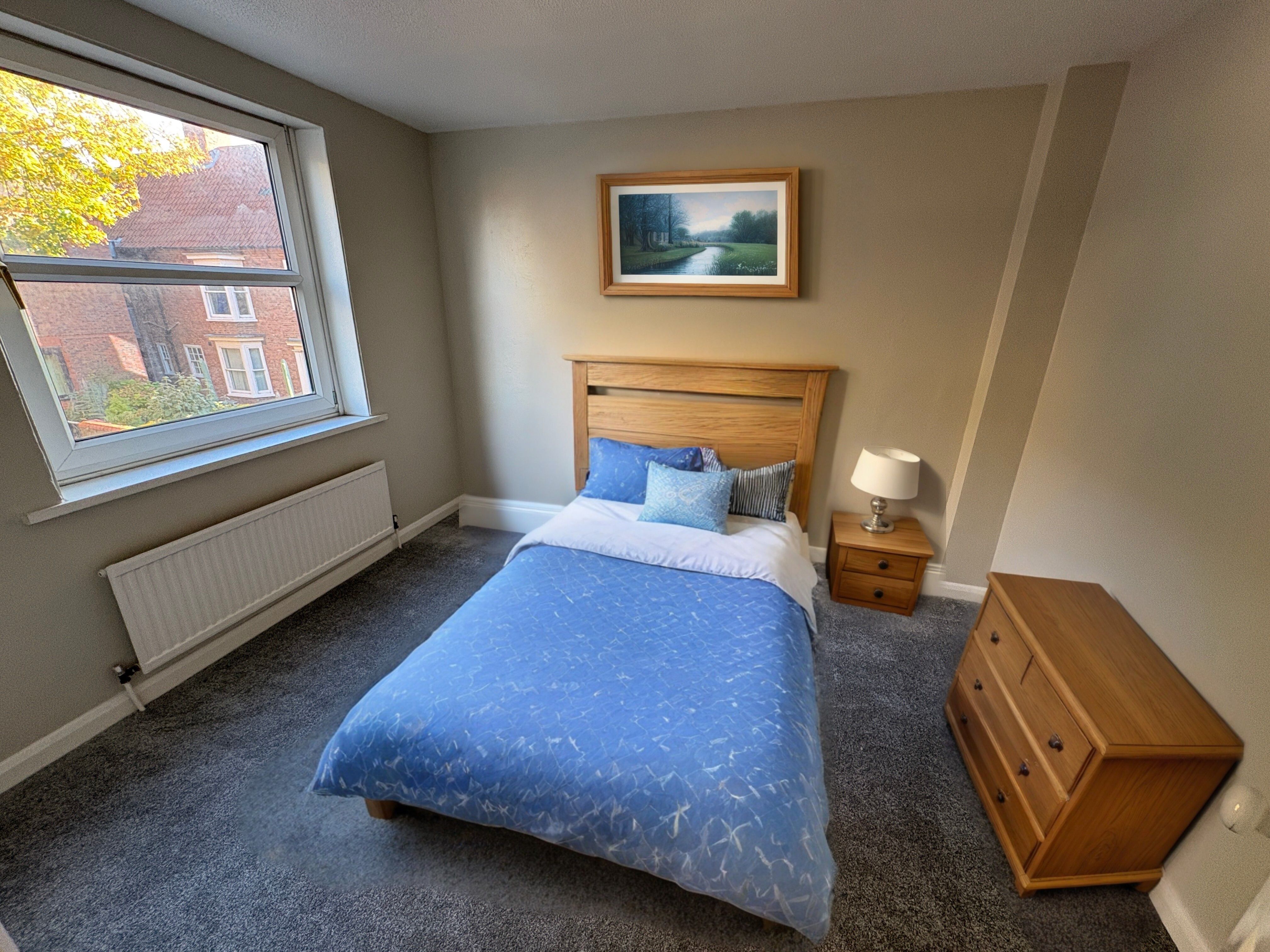 Stunning 3 bed character property located in central available to let now. This three storey property is located less than 5 minutes walk from Toll Gavel and benefits from a private enclosed rear garden. \n\nInternally to the ground floor is a large open plan kitchen with breakfast bar area, a separate dining room and a downstairs bathroom. The first floor consists of a large lounge with feature fire place and a double bedroom. To the second floor there are 2 further double bedrooms, one with fitted storage and a large family bathroom. \n\nExternally the property benefits from a private enclosed rear garden with side access to the street. This property will not hang around so get in touch to register your interest and schedule a viewing\n\nFurniture layout AI generated representation to show space
