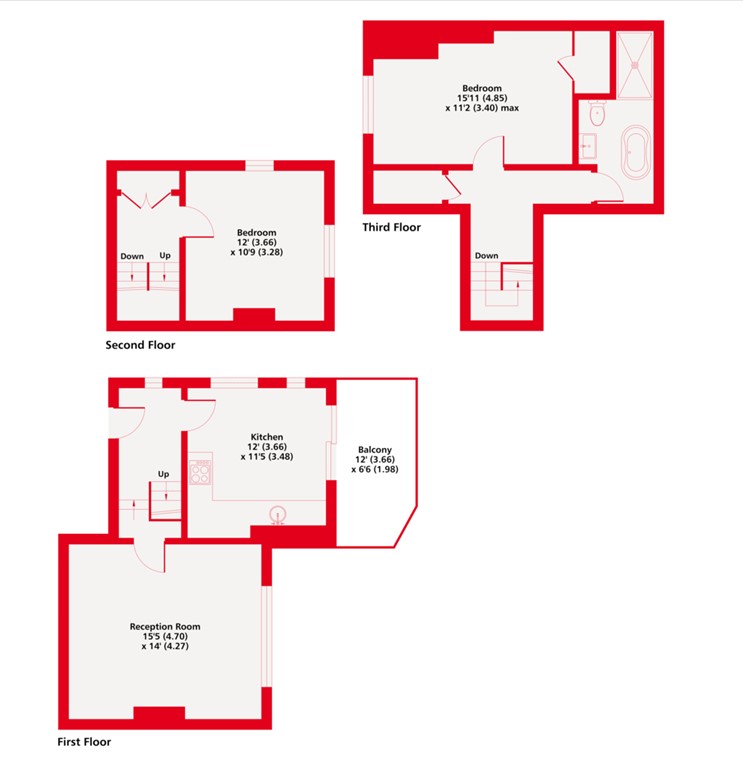 1st landing - kitchen and balcony \n2nd landing - bedroom 1 \n3rd landing- living room\n4th landing- master bedroom