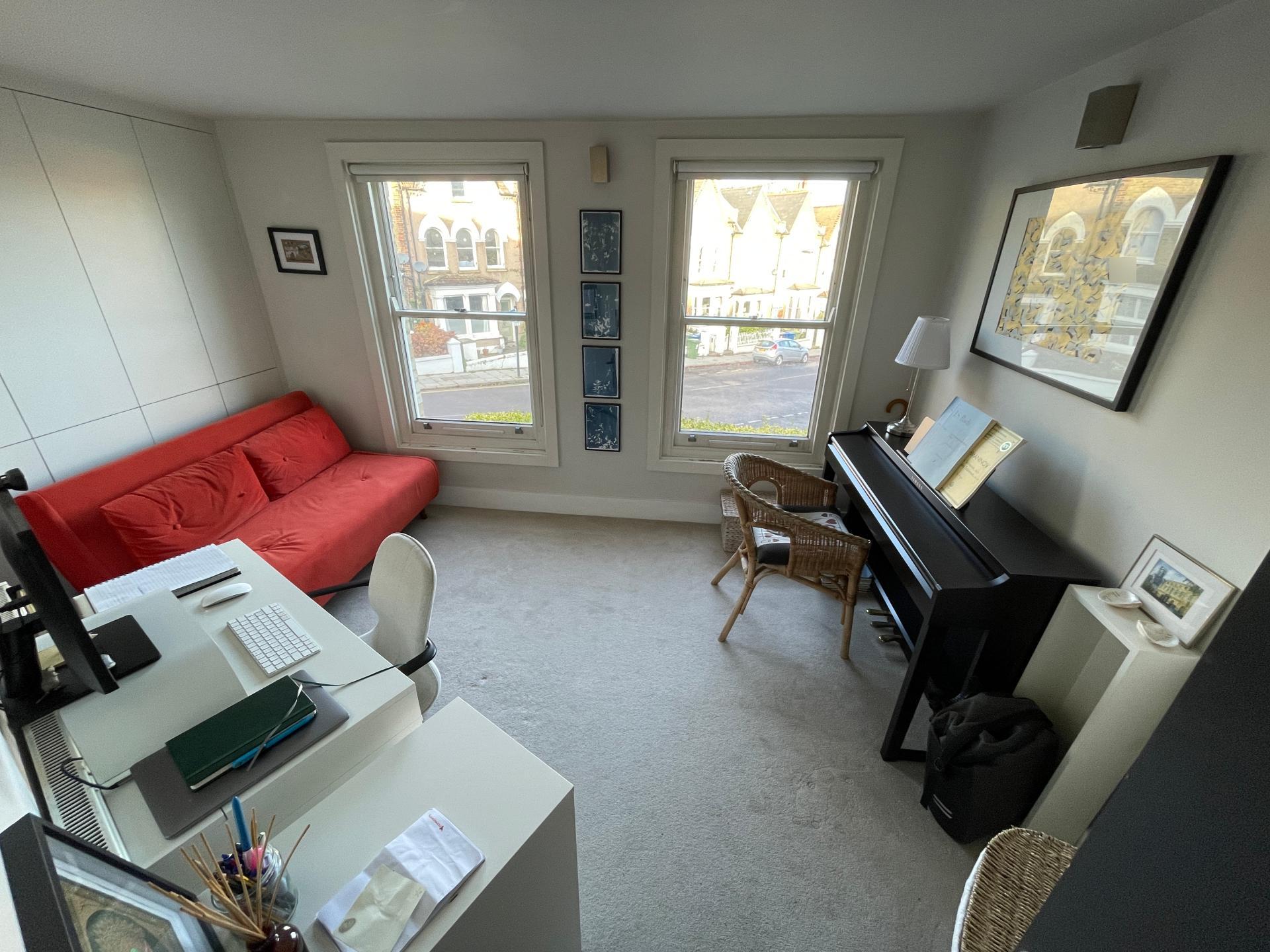 Unique 2-bed flat nestled in a relaxed corner of South Camberwell. Easy access to the city from Denmark Hill Station (for Victoria / the City / London Overground) and East Dulwich Station (for London Bridge). Ideal for a couple. Characterful streetscape on the edge of the Camberwell Grove conservation area, with far-reaching views towards Canary Wharf. Excellent local amenities including the restaurants and local shops on Bellenden Road, Dulwich's Lordship Lane, Camberwell New Road, and easy access to Ruskin Park, Peckham Rye, and Lettsom Gardens. A gem of a property in a gem of an area!\n\nKitchen and living space\nSituated on the first floor of a large Victorian block of 6 flats, the flat benefits from a large open-plan kitchen and living space, with a large window overlooking the hill and sweeping views of the city skyline. The space features wooden floors and has a modern, airy feel. Integrated fridge, gas hob, oven, dishwasher, and washer-dryer.\n\nBedroom / study\nThe second bedroom has been used as a study, and is another bright space with recently installed built-in storage.\n\nMain bathroom\nThe main bathroom features further storage and bath / hand-held shower with window.\n\nMain bedroom & terrace\nOff the main hallway you'll find the main bedroom, with an en-suite shower room, large built-in wardrobe, fitted book shelves, and access to the stunning, south-facing private roof terrace. A must for the warmer months of the year!