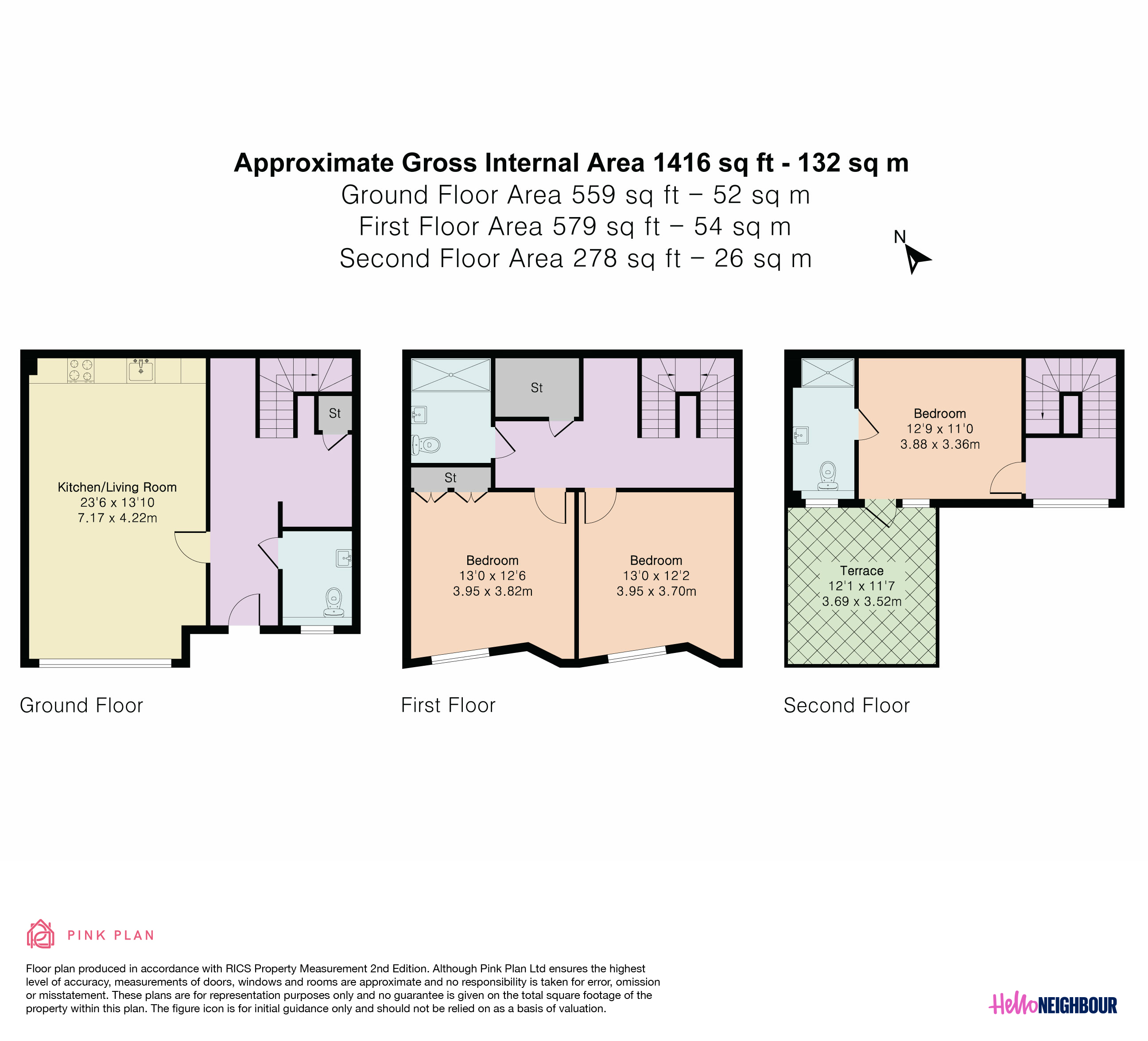 Hello Neighbour proudly presents this beautifully presented 3-bedroom, 3-bathroom end-terrace house located in the desirable Picture House Mews, E17.\n\nThis stunning home offers a perfect blend of modern style and comfort across three floors. The property features a bright and spacious open-plan living area with wooden flooring throughout, complemented by a fully fitted kitchen with integrated white goods. Each of the three bedrooms is generously sized, with two benefiting from en-suite bathrooms, while a third modern family bathroom completes the home.\n\nFlooded with natural light and thoughtfully designed, this property is offered fully furnished and finished to a high standard. A highlight of the home is the private roof terrace, ideal for relaxing or entertaining while enjoying skyline views.\n\nSituated in a sought-after residential development, residents can enjoy both tranquility and convenience, with Walthamstow Central station and an array of local shops, restaurants, and green spaces all within easy reach.\n\nPerfect for professional families or sharers seeking a bright, modern home with premium finishes in a fantastic East London location.\n\nPets: Sadly not welcomed\nSharers: Maximum 3x sharer's as per HMO license\nParking: Not included