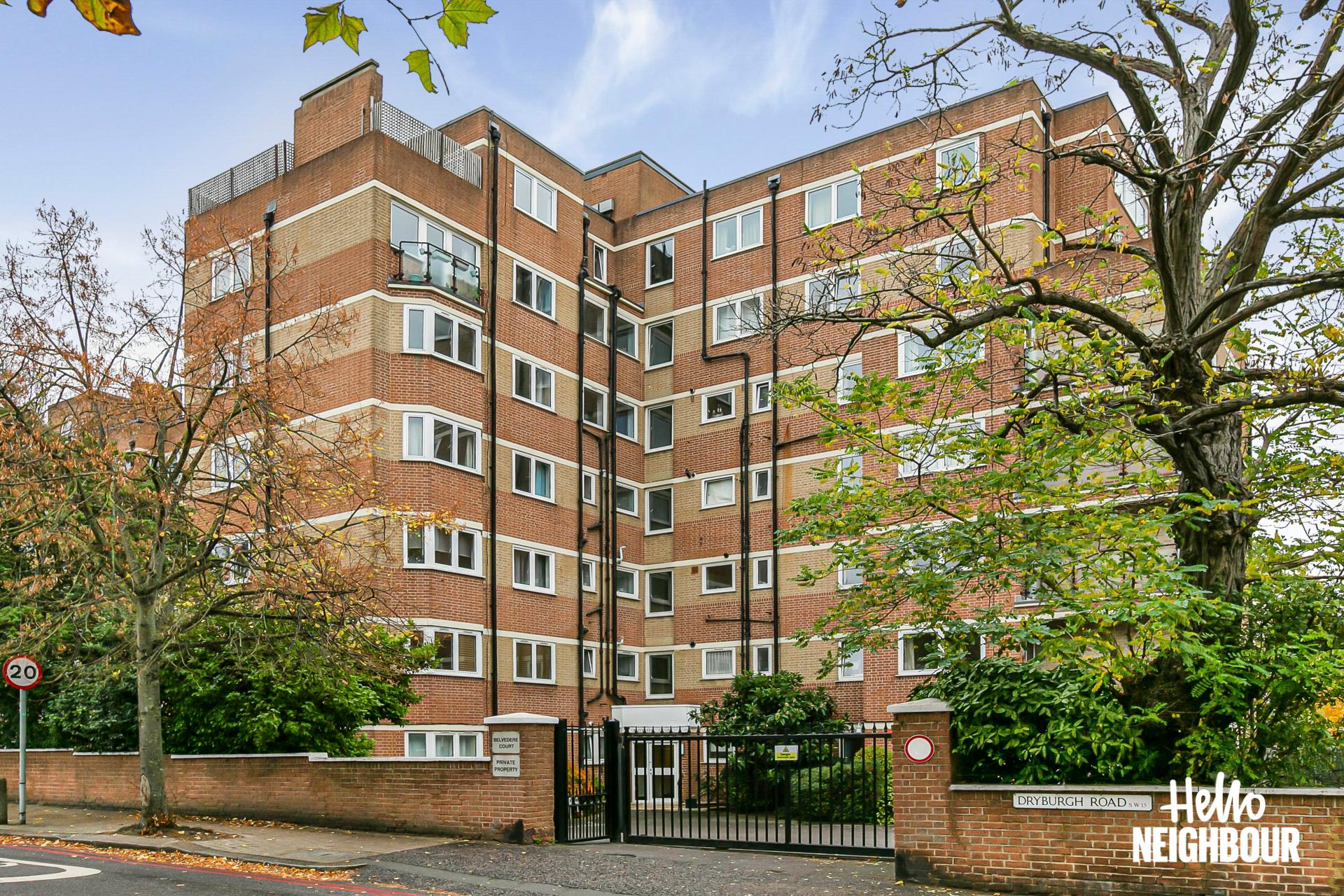 Hello Neighbour proudly presents this bright and airy 2-bedroom, 1-bathroom flat located in the desirable Belvedere Court, SW15.\n\nBeautifully presented throughout, the property offers a spacious open-plan living and dining area with wooden flooring and large windows that fill the space with natural light. The modern fitted kitchen comes complete with essential white goods, making it both practical and stylish.\n\nBoth bedrooms are well-proportioned, providing plenty of comfort and flexibility, while the contemporary 3-piece bathroom adds a sleek finish. The living area opens onto a private balcony, perfect for relaxing or entertaining guests.\n\nOffered unfurnished, the flat allows tenants to make the space their own. Additional benefits include allocated parking, and the property’s excellent location offers easy access to Putney Station, local shops, and green spaces such as Putney Heath and Wandsworth Park.\n\nIdeal for professional couples or small families seeking a modern, well-connected home in a sought-after area.\n\nPets: Sadly not welcomed\nSharers: Maximum 2x sharer's as per HMO license\nParking: Allocated parking