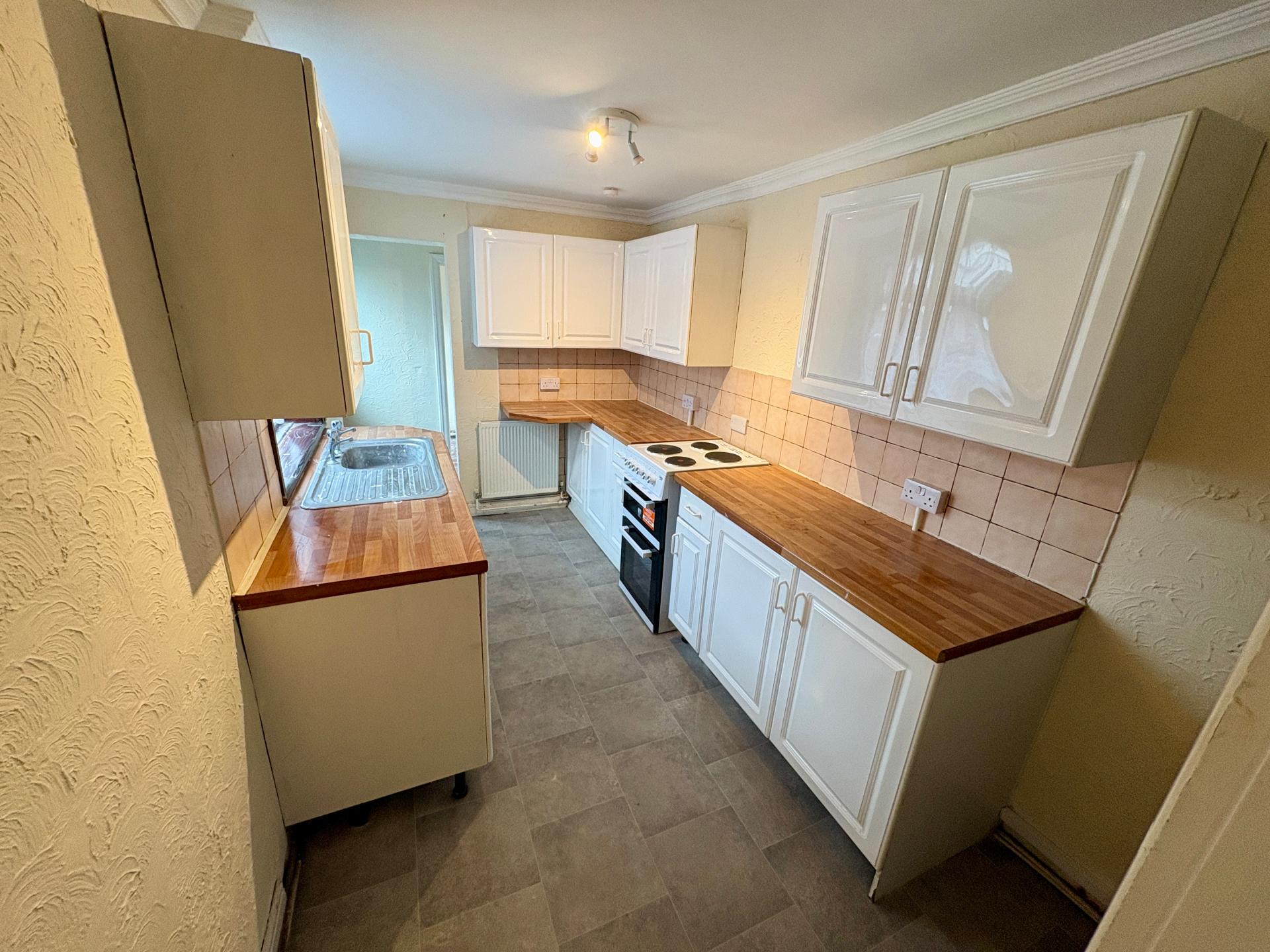 Deceptively large 2 bedroom mid terrace property with loft room available to let. The property consists of 2 first floor double bedrooms and a large family bathroom with 3 piece suite and electric shower. On the second floor there is a converted loft room. \n\nDownstairs the property consists of an open plan living and dining room with galley kitchen and rear utility providing lots of storage. Externally there is an enclosed rear yard with rear access. \n\nThe property has been recently refurbished and is available now