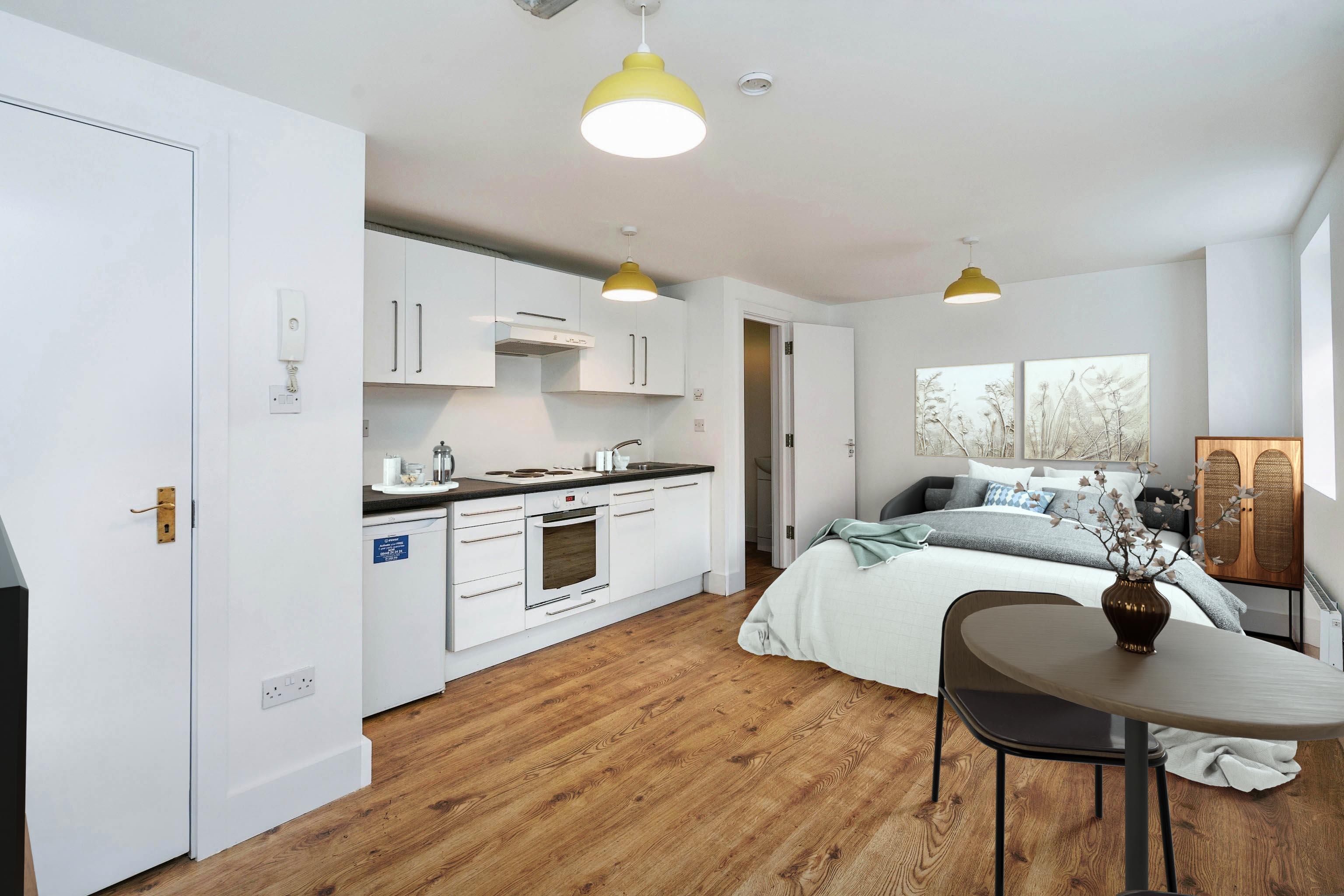 Modern First Floor Studio-Flat in Kings Arms Court, North Walsham, NR28 (1 bed) - Newly Refurbished\n\n Renting direct from the Landlord which means:\n\n No Search Fees\n\n No Hassle\n\nProperty Description\n\n Modern First Floor Studio-Flat\n\n 21sqm Living Room / Kitchen / Bedroom\n\n Separate Shower Room\n\n Electric Heating\n\n No Parking\n\n Walking distance (less than 5mins) to shops, restaurants, amenities and train station\n\nA modern first floor studio flat situated just off the Market Place, providing a 21sqm open-plan living room / kitchen / bedroom, separate shower room with white suite, electric heating and double glazing, no parking. Energy rating C.\n\n\nAccommodation\n\nCommunal ground floor entrance door opening into communal lobby. Private entrance door to:\n\nLobby 3' 9 x 2' 11 (1.14m x 0.89m)\n\nLiving Room, Kitchen & Bedroom 18' 7 x 12' 1 max (5.7m x 3.69m max)\n\nShower Room 5' 2 x 5' 1 (1.75m x 1.63m)\n\nThe property is unfurnished and is undergoing a full re-decoration prior to renting - apply NOW to have your very own “brand new” apartment.\n\nSummary & Exclusions:\n\n- Rent Amount: £650.00 per calendar month (£150 per week)\n\n- Deposit (5 weeks): £700\n\n- 1 Bedroom\n\n- 1 Shower Room\n\n- Property comes unfurnished\n\n- Available to move in from 01 Feb 2026\n\n- Minimum tenancy term is 6 months\n\n- Suited to professional workers, students or first time home-leavers alike\n\n- Pets considered / by arrangement\n\n- No Smokers\n\n- Property has no parking\n\n- EPC Rating: C