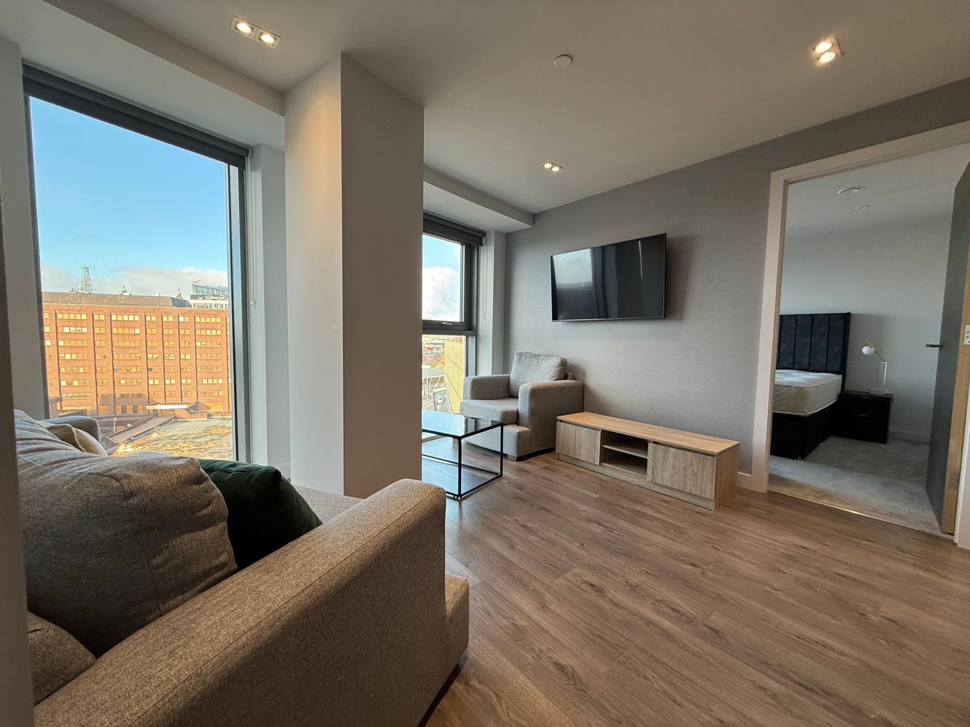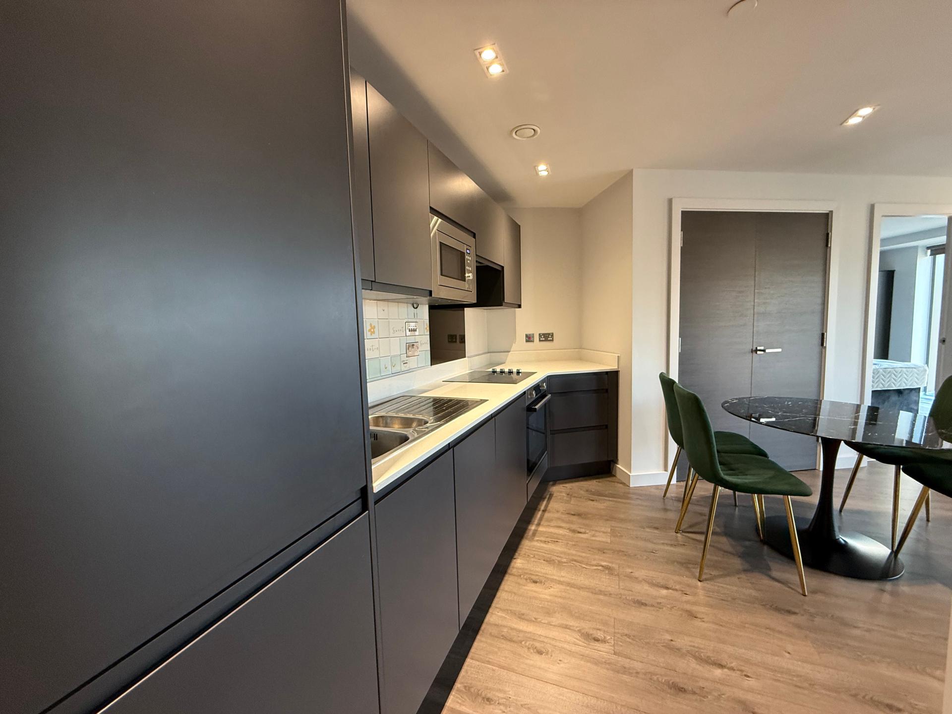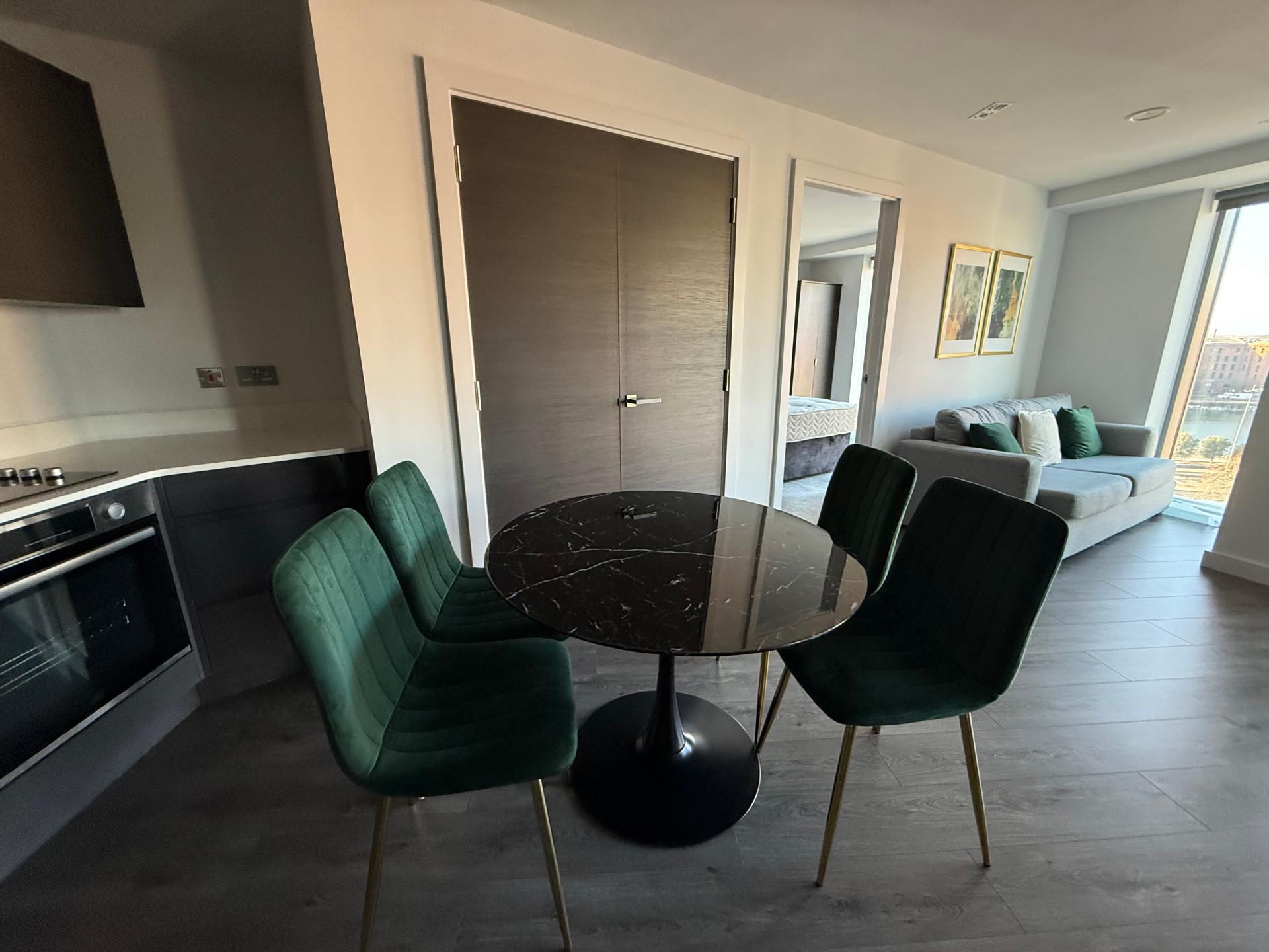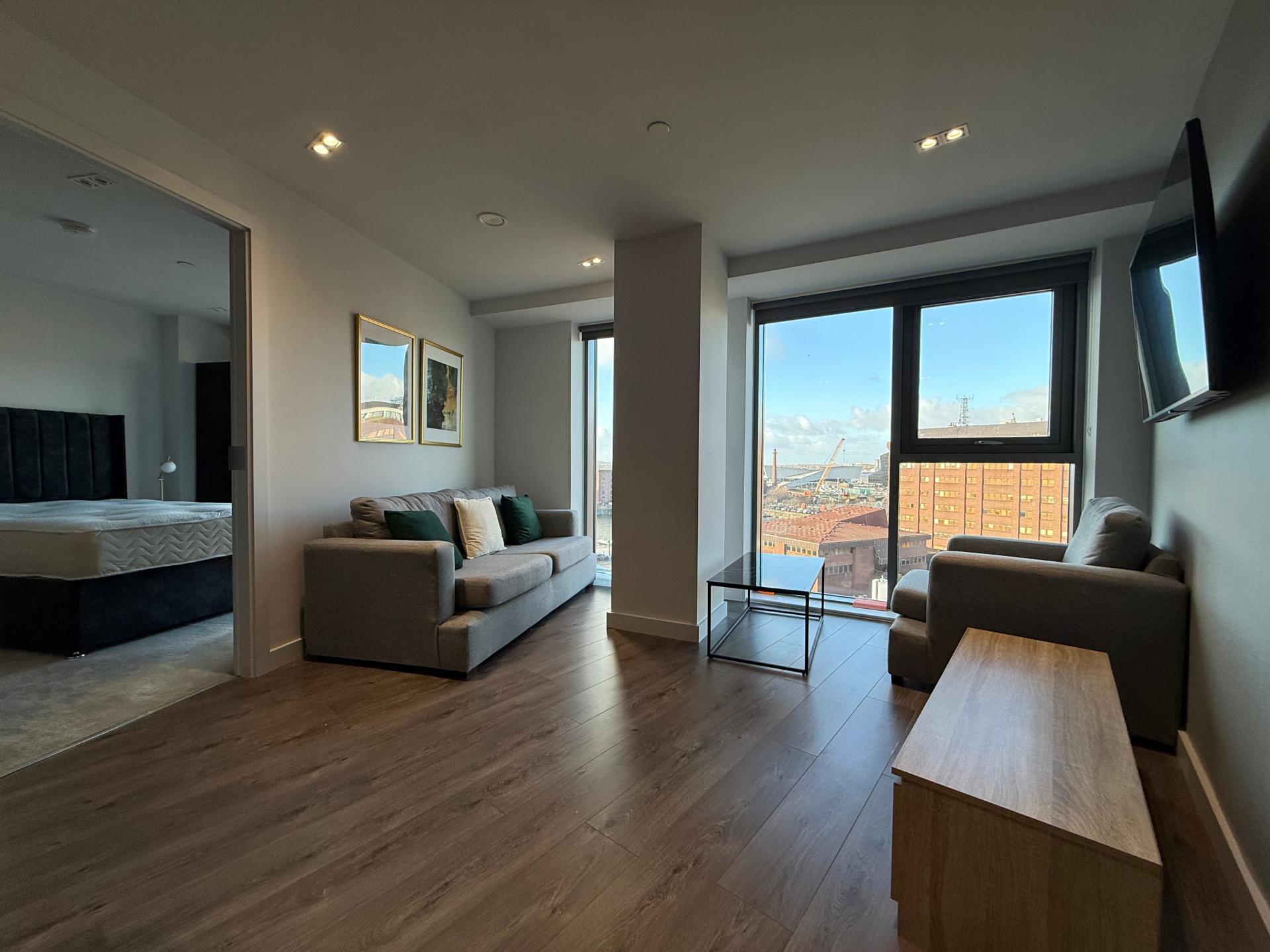 Apartment 706 – Prime Two-Bedroom City Centre Apartment, L1\n\nAvailable to rent for £1,250 per calendar month, this stylish two-bedroom, two-bathroom apartment is located in the highly desirable L1 postcode, right in the heart of Liverpool city centre.\n\nThe apartment offers a modern and comfortable living space, featuring a bright open-plan layout and a fully fitted kitchen complete with an integrated fridge freezer, dishwasher, and washer dryer. Both bedrooms are generously sized and carpeted, with the master bedroom benefiting from a private en-suite bathroom.\n\nResidents enjoy the convenience of a 24-hour concierge service and secure parcel collection, providing peace of mind and ease of living. Additional exclusive amenities include access to a well-equipped gym and a stunning roof terrace, ideal for relaxing or entertaining.\n\nPerfectly positioned on Park Lane, the property is within walking distance of Liverpool ONE Shopping Centre, Albert Dock, and a wide selection of restaurants, bars, and transport links.\n\nThis apartment is ideal for professionals or sharers seeking contemporary living in a prime city centre location. Contact us today to arrange a viewing.