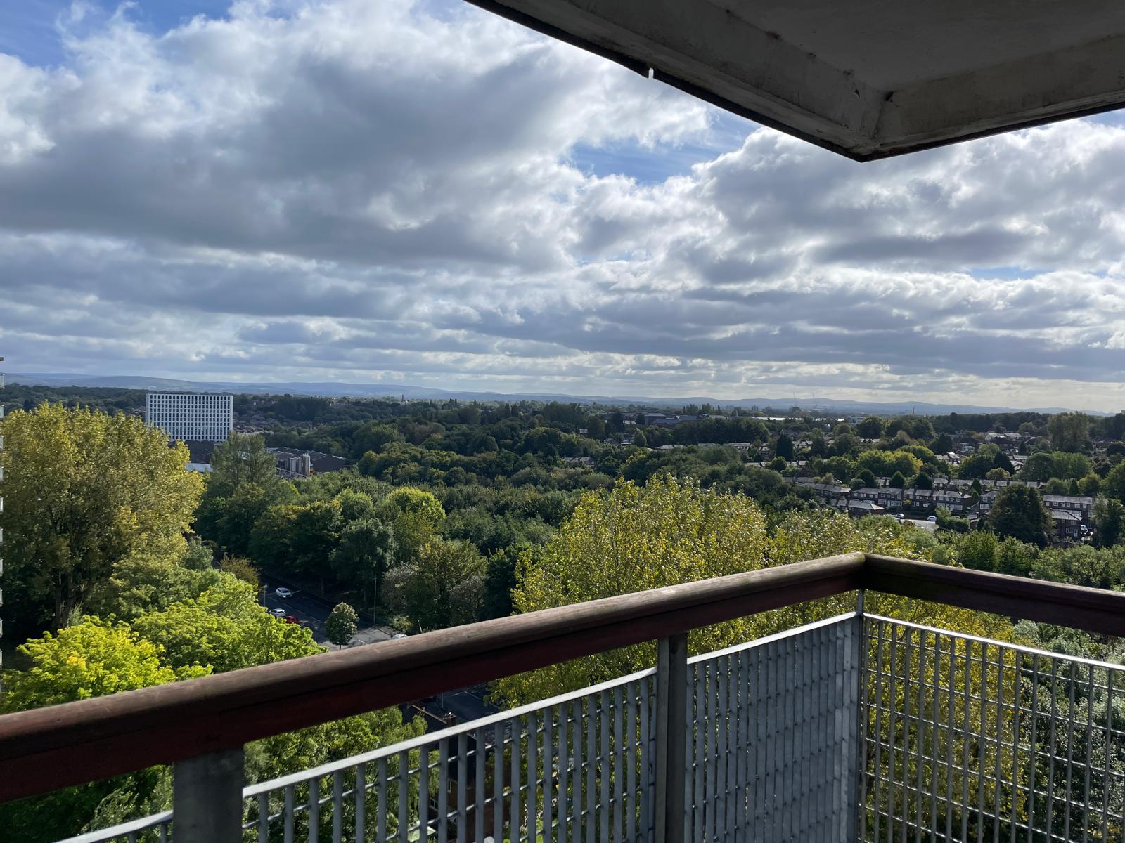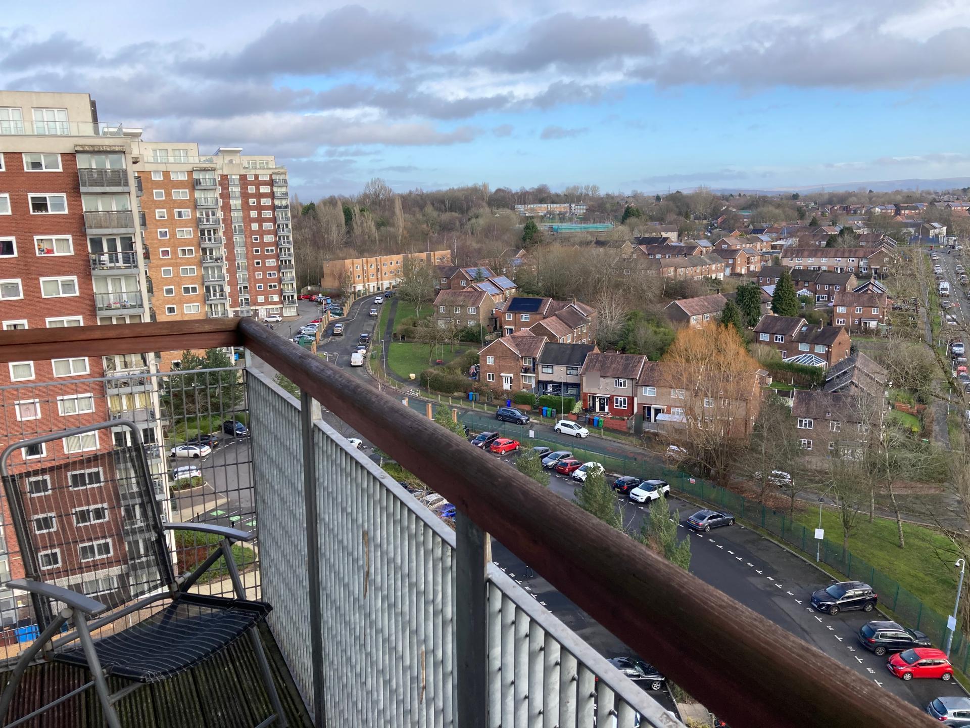 Light and airy flat with wide double-glazed windows and french doors opening on to a long balcony with great views across Manchester and towards the Peninnes.\n\nWell located property with good communication links and access to amenities; 15 minutes walk from Bowker Vale tram stop, 6 minutes drive from M60 Junction 9, and 5 minutes drive from North Manchester General Hospital. Also 8 minutes drive to superstore and petrol station. Heaton Park is nearby.