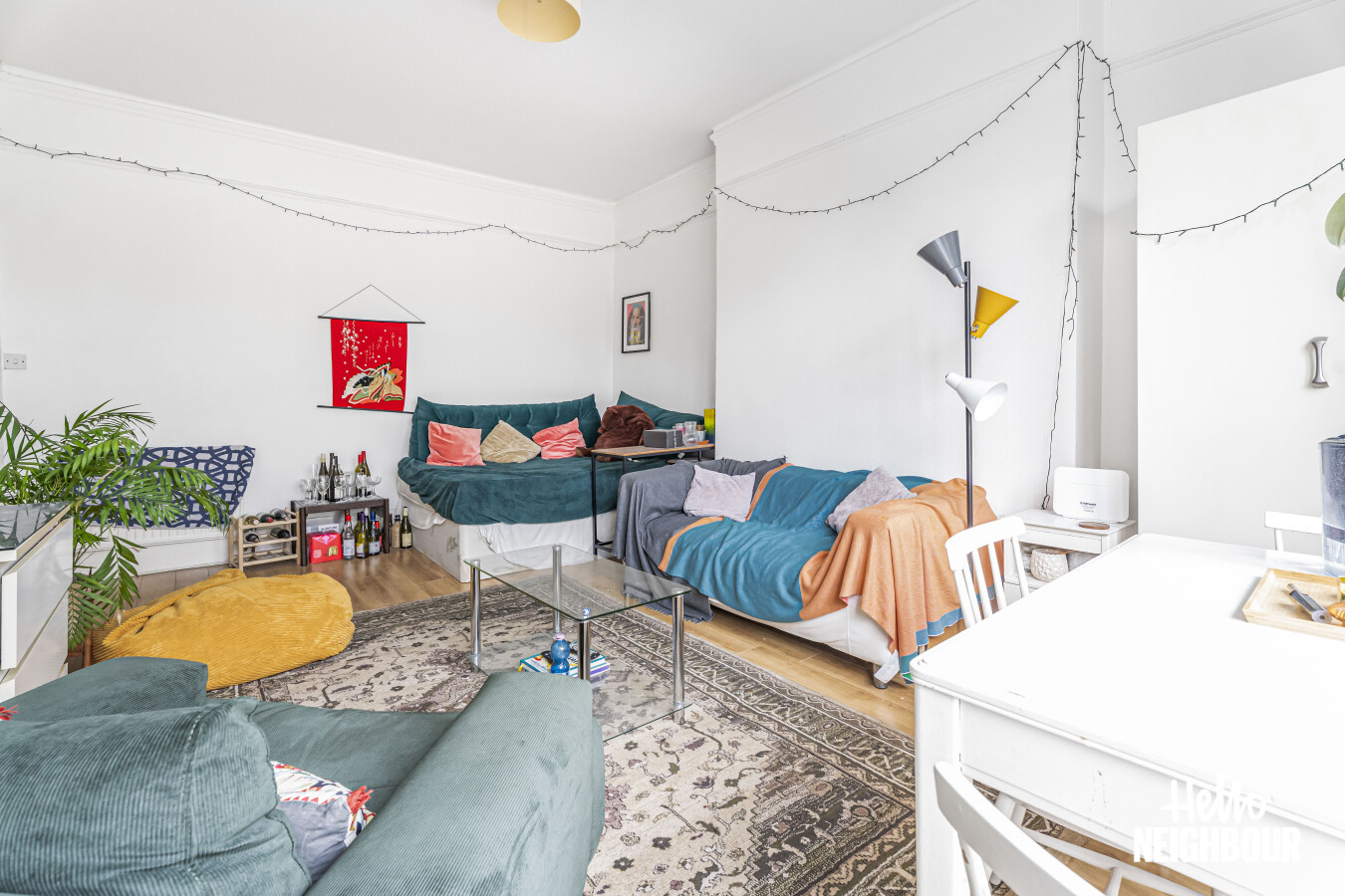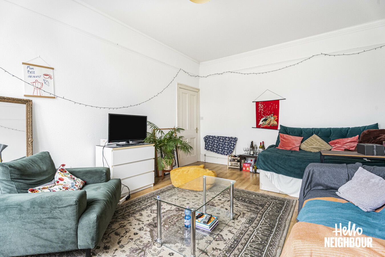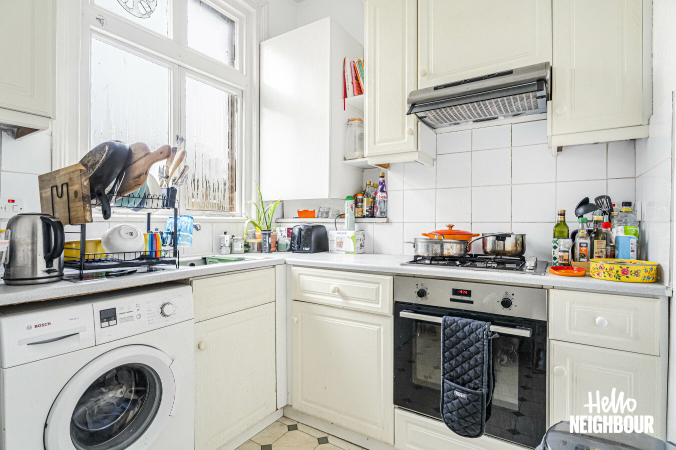Hello Neighbour are pleased to present this well proportioned two bedroom apartment set within a characterful period building.\n\nThe property offers a bright reception room with high ceilings and large sash windows, creating an open and airy living space suitable for both relaxing and dining. The separate kitchen is fully fitted and includes a gas hob, oven, washing machine and ample worktop and cupboard space.\n\nBoth bedrooms are generously sized, with the principal bedroom benefitting from a bay window and excellent natural light. The bathroom is fitted with a full suite including a bath and overhead shower and benefits from a window for ventilation.\n\nOffered fully furnished with white goods included, this apartment is well suited to professional tenants seeking a spacious and characterful home. Permit parking is available on street.\n\nPets: Sadly not permitted\nParking: Permit parking\nSharers: Max 2 professionals or professional couple\n\nTo book a viewing, submit your enquiry and you will receive an email and SMS detailing availability within 10 minutes.