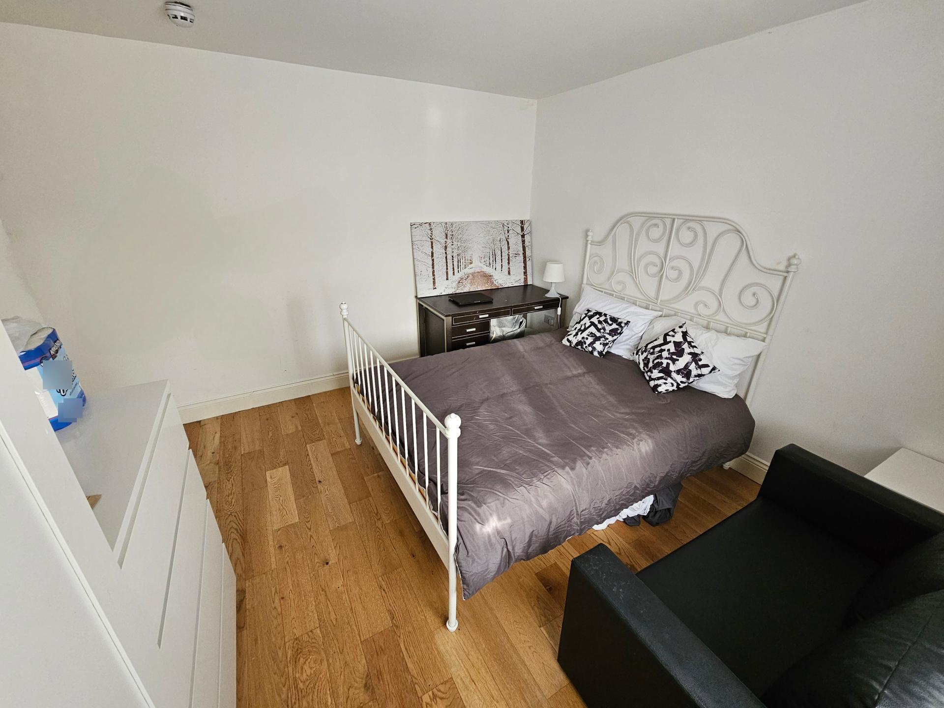 The Room\nPleased to announce the availability of a new premium studio style room in an outstanding house share in the Greenford area.\n\nThe room is both bright and very large in size with lots of natural light entering the room. It is one of 7 in a modern HMO dwelling and benefits from modern furniture, premium memory foam IKEA mattress, as well as a desk and mirror.\n\nThis property has been called one of the best HMO’s in the Greenford area and has been well praised by many tenants in the past. The room is available and ready for someone to move in as soon as possible. The property is maintained to a very high standard and is cleaned once a week. The communal areas of the house are spacious, the hallways, as well as individual rooms and studios, are very bright with lots of light making its way into the property. The communal areas of the property have been decorated throughout and the property as a whole has been finished to a very high standard.\n\nThe House\nThere are 3 communal bathrooms, washing machine, 2 kitchens equipped with three ovens and stove tops, through-out the house. The shared downstairs living space is equipped with sofas, a dining table and a television. The property is equipped with a huge garden for tenants to enjoy, with garden furniture, chill out lighting towards the back garden as well as access to store bicycles.\n\nThis property would be a great fit for a professional tenant who is looking for something a little bit upmarket.