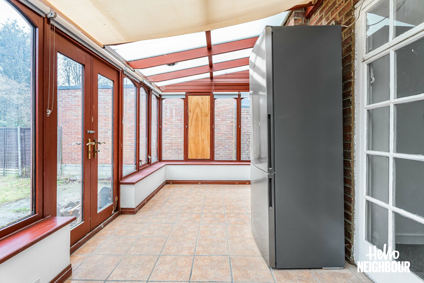 Hello Neighbour are pleased to present this spacious three bedroom semi detached house located on Booth Road, NW9.\n\nThe property offers a generous reception room finished with a feature fireplace, providing a comfortable main living space. Double doors lead through to a bright conservatory, creating an additional reception area with views over the rear garden and direct access outside.\n\nThe kitchen is finished in a clean, modern style and includes ample cupboard and worktop space along with white goods. The kitchen also provides convenient access through to the conservatory and garden.\n\nUpstairs, the property comprises three well proportioned bedrooms, all finished with neutral décor. The family bathroom is fitted with a full modern suite including a bath with handheld shower.\n\nExternally, the property benefits from both front and rear gardens, driveway parking for two vehicles and a garage suitable for storage. The outbuilding (shed) is not for tenant use.\n\nOffered available immediately, this home is well suited to professional families or couples seeking space, outdoor areas and off street parking.\n\nPets: Not permitted\nParking: Driveway for two vehicles\nSharers: 2 sharers max due to licensing restrictions