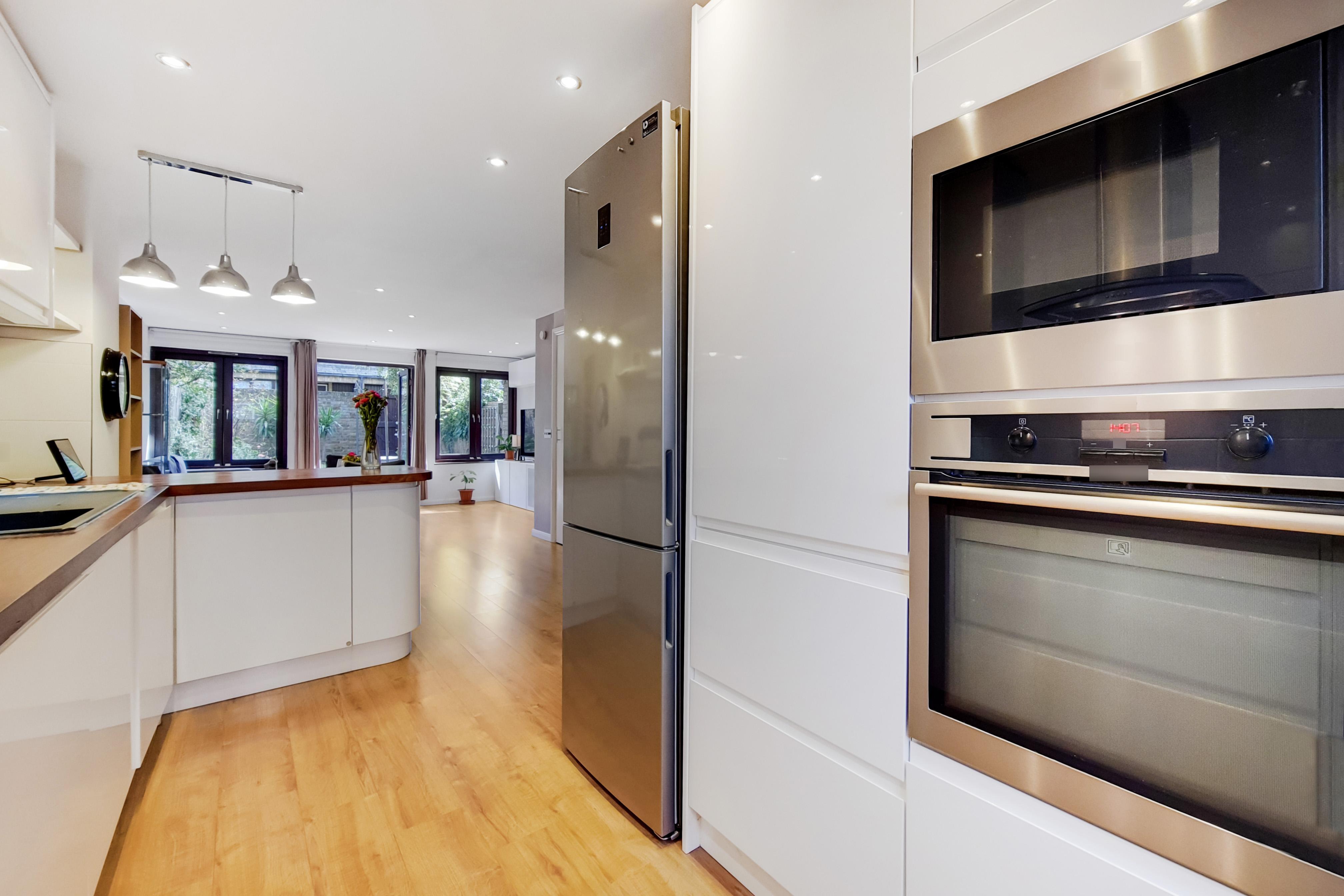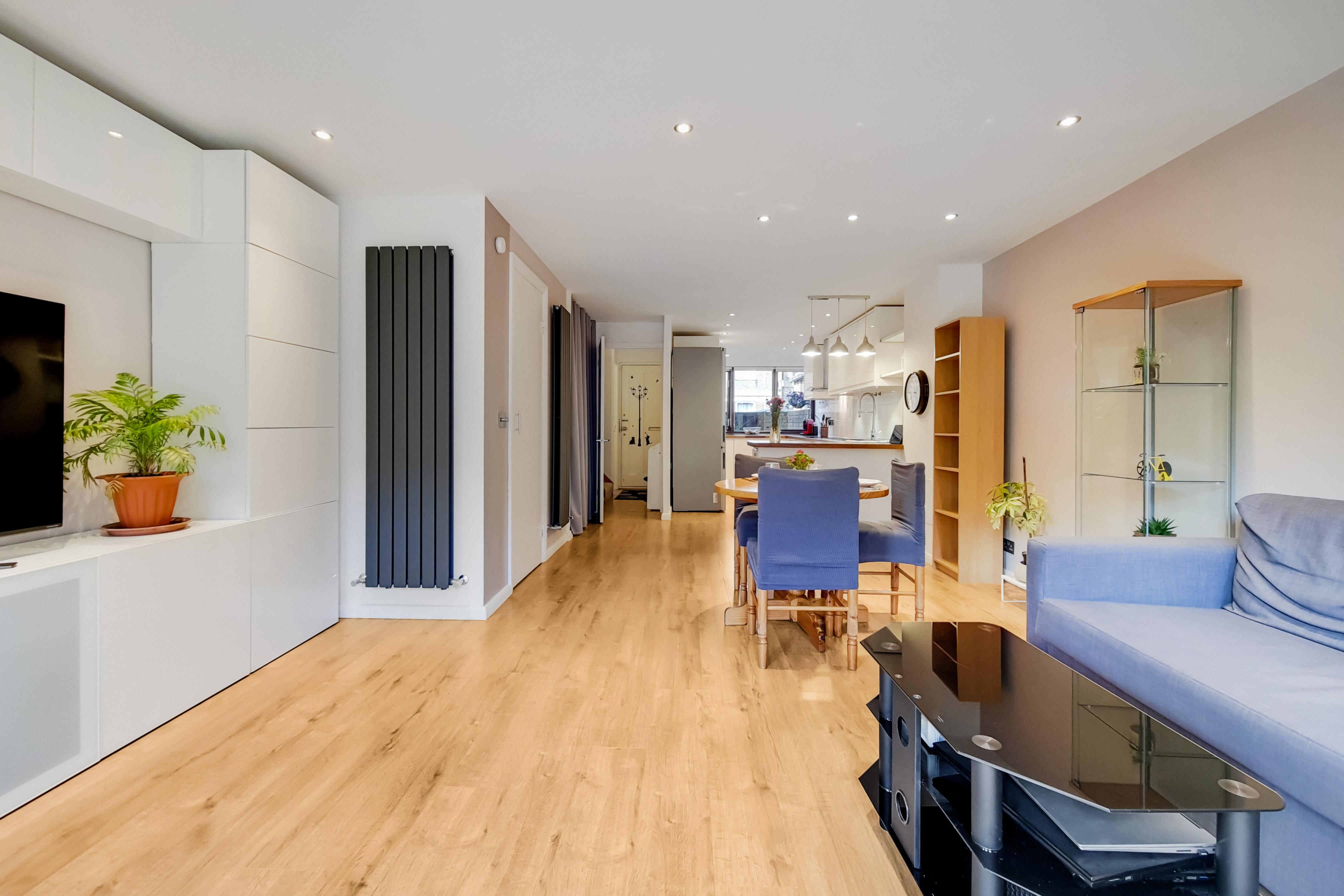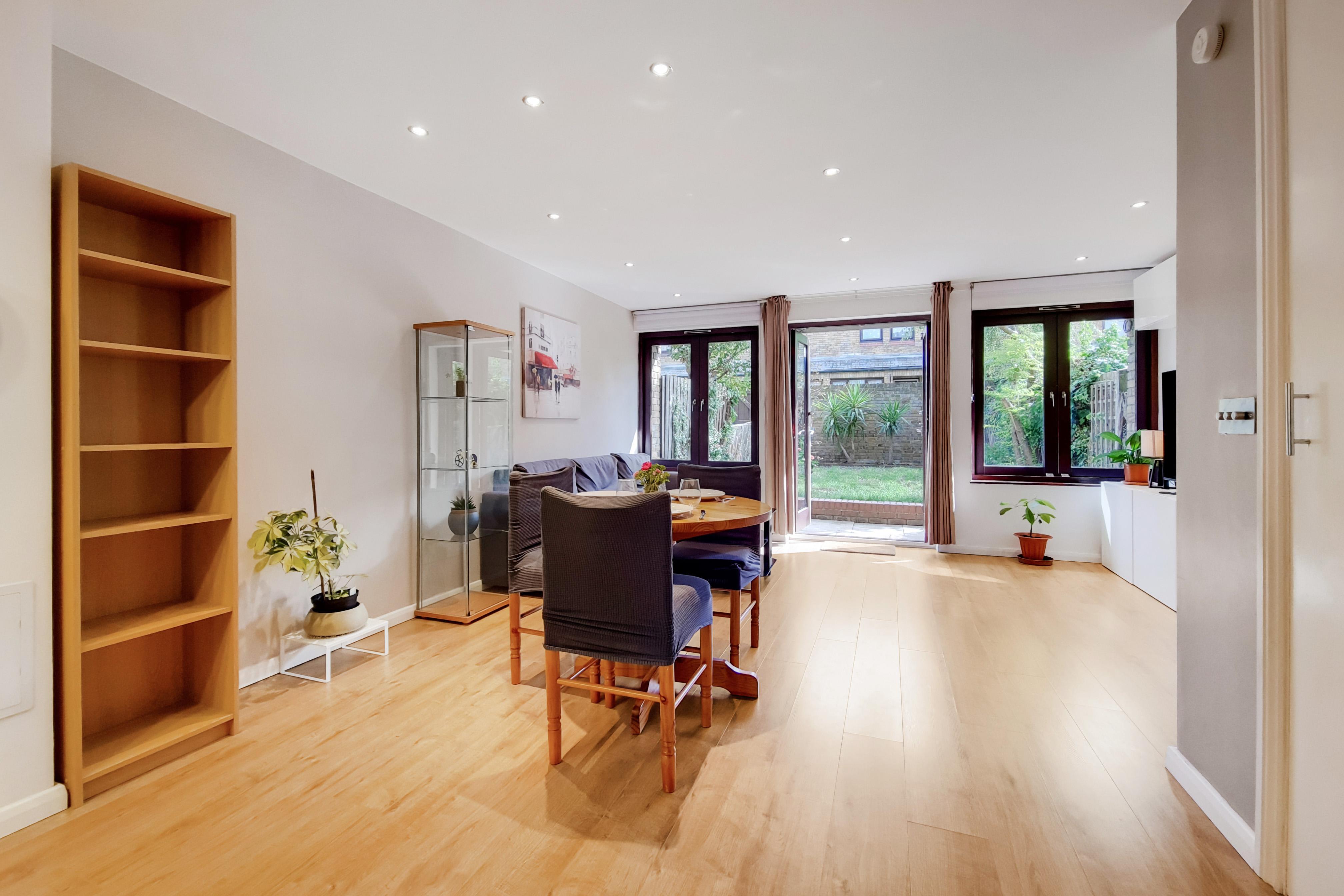 Hello Neighbour are proud to present this spacious three-bedroom family home located on a quiet residential street in SW11.\n\nThe ground floor features a bright and generously sized open-plan living and dining area with warm wooden flooring and recessed ceiling lighting throughout. Large rear windows and patio doors allow natural light to flood the space and provide direct access to the private garden, creating an ideal setting for both relaxing and entertaining.\n\nThe modern fitted kitchen is finished with sleek white cabinetry, wooden worktops, and integrated appliances including oven, hob, microwave, and fridge freezer. The layout provides excellent storage and practical workspace.\n\nUpstairs, the property offers three well-proportioned bedrooms. The main bedroom benefits from built-in wardrobe space and large windows, while the additional bedrooms are ideal for guests, children, or a home office. The contemporary family bathroom includes a bathtub with overhead shower and modern tiling, along with a separate WC for added convenience.\n\nExternally, the home boasts a private rear garden with lawn and planting, as well as a garage and additional storage space visible from the front of the property. Permit parking is available through the council (one permit available for TT account).\n\nLocated in a popular residential area of Battersea, the property offers easy access to local shops, green spaces, and transport links into Central London.\n\nPets: Will be considered \nParking: Permit