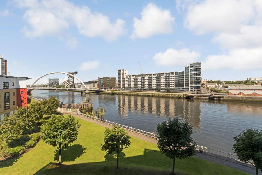 This exceptional higher floor apartment offers unrivalled views across the River Clyde and an abundance of living space. Located in the prestigious Festival Park development on the south bank of the Clyde, this property features:\n\nInterior\nSpacious living/dining area with west-facing windows\nLarge windows overlooking the Clyde Arc, SECC, and Finnieston Crane\nThree bedrooms with fitted wardrobes\nMaster bedroom with dressing area and en-suite shower room\nSeparate modern kitchen with ample storage and appliances (fridge-freezer, dishwasher, electric oven, hob, extractor)\nMain bathroom with three-piece suite and shower over bath\nGenerous entrance hallway\nBuilding & Location\nSecure entry system\nWell-maintained communal and garden areas\nElevator access\nResidents' parking\nConvenient for city center, ITV/BBC offices, and business district\n10 min walking distance to Barclays, JP Morgan offices\nExcellent local amenities\n\nAdditional Benefits\nComplete privacy with no overlooking buildings\nSun-filled rooms with natural light throughout the day\nPanoramic views without compromising on privacy\nPerfect for professionals or families. Available from 10th March 2026.\n\nViewings highly recommended to appreciate the exceptional space and breathtaking views this property offers.\n\nNote: This flat doesn't have a HMO licence. Hence suitable only for a family or max 2 unrelated professionals.