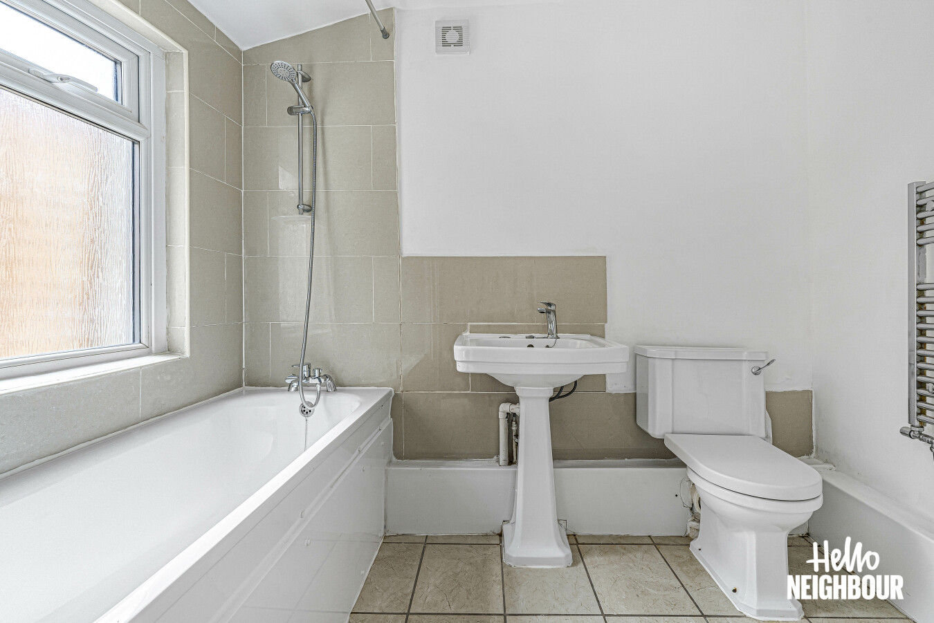 Hello Neighbour proudly presents this spacious three-bedroom, two-bathroom home, offering bright interiors, modern finishes and excellent outdoor space, ideally suited for professionals or families.\n\nThis well-presented property features a generous reception room with high ceilings and a beautiful feature fireplace, creating a bright and welcoming living area perfect for both relaxing and entertaining.\nThe separate modern kitchen is fully fitted with ample cupboard space and integrated appliances, with white goods included for added convenience. The layout provides excellent functionality while maintaining a clean, contemporary feel.\nWith also three well-sized bedrooms, each offering good natural light and versatile space suitable for sleeping, working from home or additional storage. Two bathrooms serve the home, providing practicality and comfort for sharers or families alike.\n\nThe property benefits from a private patio garden, offering fantastic outdoor space ideal for entertaining, dining or enjoying warmer months. Additional benefits include gas central heating, generous storage throughout and a well-balanced layout across the home.\n\nIdeally located, the property is within easy reach of local shops, cafés and everyday amenities, as well as nearby green spaces. Excellent transport links provide convenient access into Central London and surrounding areas.\n\nPets: on request.\nParking: on street with permit via council.