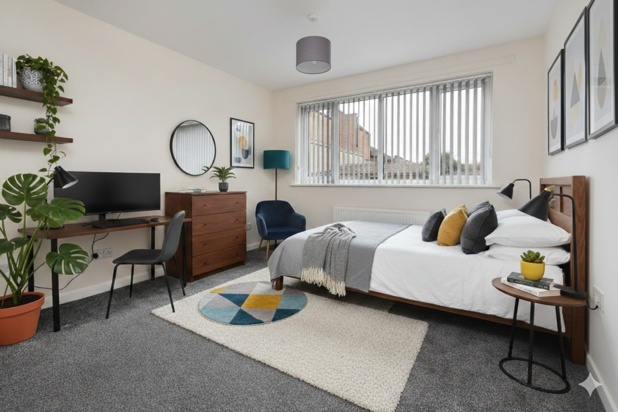 Brand New Refurbished 1-Bedroom Flat in Clarendon Park – New Kitchen, New Flooring – Available Now\n\n• 1 Bedroom Flat\n• Separate Lounge and Kitchen\n• Rent: £875 per month\n• Parking: Optional off-road space £50 per month\n• Availability: Now\n• Ideal for: Professional single occupant or couple\n\nA beautifully refurbished one-bedroom flat in the heart of Clarendon Park, one of Leicester’s most desirable and vibrant residential areas. Situated within the well-maintained Clarendon Court development on West Avenue, this property offers high-quality modern living ideally suited to professionals or couples.\n\nThe flat has just undergone a full refurbishment and is presented in excellent condition throughout. It features a brand new contemporary kitchen, new flooring across all rooms, and a clean, modern finish ready for immediate occupation. The layout is practical and well-proportioned, providing comfortable living space in a quiet and attractive residential setting.\n\nKey Features\n• Fully refurbished throughout to a high standard\n• Brand new modern fitted kitchen\n• New flooring throughout\n• Bright and spacious living room\n• Well-proportioned double bedroom\n• Clean, modern bathroom\n• Quiet, well-maintained residential block\n• Optional off-road parking space available (£50 per month)\n• Highly sought-after Clarendon Park location\n• Short walk to Queens Road shops, cafés, bars and restaurants\n• Easy access to Leicester city centre\n• Available immediately