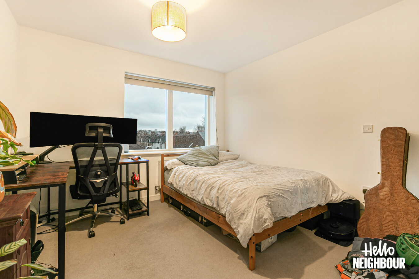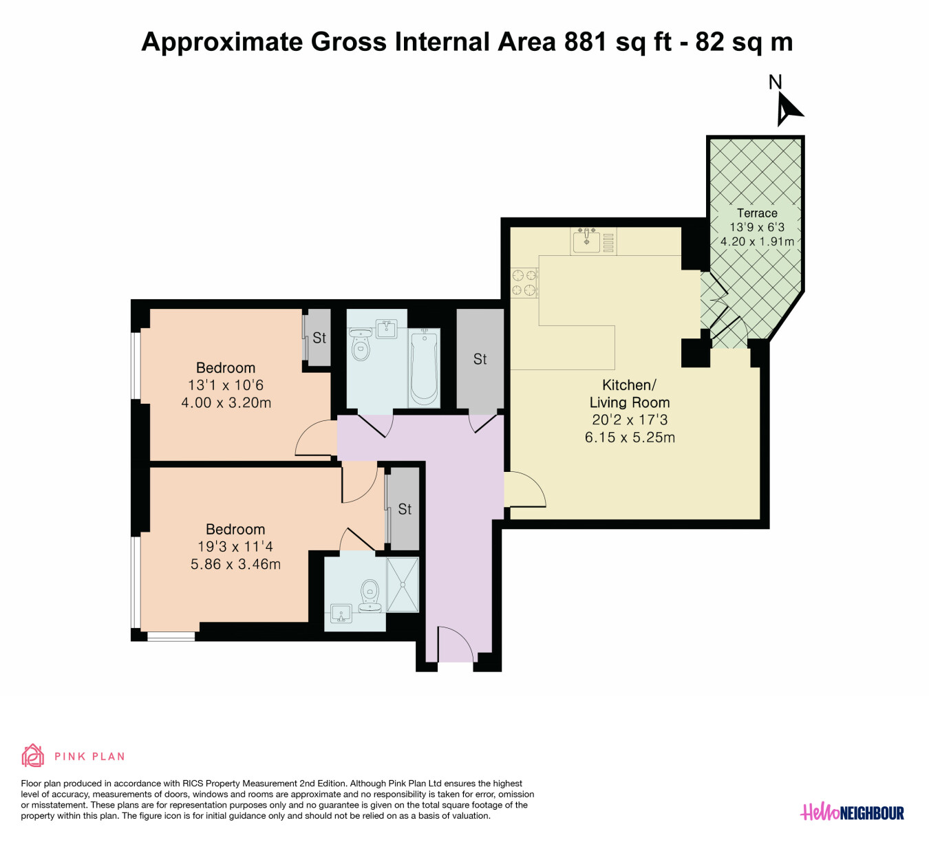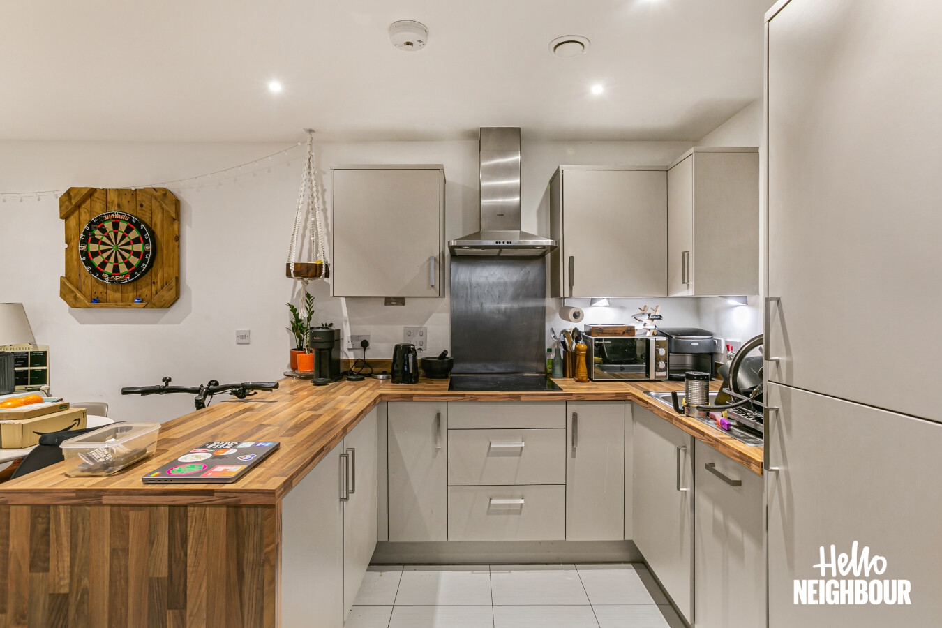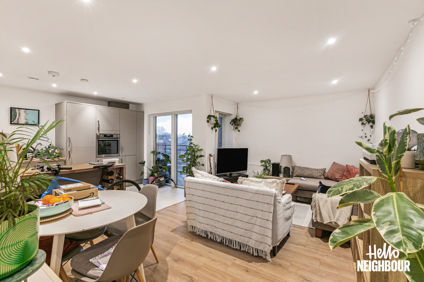 Hello Neighbour are proud to present this beautifully presented 2-bedroom, 2-bathroom apartment with private balcony and allocated parking located at Kingston Road, SW20.\n\nSet within a modern purpose-built development, this fully furnished apartment offers 881 sq ft of well-designed living space, ideal for professionals or a couple seeking both comfort and convenience.\n\nThe heart of the home is the spacious open-plan kitchen and reception room, featuring wood-effect worktops, integrated oven, hob, extractor, and full-height cabinetry, along with large windows and balcony access that bring in plenty of natural light. The living area is comfortably arranged with sofa seating, dining space, and direct access to the private terrace balcony, perfect for morning coffee or evening relaxation.\n\nBoth bedrooms are generous doubles, with the main bedroom benefiting from built-in mirrored wardrobes and a modern en-suite shower room. The second bedroom is well-sized, ideal as a guest room, office, or additional sleeping space.\n\nThe property also includes a contemporary main bathroom with full-size bath and overhead shower, finished in neutral tiling.\n\nSituated on Kingston Road, the property is conveniently located for local shops, transport links, and green spaces, making commuting and day-to-day living easy.\n\n\nParking: 1 space included\nPets: Unfortunately not permitted \n\nTo book a viewing: submit your enquiry and you'll receive an email and SMS detailing availability within 10 minutes.
