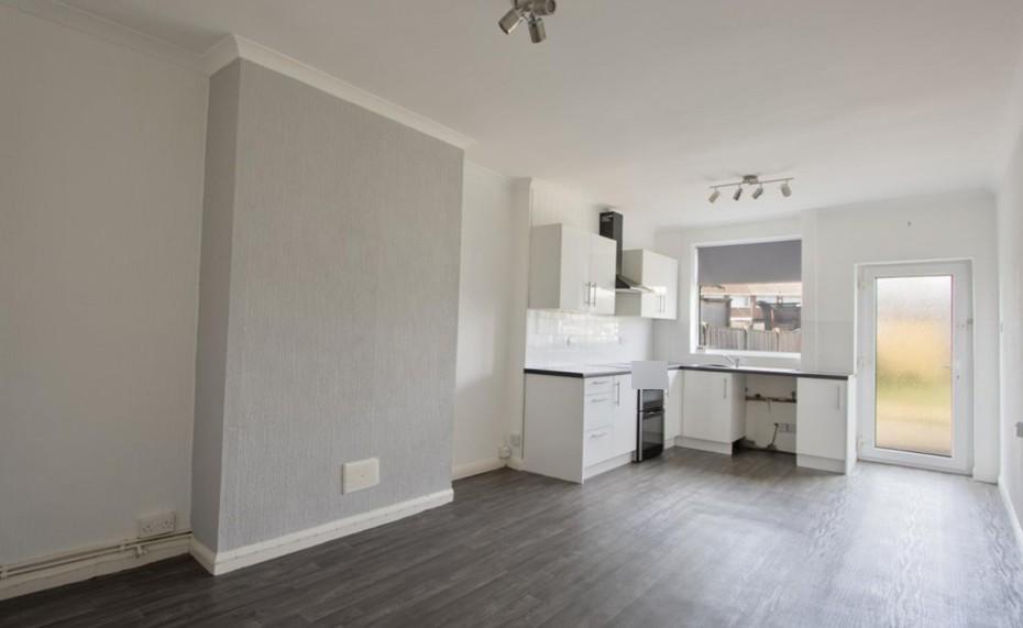 Extended Family Home to Let – Derby Road, Chesterfield\n\nIdeal for a couple or family, this well presented and spacious two double bedroom extended mid-terrace house offers modern, comfortable living in a convenient location close to local amenities, schools, and transport links. \n\nKey Features:\n•Two generous double bedrooms with fitted storage\n•Spacious and bright living room\n•Large modern dining kitchen with ample storage and workspace\n•Fully tiled bathroom with shower over bath\n•Rear garden – perfect for relaxing and entertaining\n•Off-street parking space to the rear\n•Gas central heating and double glazing throughout\n•Neutral décor – ready to move in\n•Council Tax Band A \n•A good energy efficient home with an EPC C to keep those bills down \n\nThis extended family home offers approximately 800 sq. ft. of well-maintained living space, including a welcoming living room and a spacious kitchen Diner with modern white high-gloss units and room for appliances. Upstairs, there are two large double bedrooms, both with useful storage, and a modern, good sized fully tiled bathroom. Outside, the property benefits from a pleasant rear garden and dedicated parking spaces. The property is situated close to local amenities, schools, and commuter routes, making it perfect for couples or families. \n\nThe property is ideally positioned with easy access to:\n•Chesterfield town centre\n•Local shops , supermarkets and schools \n•Public transport and commuter routes