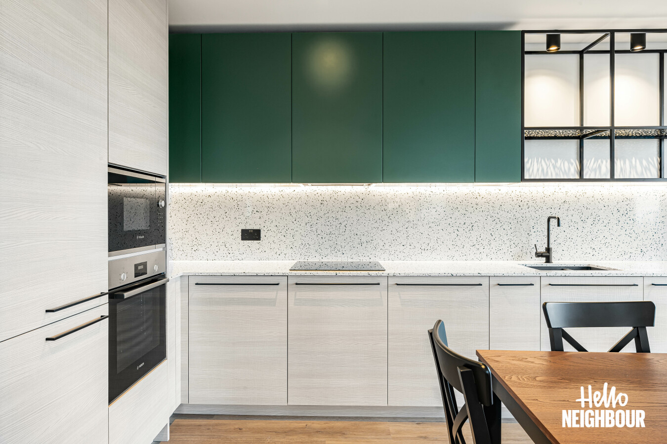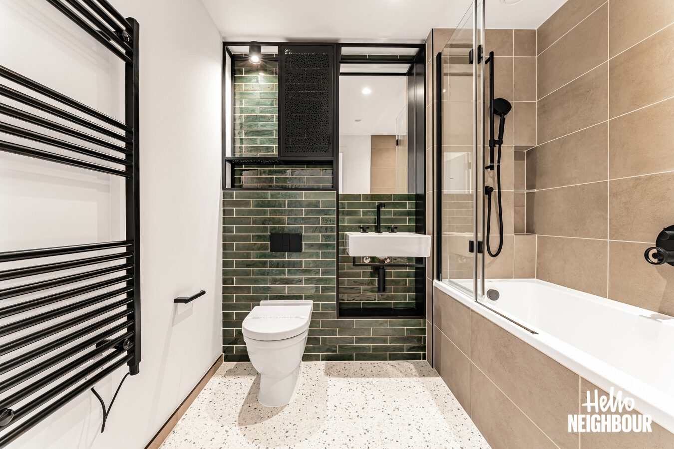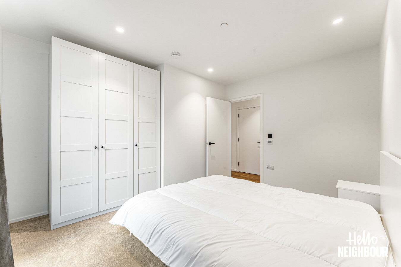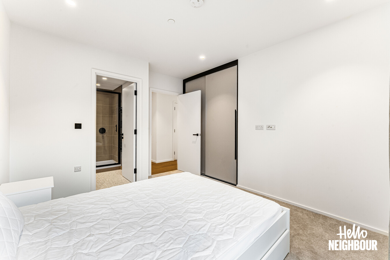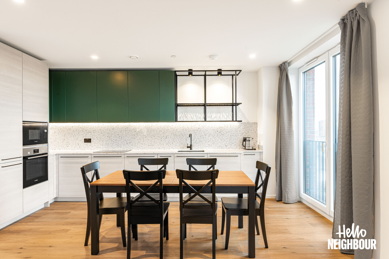 Hello Neighbour are delighted to present this brand new, fully furnished 2-bedroom, 2-bathroom apartment with a large private balcony, located within the highly sought-after Aberfeldy Village development, E14.\n\nSituated on an upper floor, the property offers a bright and spacious open-plan kitchen and reception area, finished to a high contemporary standard. Floor-to-ceiling windows allow excellent natural light throughout and provide access to a generous private balcony boasting impressive far-reaching views, ideal for relaxing or entertaining.\n\nThe modern integrated kitchen features sleek cabinetry, stone worktops, and built-in appliances, complemented by a dedicated dining area and stylish furnishings throughout the living space.\n\nBoth bedrooms are well-proportioned doubles, with the main bedroom benefiting from built-in wardrobes and a contemporary en-suite shower room. A second modern bathroom serves the remainder of the apartment, finished with high-quality tiling and fittings.\n\nOffered fully furnished with upmarket furniture, the apartment is ready to move into and perfectly suited to professionals seeking modern riverside living. Residents also benefit from a concierge service and well-maintained communal surroundings within this popular new development.\n\nLocated in Aberfeldy Village, the property enjoys easy access to local amenities, riverside walks, and excellent transport links into Canary Wharf and Central London.\n\nPets: Sadly not permitted\nParking: Not available