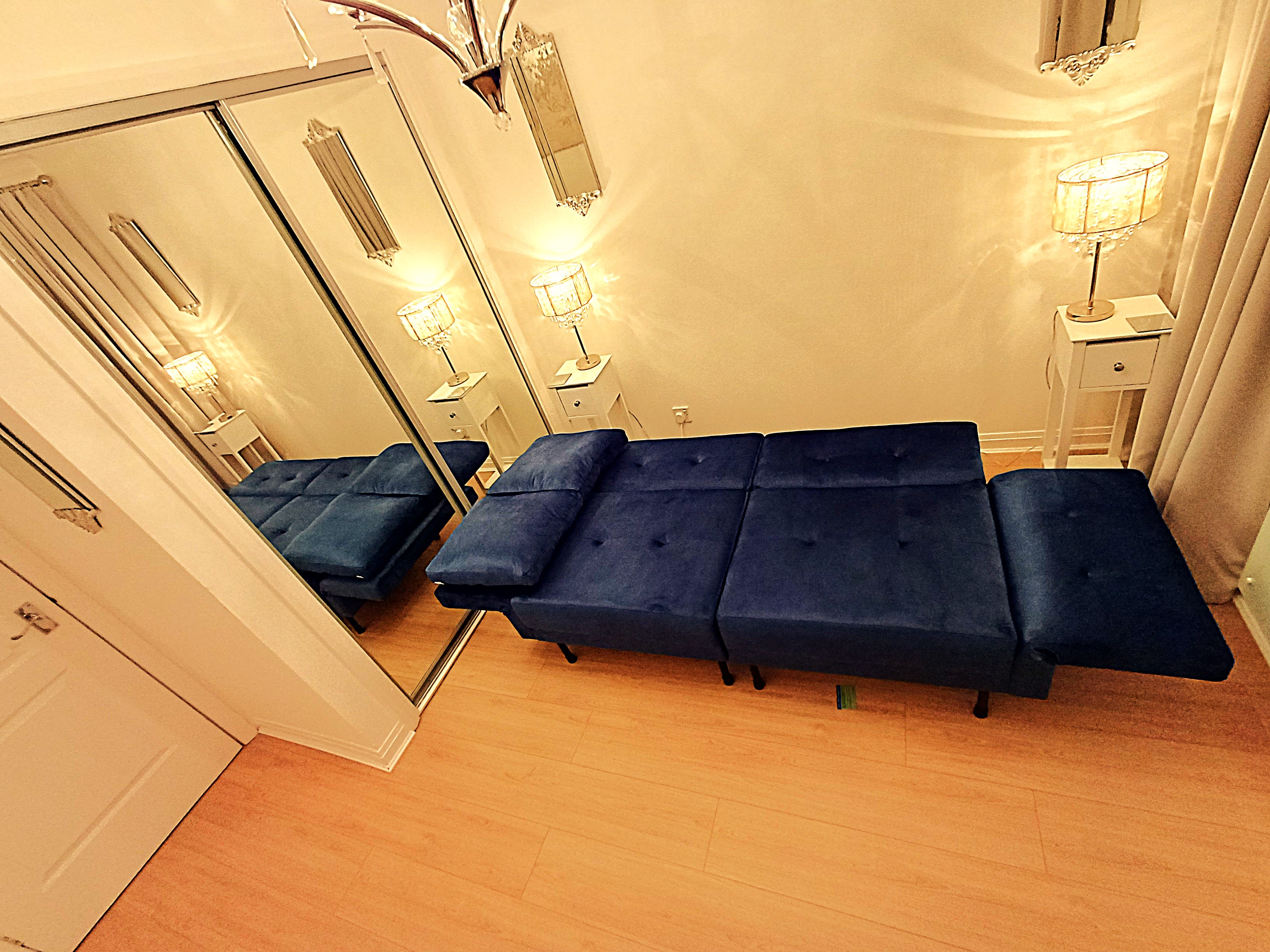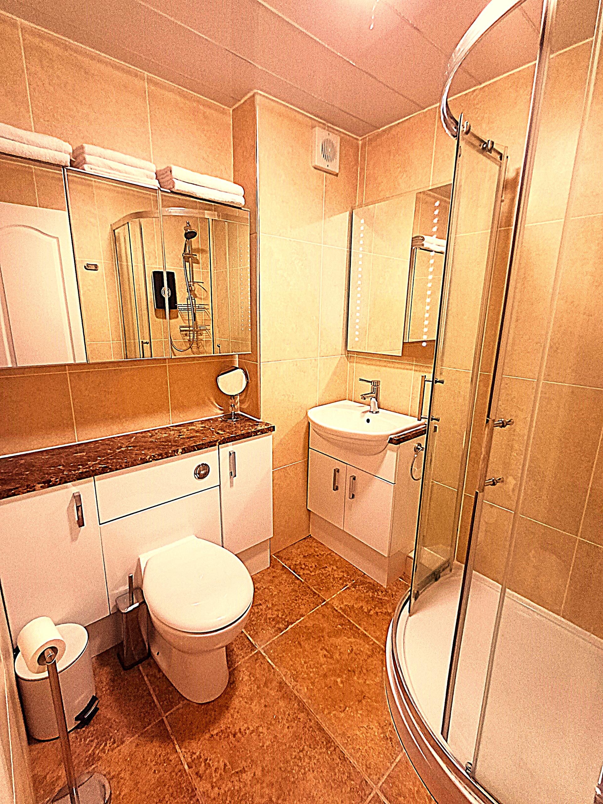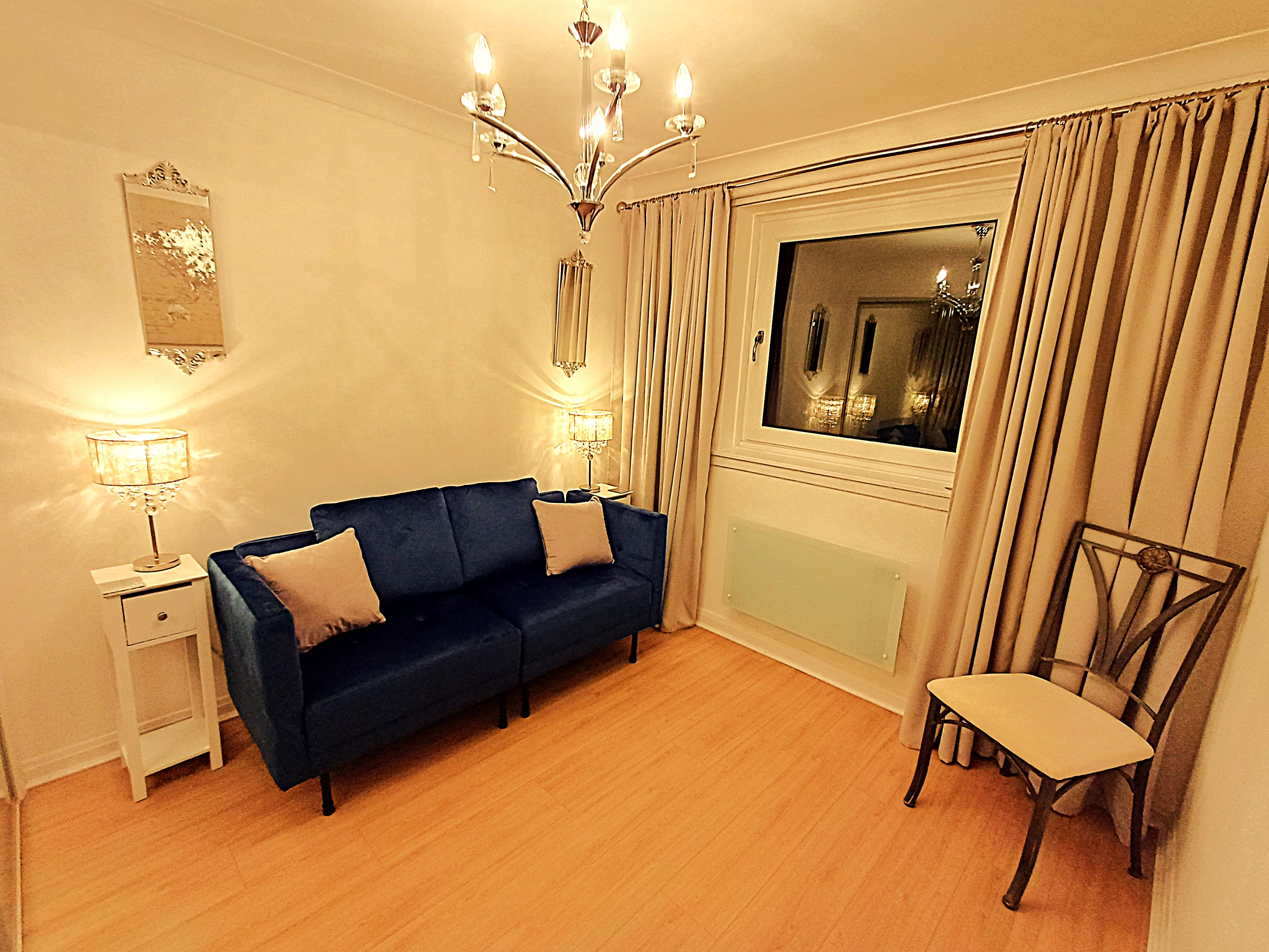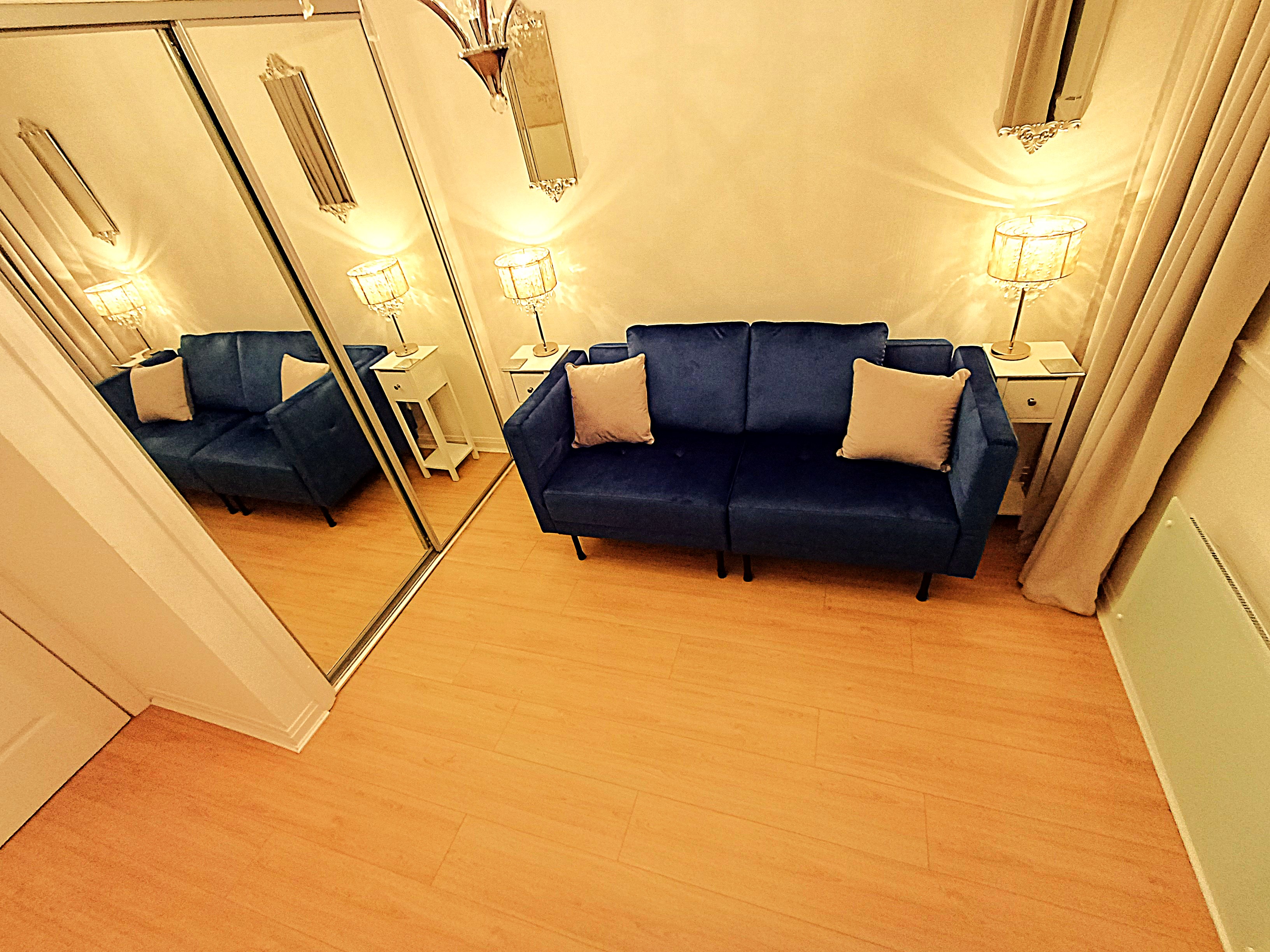The second bedroom is set up as an office or guest room with folding desk and sofa bed.\n\nGENUINELY FULLY FURNISHED:\nThe property includes all furniture, curtains, blinds, kitchen implements, plates, bowls, cups, glasses, pots, pans, iron, ironing board, clothes airers, towels, spare towels, bedding, spare bedding, hangers in the wardrobes etc. Therefore, you don't need to worry about spending extensive time and money sourcing all of these things. You can walk in and sit down!\n\nA luxurious second floor apartment in true walk-in condition.\nThis apartment comprises a living room, kitchen, reception hallway, two double bedrooms and family bathroom with walk-in shower.\n\nMore than ample hidden storage spaces.\n\nDecorated to show home standard. This apartment has been painted in a pleasing white tone which compliments the new laminate flooring and stylish tiles in the kitchen and bathroom. The decor is exemplary.\n\nLarge picture double glazed windows flood the apartment with light which is further accentuated by stunning chandeliers in every room.\n\n• Deposit: £1350\n• Fully Furnished in walk-in condition\n• Electric heating\n• Double Glazing\n• DISHWASHER\n• Free Parking\n• Landscaped grounds\n• Very quiet area\n• Nearby access to the M73, M74 and M8.\n• Audio Security Entry\n• Council Tax C\n• EPC C\n• Second floor apartment\n• Bills not included\n• Family friendly\n• Credit checks, references and ID checks required for all adult tenants\n• No Subletting\n• LL Reg: 523015/380/07052\n1797271/380/10022
