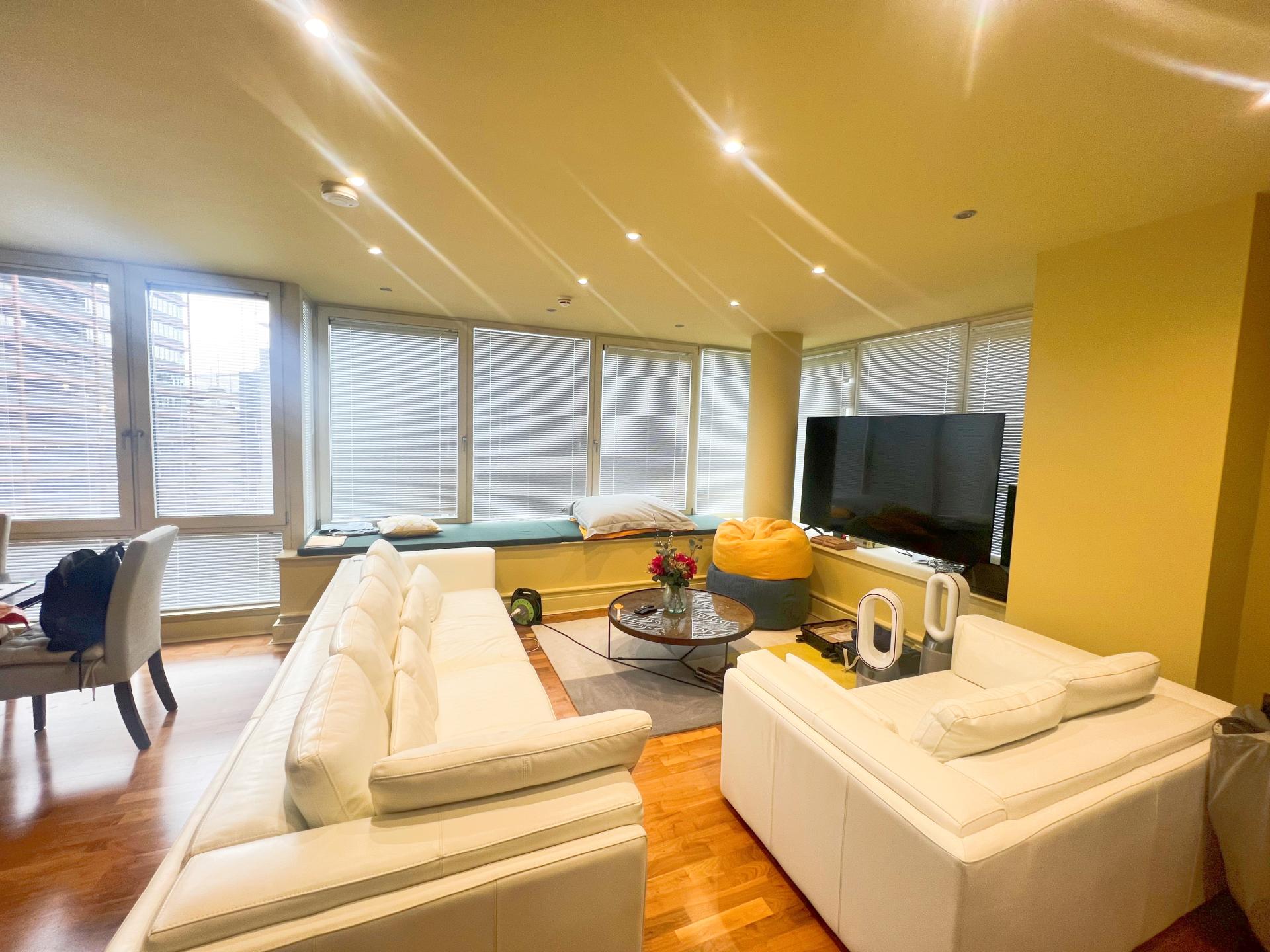 This fabulous two bedroom duplex 4&5th floor apartment located in the prestigious Leftbank development, spanning an impressive 1565 sq ft is available to rent from early March. The apartment benefits from with views over Spinningfields and the water. Entrance Hall with storage, large living room with access onto a full length balcony, fully integrated kitchen with breakfast bar. Spacious master bedroom with an attractive en-suite shower room. The second bedroom is a great size double with access onto a balcony with views over Spinningfields. Allocated Parking included.\n\nSituated in the Heart of Spinningfields (Just off Deansgate) this apartment offers amazing city centre living with lots of shops, bars & restaurants right at your front door\n\nExcellent Connectivity!\n\nSituated just 0.1 miles from Deansgate, residents have immediate access to an array of transport links, everyday amenities and high-end retail. Manchester's iconic football stadiums - Old Trafford (2.4 miles) and Etihad Stadium (2.6 miles) - are both within easy reach. For culture and entertainment, Castlefield Bowl is just 0.5 miles away, hosting regular food festivals, concerts and live events.\n\nCommuting is effortless with St Peter's Square tram stop (0.3 miles) providing access to the wider Metrolink network, while Salford Central railway station (0.2 miles) offers convenient regional and national rail services.\n\nParking available to rent on basement car park for £150-200pcm