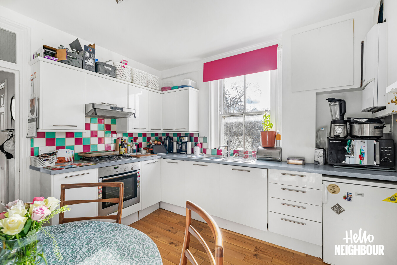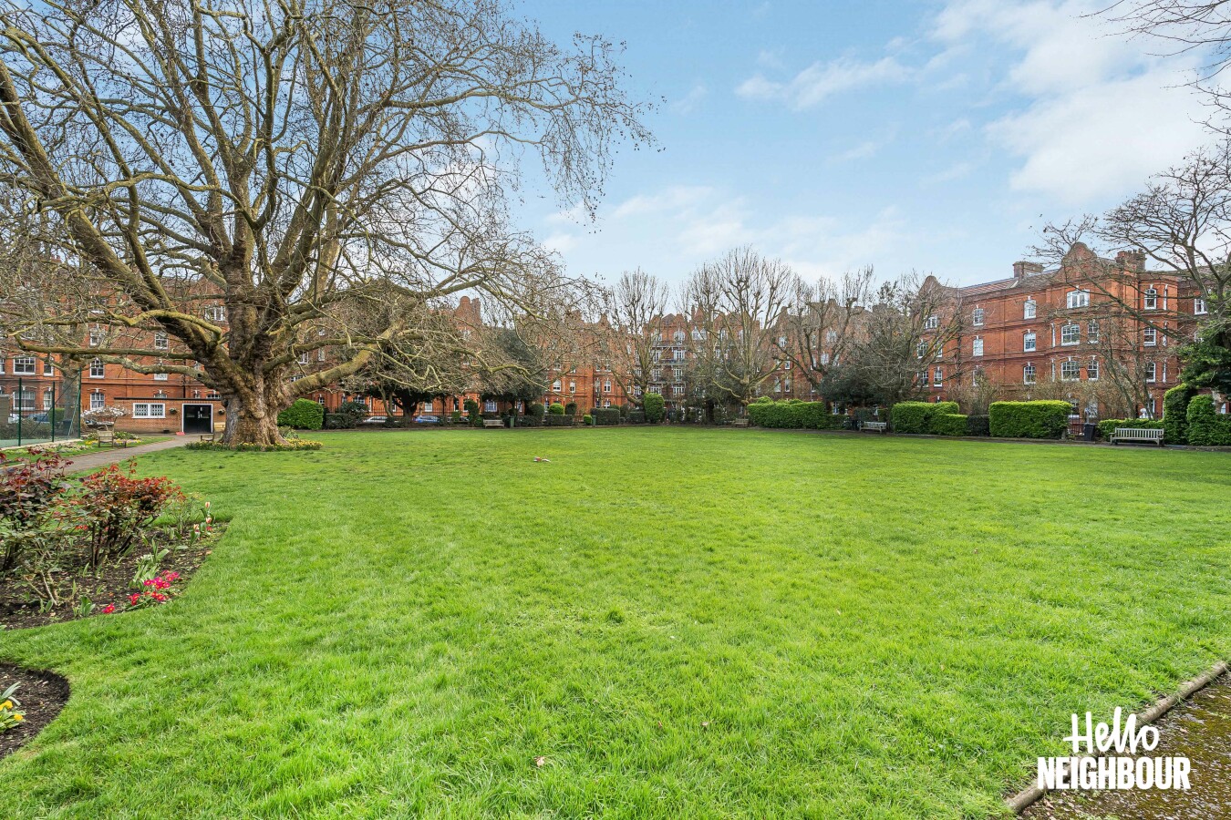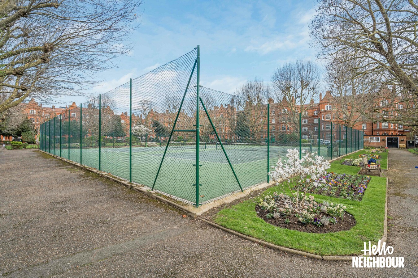 Hello Neighbour are pleased to present this bright and well-proportioned one-bedroom apartment set within the highly desirable Queens Club Gardens development in West Kensington, W14.\n\nSituated within an attractive red-brick mansion block, the property offers a generous reception room filled with natural light from large sash windows, providing a comfortable space for both relaxing and working from home.\n\nThe separate kitchen / dining room is spacious and practical, featuring ample storage and worktop space alongside room for a dining table. The double bedroom is well-sized with good natural light, while the contemporary three-piece bathroom includes a full bath with overhead shower.\n\nResidents benefit from access to the beautifully maintained private communal gardens and tennis court, a rare feature that offers peaceful outdoor space in this sought-after West London location.\n\nThe property is ideally positioned for excellent transport links with Barons Court and West Kensington stations within walking distance, offering quick access across London via the District and Piccadilly lines.\n\nPets: not allowed. \nParking: Permit on street via council.\n\nTo book a viewing: submit your enquiry and you'll receive an email and SMS detailing availability - within 10 min