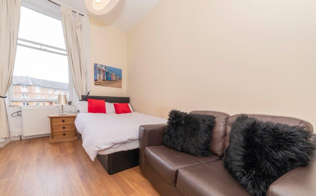 AVAILABLE NOW \nA lovely 5 bedroom HMO licenced with double beds and high ceilings. Lounge with 55 TV and comfy sofas.\nDining kitchen and 2 showers. \nAll fully equipped.\nWashing machine , tumble dryer , air fryer etc.\n\nNext to Tesco's supermarket and the Quay complex .\nTube station and m74, M8 motorway Ramps at the end of the Street.\nShort walk over Finneston bridge into the west end.\nNo holding fee.\n1 month rent and month deposit to move in.\nCan view most days.\n\nHMO Glasgow