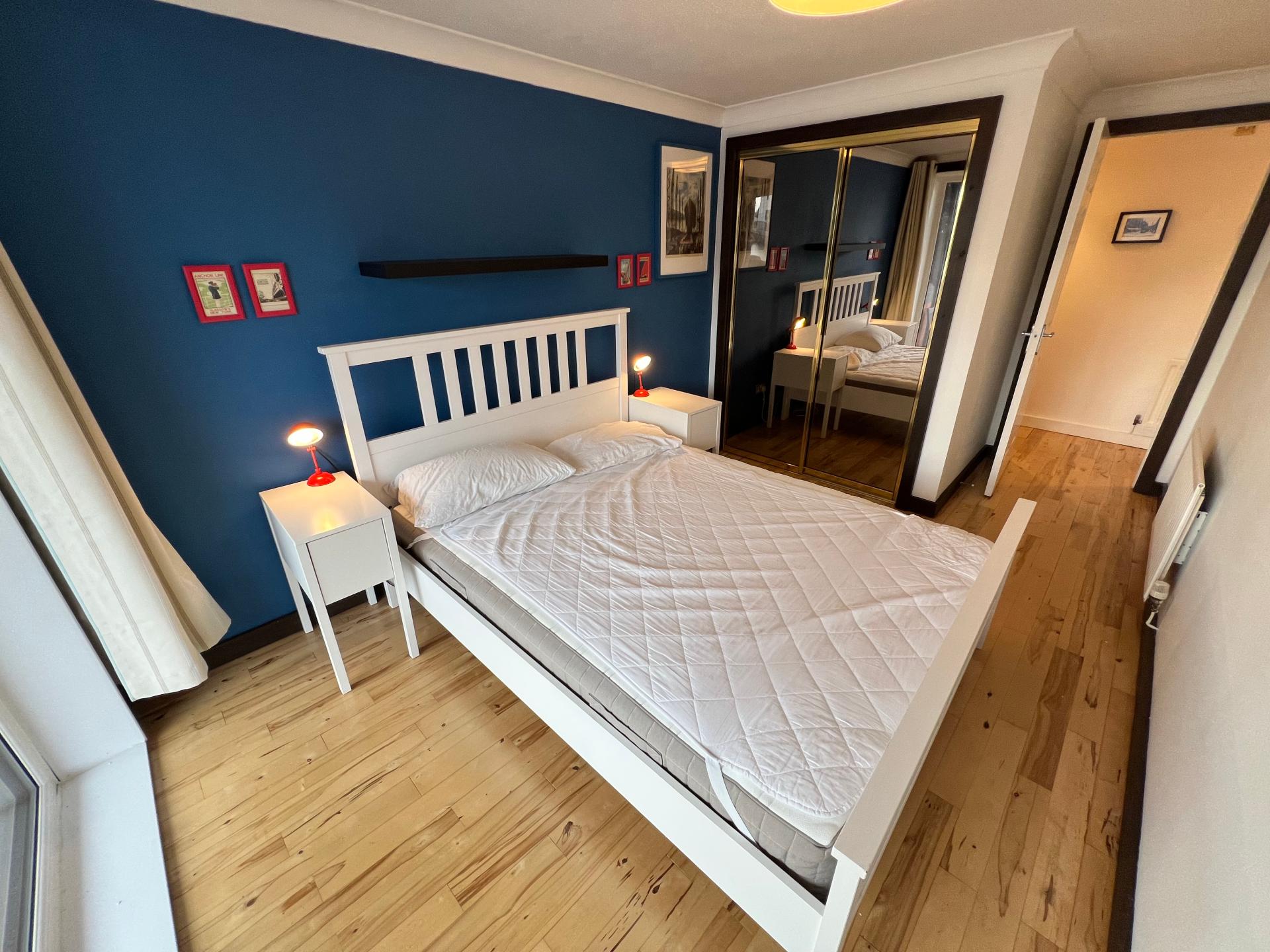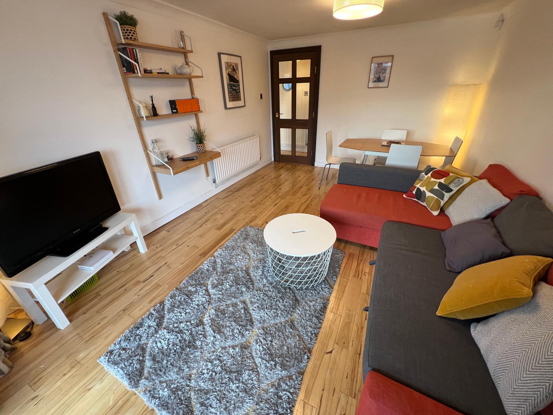 Sitting directly on the Clyde in the converted warehouse development on Lancefield Quay, this flat is perfectly situated for the city center, while still having the benefits of a quiet riverside location. Two bedrooms, with one shower room, a newly refreshed kitchen, and a large lounge/diner looking onto the river.\n\nThe main bedroom has a double bed, and a built in wardrobe, as well as access to the patio. The second bedroom has a double bed, a free-standing wardrobe, and a set of bedside drawers. The kitchen features a dishwasher, washer dryer, and a good sized fridge-freezer, and has recently been refreshed with new units and tiling. There is an induction hob and Neff slide and hide oven to make the most of the galley layout. The flat is double glazed with doors opening onto the patio from the living area and the front bedroom and has a C EPC rating. There is an allocated undercover parking space just by the front door, , and the flat is in Council tax band F. Hyperoptic high speed broadband is available at the property.\n\nAvailable to move in now, viewing March 18-22. Owner-managed, deposit 2 months (the listing may say 5 weeks, due to England rules), but can be reduced subject to references. Landlord ref\n1205136/260/13032\n\nIf you're enquiring, email is preferred, and do please let us know something about yourself when you make contact - We usually try to keep it to 5-6 viewings rather than taking the time of dozens of people, so short enquiries tend to get short answers.
