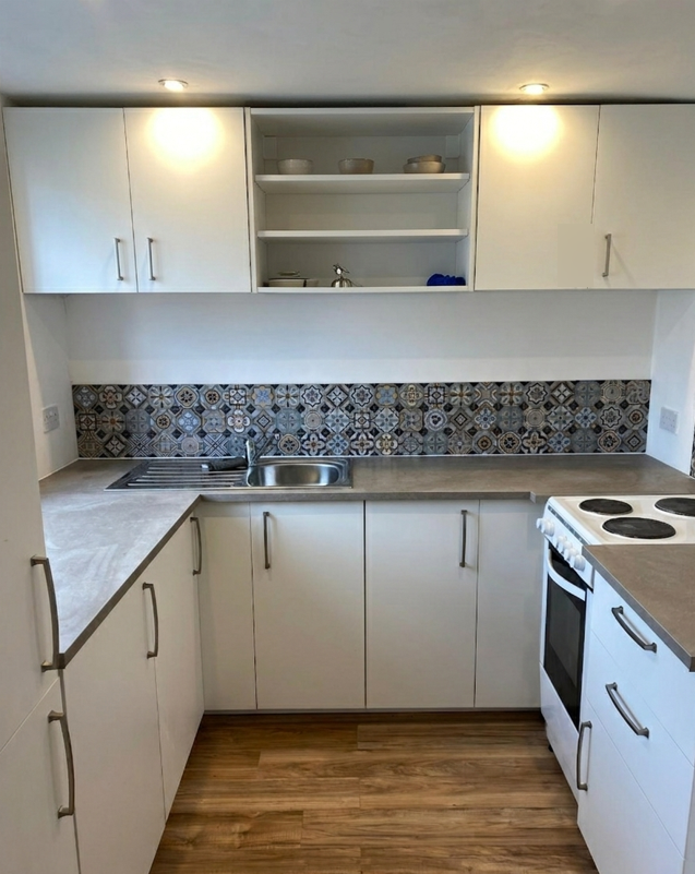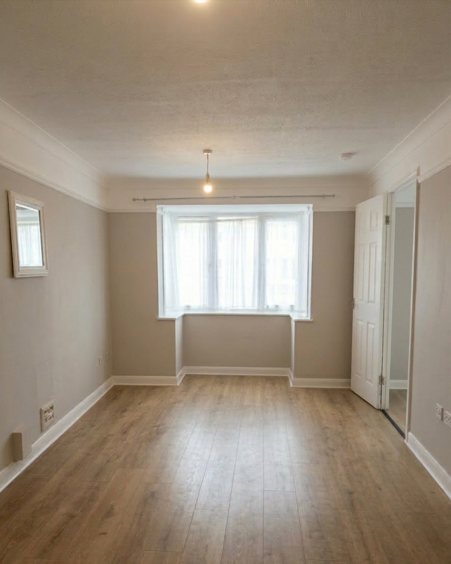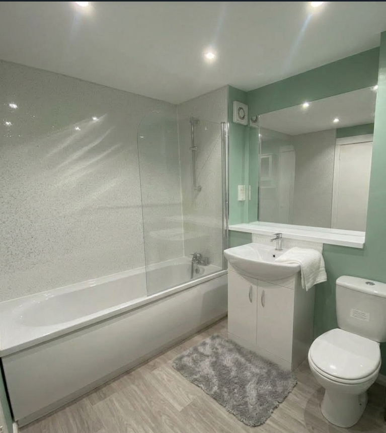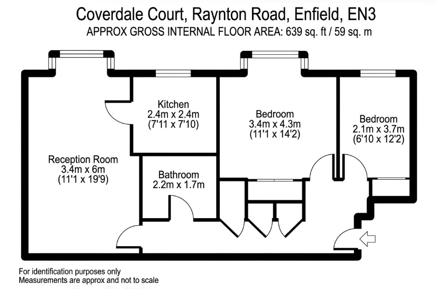 Location & Parking\nThis property benefits from private residents' off-street parking within the development. For commuters, Enfield Lock Station is a 6-minute walk away (direct to Liverpool Street/Stratford), with Turkey Street Station is 15 minutes walk. There are ample local shops & takeaways, with major supermarkets like Lidl and Tesco Extra are also very close.\n\nThe Property\nThe hallway features wood-effect flooring and integrated storage. The generous reception room (3.4m x 6m) is anchored by a large bay window, offering ample space for both lounge and dining furniture. The separate kitchen is modern and functional, with sleek white units, stone-effect worktops, and a stylish tiled backsplash.\n\nThe accommodation includes two well-proportioned bedrooms. The primary bedroom is a spacious double (3.4m x 4.3m) with integrated wardrobe space. The second bedroom (2.1m x 3.7m) is a versatile space as a bedroom or a home office and also features an integrated wardrobe space. The bathroom is finished with modern white fittings, a shower over the bath, and contemporary wall panelling.