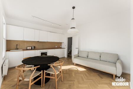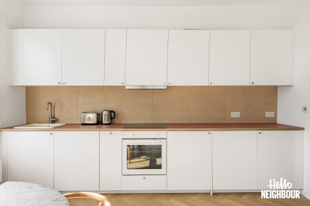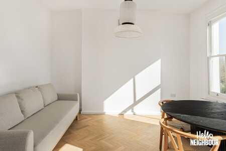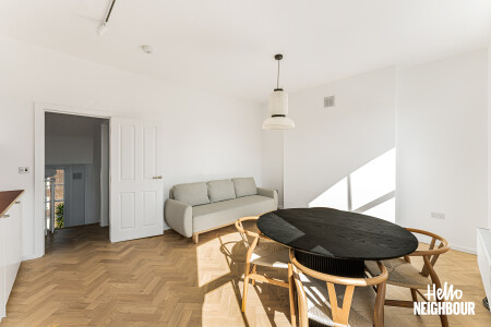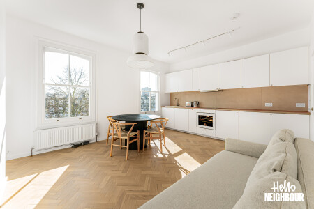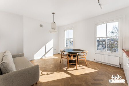 Hello Neighbour are proud to present this beautifully finished one-bedroom home, offering stylish interiors and an abundance of natural light throughout.\n\nAvailable from 13th April 2026 and offered fully furnished, this impressive property comprises a spacious double bedroom, a sleek modern bathroom, and a bright open-plan reception room with a fully fitted kitchen. The living space is finished to a high standard, featuring large sash windows, elegant herringbone flooring, and contemporary furnishings, creating a warm yet modern feel.\n\nThe kitchen comes complete with integrated white goods and ample storage, making it ideal for comfortable day-to-day living.\n\nSituated on a charming residential street, the property further benefits from on-street permit parking and is conveniently located close to local amenities, transport links, and green spaces, making it perfect for professionals or couples.\n\nParking: on-street with permit via council.\nPets: on request.\n\nTo book a viewing: submit your enquiry and you'll receive an email and SMS detailing availability - within 10 min