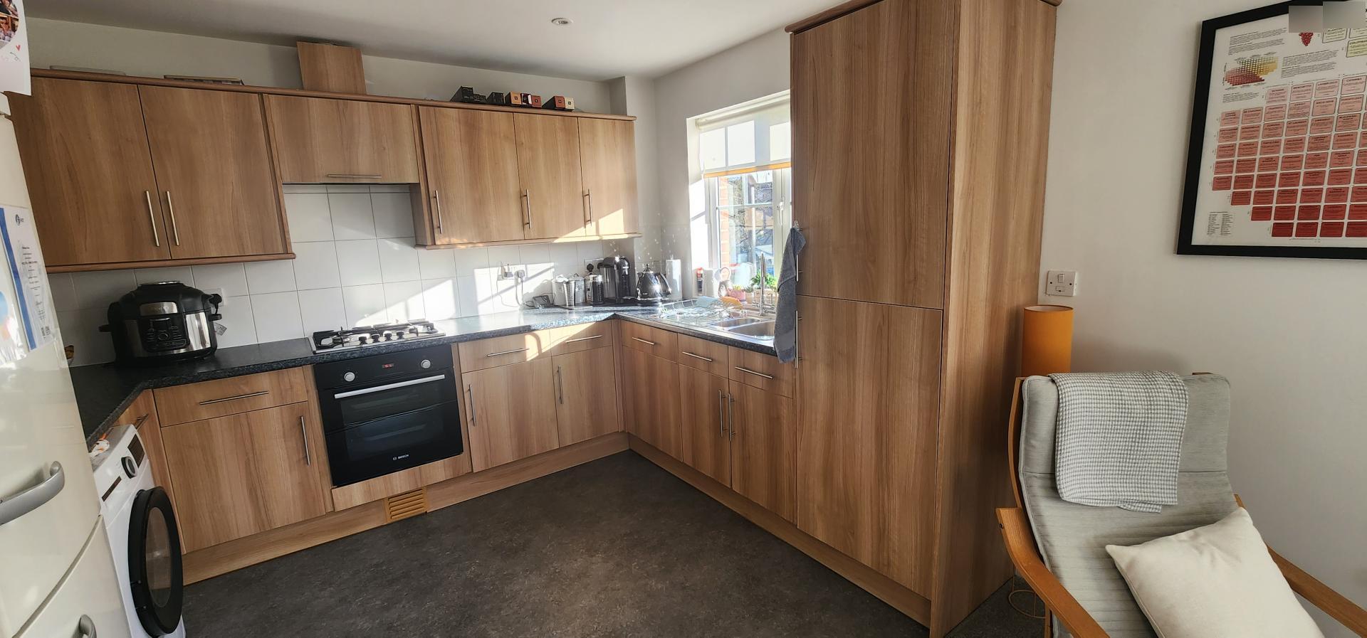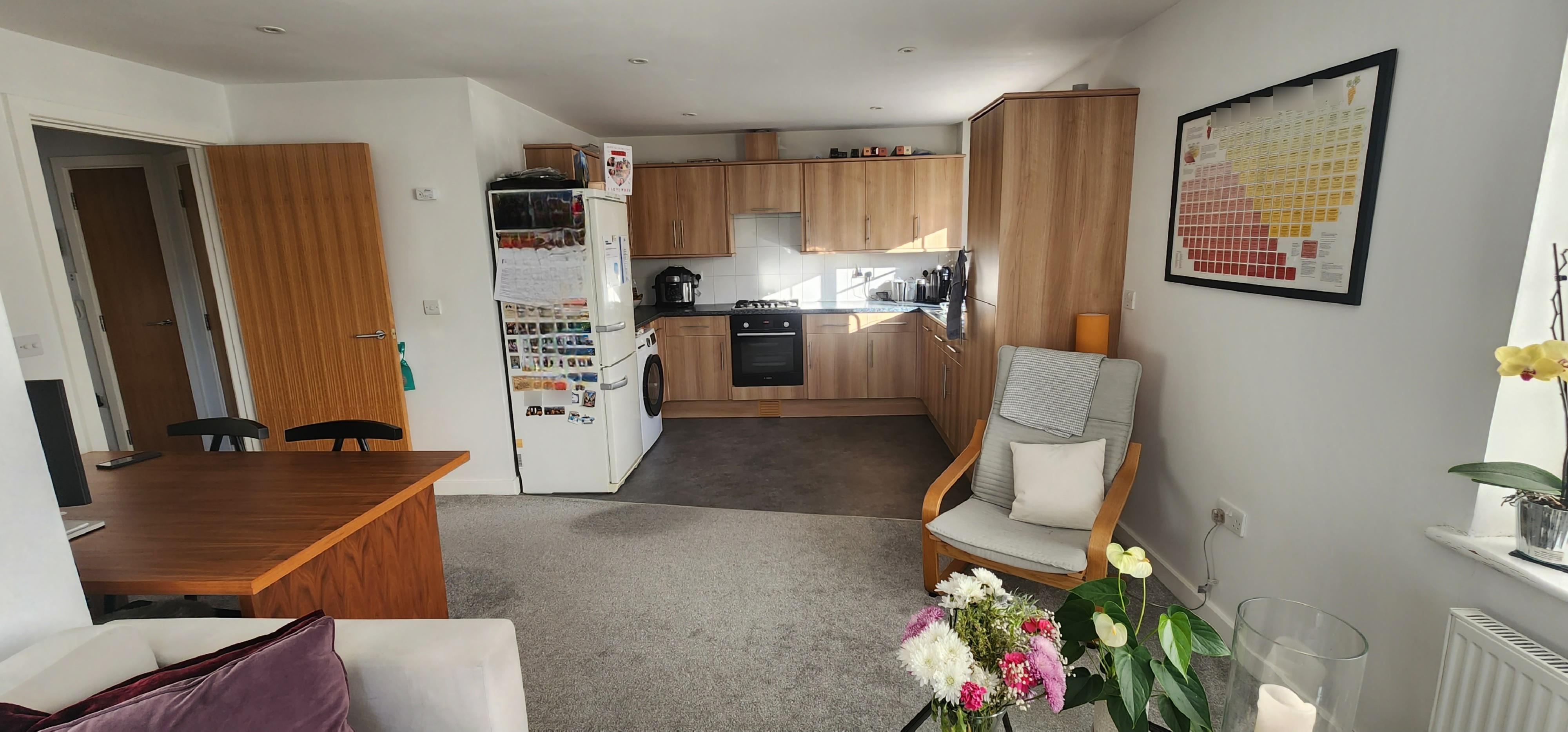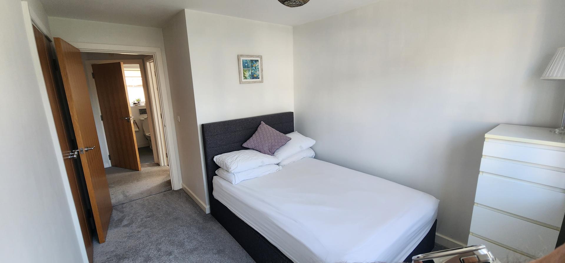 A modern two double bedroom first floor spacious apartment, conveniently situated for the town centre & main line station.\nThe property offers a bright, light & spacious accommodation, comprising entrance hall with storage cupboards, good size living room leading onto a modern kitchen. The master bedroom with build-in wardrobes & ensuite shower room a further second double bedroom also with build in wardrobe and a family bathroom.\n\nThe property also benefits from having allocated parking. Gas central heating. Bosch washing machine, Bosch dishwasher and new Bosch oven. Part furnishing to be discussed, beds will not be included. \n\nEPC Rating B