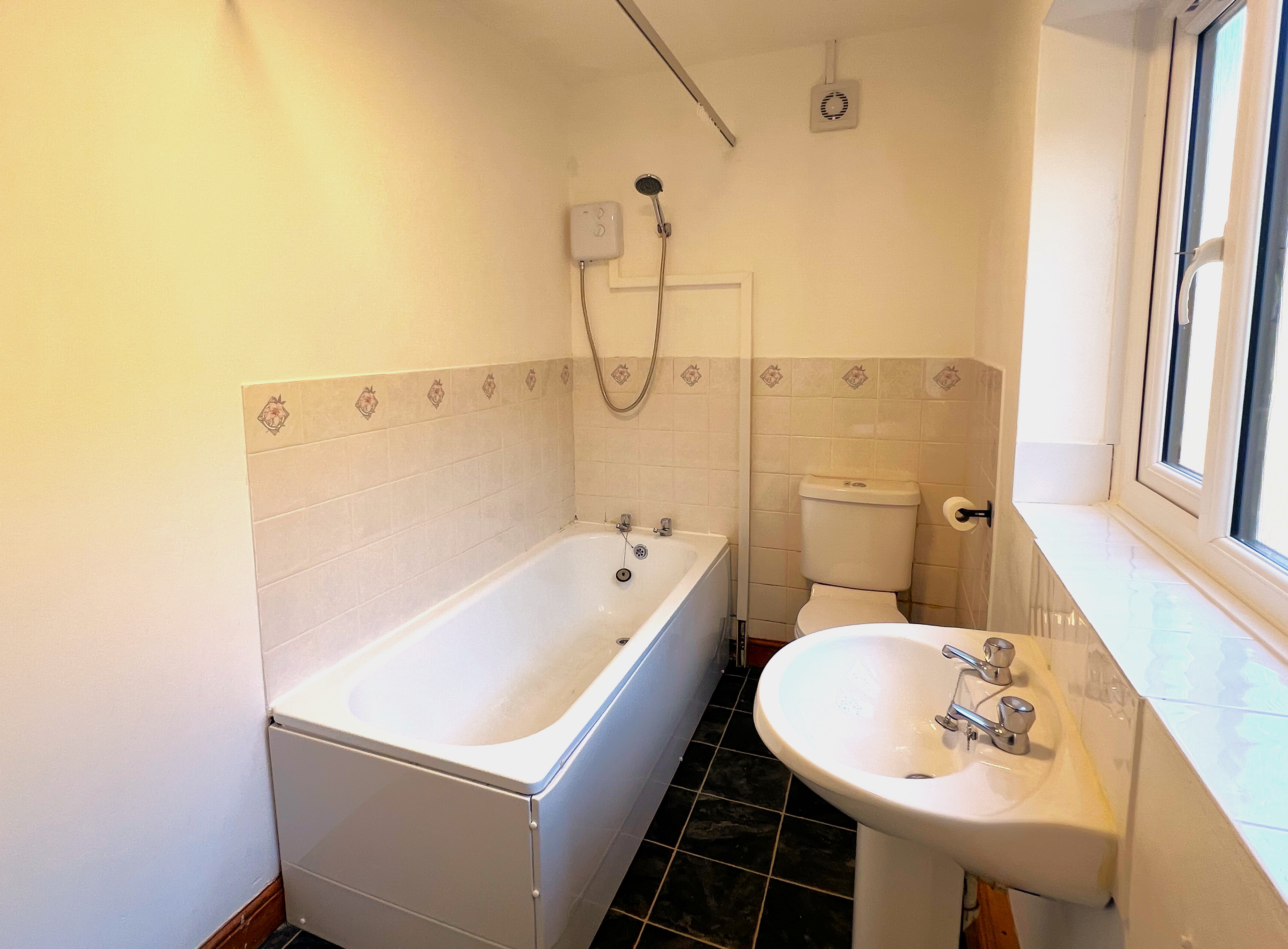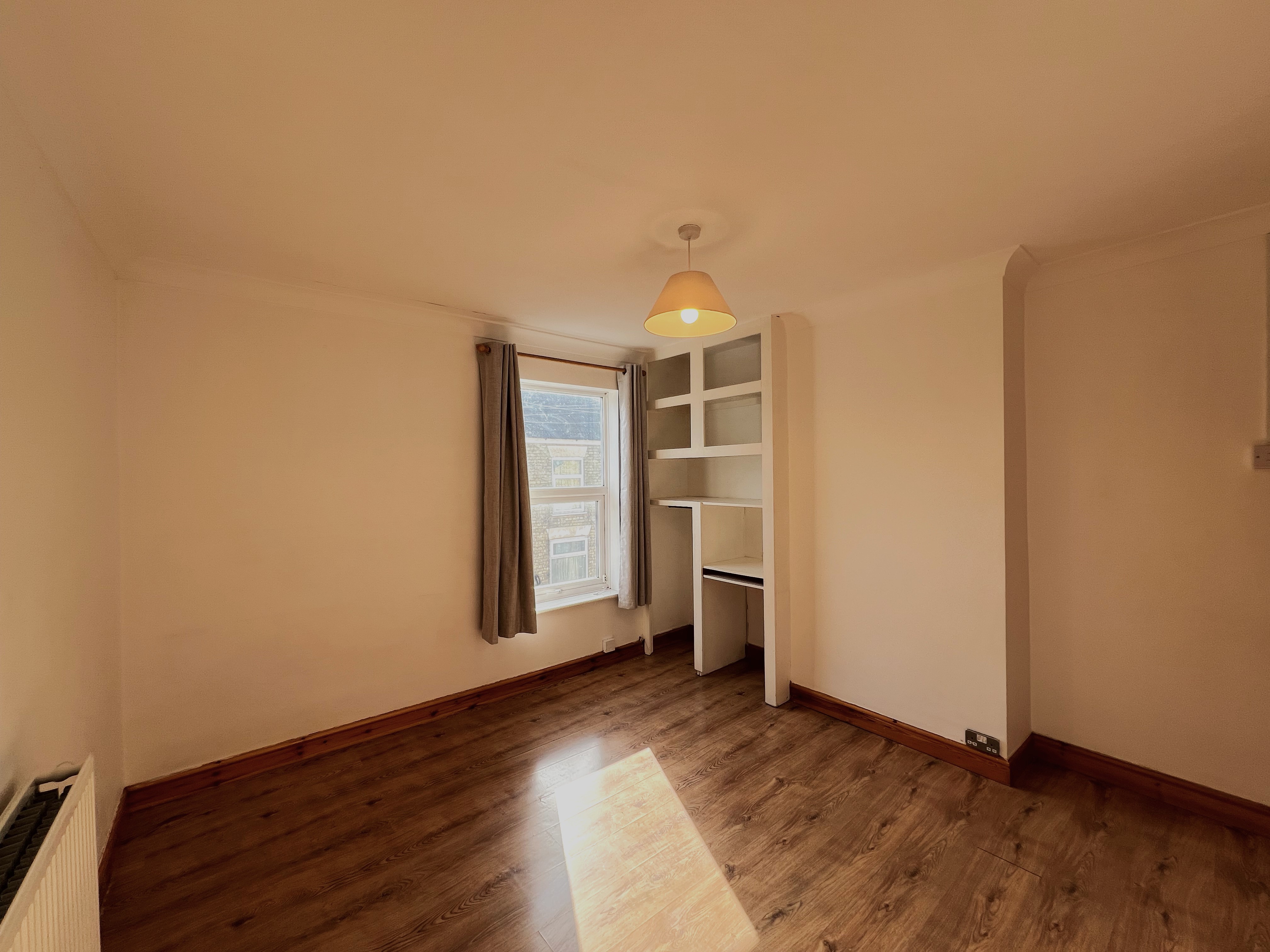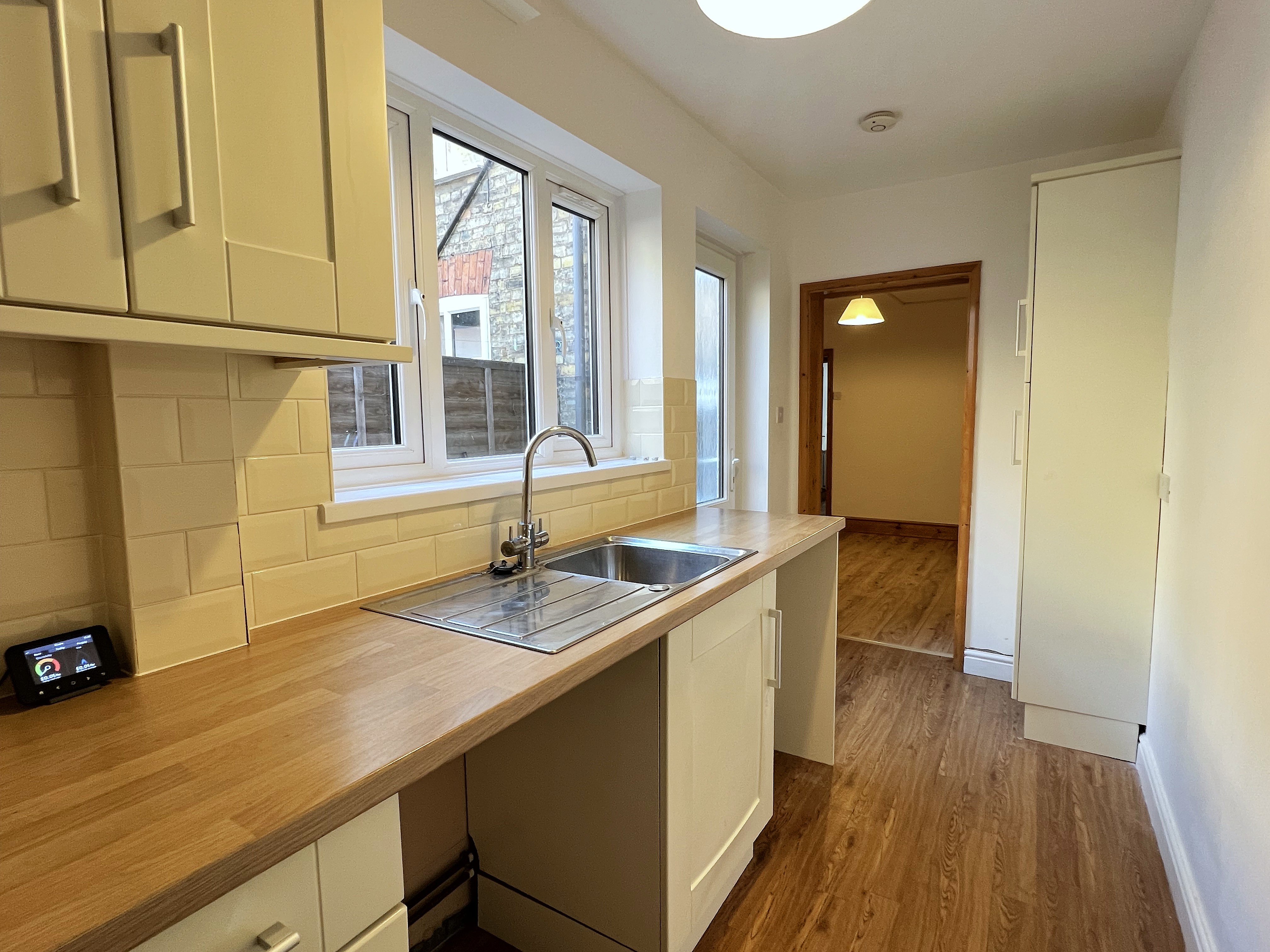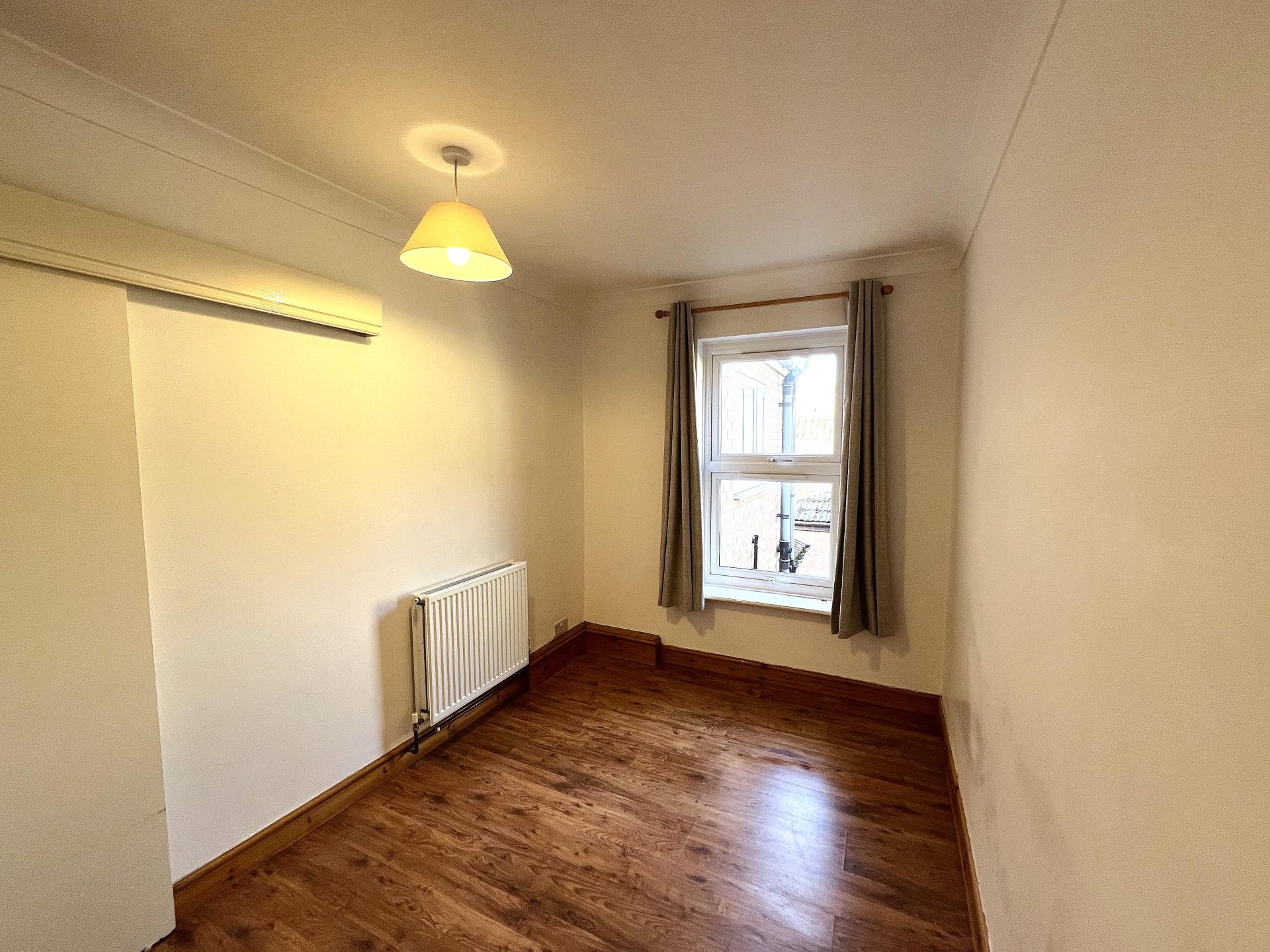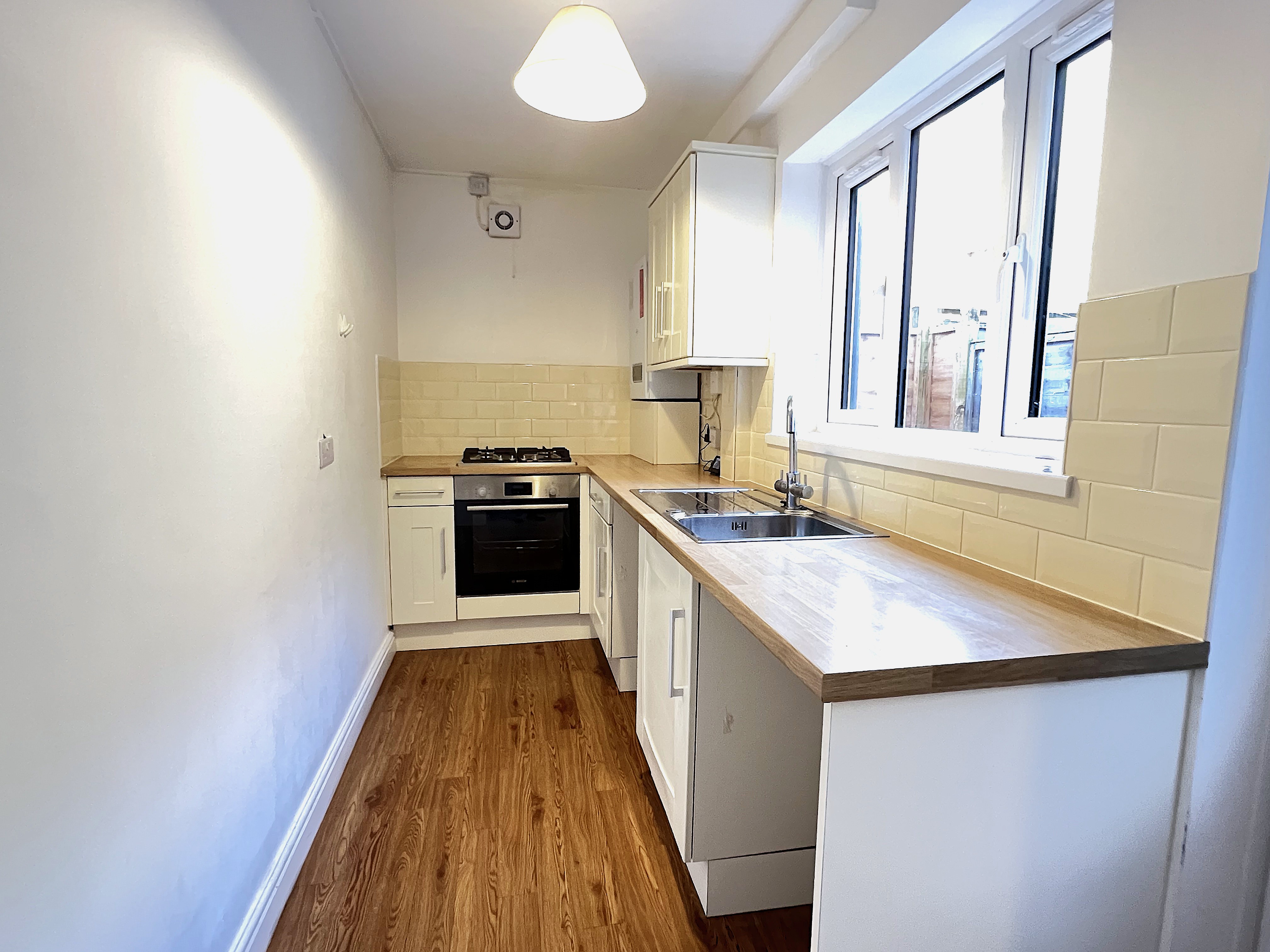 A well-maintained 2 bedroom mid-terrace house in the Eastfield area of Peterborough, within walking distance of the city centre.\n\nPlease note before enquiring: Standard referencing and affordability checks apply. As a guide, combined household income should typically be at least £25,000 per year.\n\nOffered unfurnished and available now, the property benefits from gas central heating via a recently installed Glow-worm combi boiler, double glazing throughout, smart meters, neutral décor, and wood laminate flooring to the main living areas and bedrooms.\n\nAccommodation comprises:\n\nGround Floor\nFront living room – 3.35m x 3.35m\nRear dining / second living room – 3.40m x 3.35m with understairs storage\nKitchen – 1.70m x 4.00m with cream units, wood-effect worktops, Bosch electric oven and Bosch gas hob. There is under-counter space for a fridge/freezer and washing machine. These are not included but may be provided by separate negotiation if required.\n\nFirst Floor\nBedroom 1 – 3.35m x 3.35m (double room)\nBedroom 2 – 2.15m x 3.35m (single room)\nBathroom – 1.70m x 4.00m with bath, overhead shower, wash basin and WC\n\n\nOutside is a small private enclosed rear yard.\nOn-street residents permit parking via Peterborough City Council.\nCouncil Tax Band A. EPC Rating D.