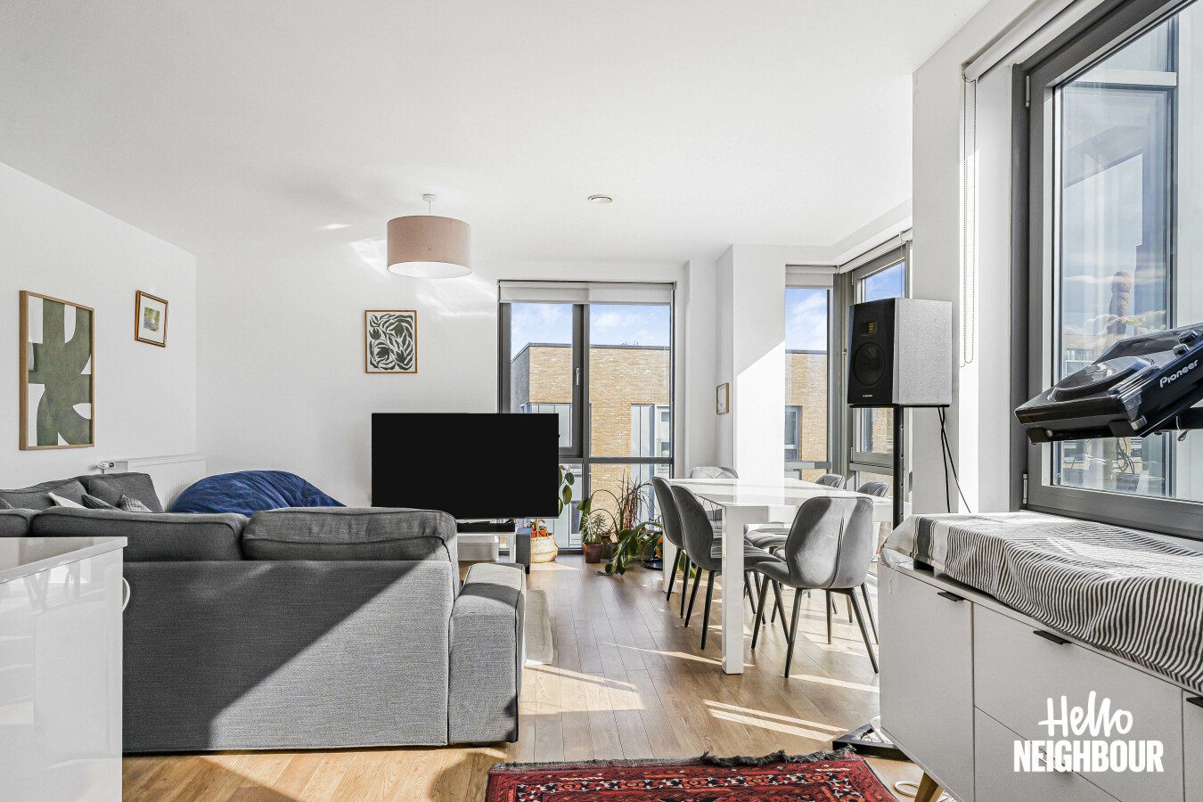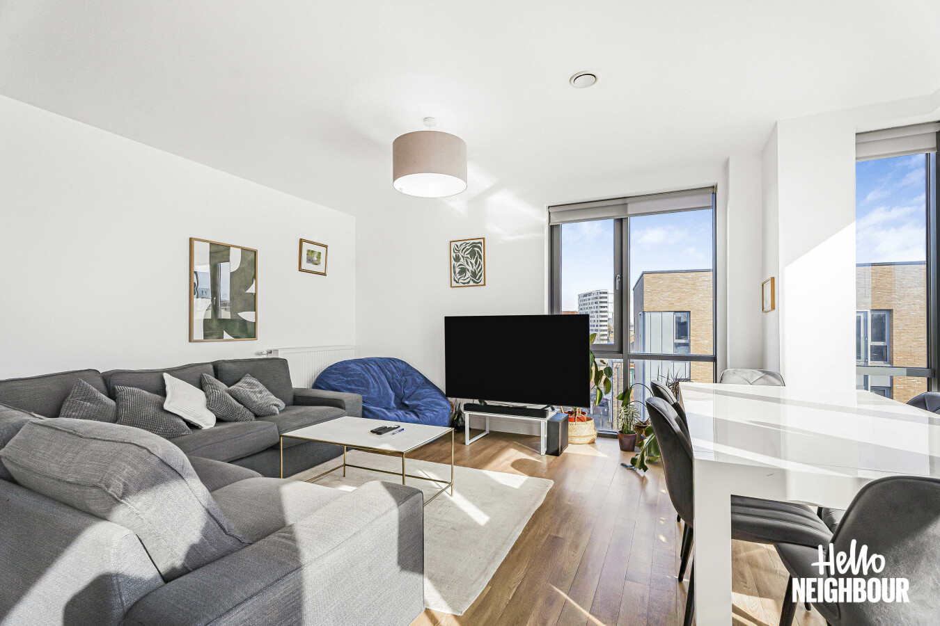 Hello Neighbour are proud to present this stunning 3-bedroom, 2-bathroom apartment, set within a modern development and offering bright open-plan living with impressive skyline views.\n\nThe property features a spacious open-plan living and kitchen area, finished to a high standard with sleek integrated appliances, a large kitchen island, and ample storage. Floor-to-ceiling windows flood the space with natural light and lead out to a private balcony, perfect for relaxing or entertaining.\n\nThere are three well-proportioned bedrooms, all offering a clean, modern finish, with the main bedroom benefiting from great natural light. The property also includes two contemporary bathrooms, one with a full-size bath and the other a stylish walk-in shower.\n\nAdditional benefits include wooden flooring throughout, a bright and airy feel, and a well-maintained modern building.\n\nLocated in a vibrant area, the property is within easy reach of local amenities including supermarkets, cafes, and restaurants, as well as nearby green spaces.\n\nPets: not allowed.\nSharers: max 4 per HMO licence but 3 would be better.\nParking: none.\n\nTo book a viewing: submit your enquiry and you'll receive an email and SMS detailing availability - within 10 min