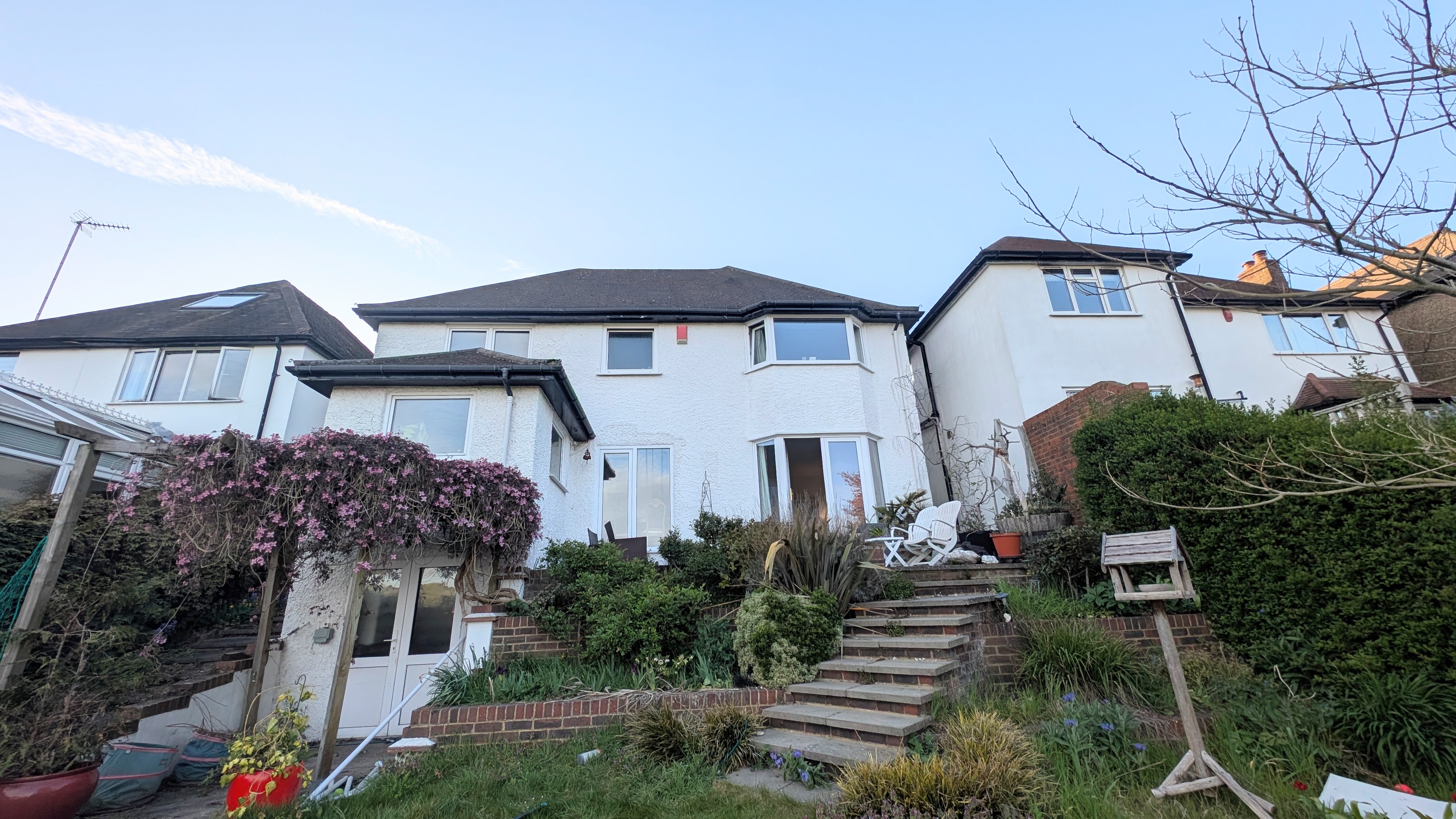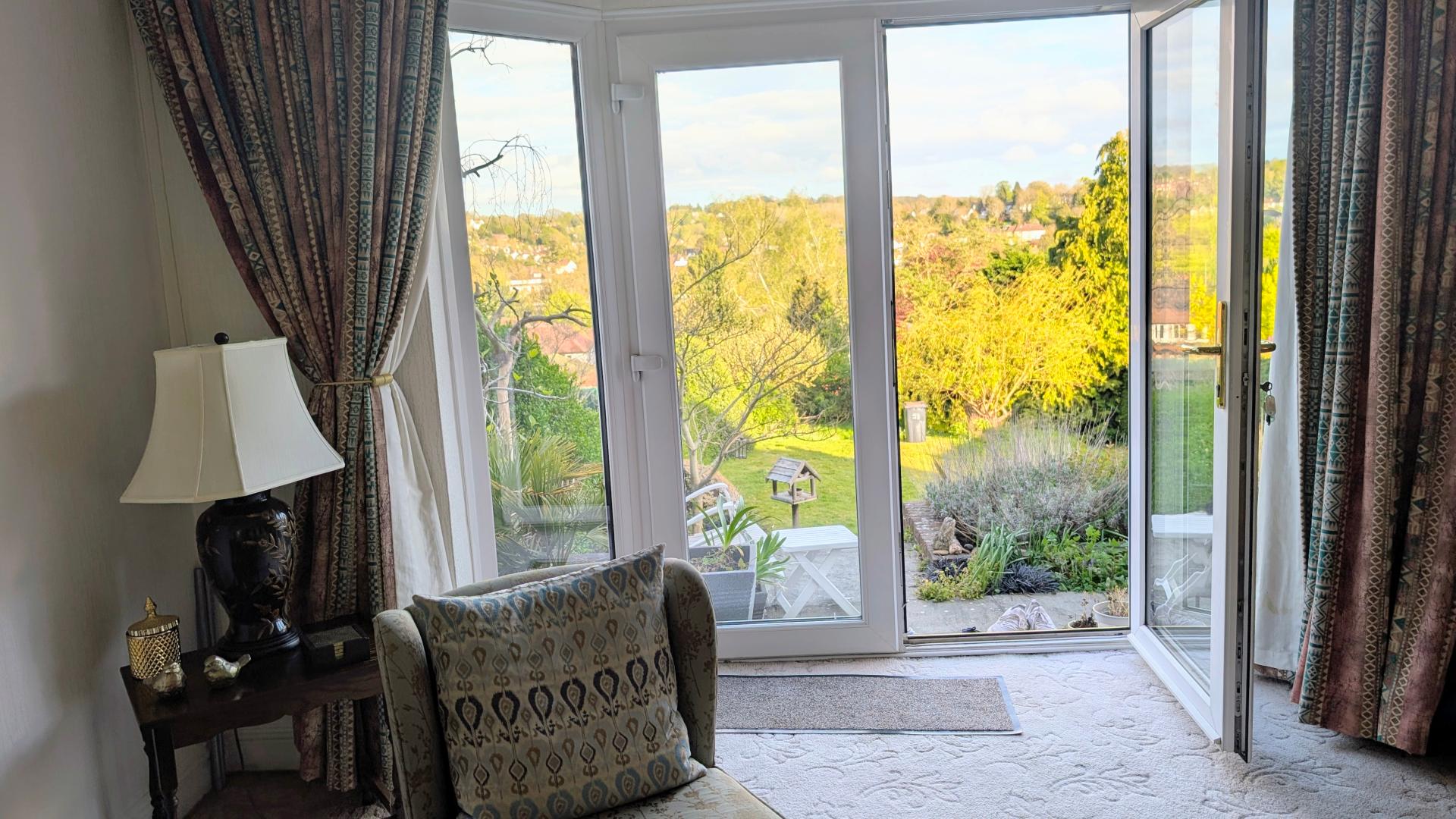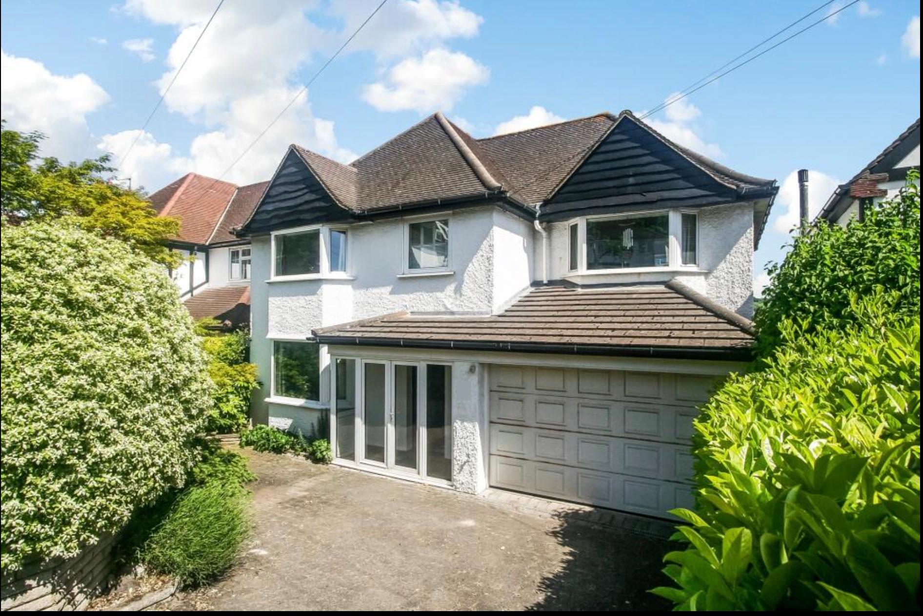 Spectacular 4-Bed Detached Home with South-Facing Garden\n\nLooking for a home with the Wow factor? This charming 1930s family residence in West Purley offers some of the best views in the area: \nThe Views: Uninterrupted panoramic vistas across the valley from all rear-facing rooms.\nThe Garden: A massive South-facing rear garden with a sun terrace and manicured lawns.\nThe Space: Two distinct reception rooms, a large kitchen with garden access, and four well-proportioned bedrooms.\nThe Curb Appeal: A beautiful front garden featuring Japanese Maple and Lavender, with a block-paved driveway for 2–3 cars.\nThe Extras: Large garage with electric door, a dedicated basement storage/boiler room, and a sought-after West Purley location \n\nBeyond the enclosed porch and spacious entrance hall lies a home designed for comfort. The front-facing sitting room offers a cozy retreat, while the rear living room opens via French doors onto a spectacular sun terrace.\n\nThe kitchen is a chef’s delight, fully fitted and positioned to soak in those valley views. Practicality is covered too, with a covered side passage leading to a guest WC, a large garage with an electric roller door, and steps down to a substantial basement storage room.\n\nUpstairs, the principal bedroom serves as a true sanctuary with fitted wardrobes and far-reaching views. It shares a versatile Jack & Jill bathroom with the landing, complemented by three further bedrooms and a family bathroom.