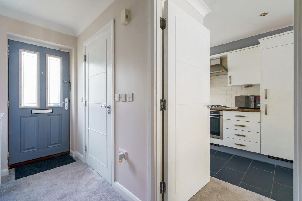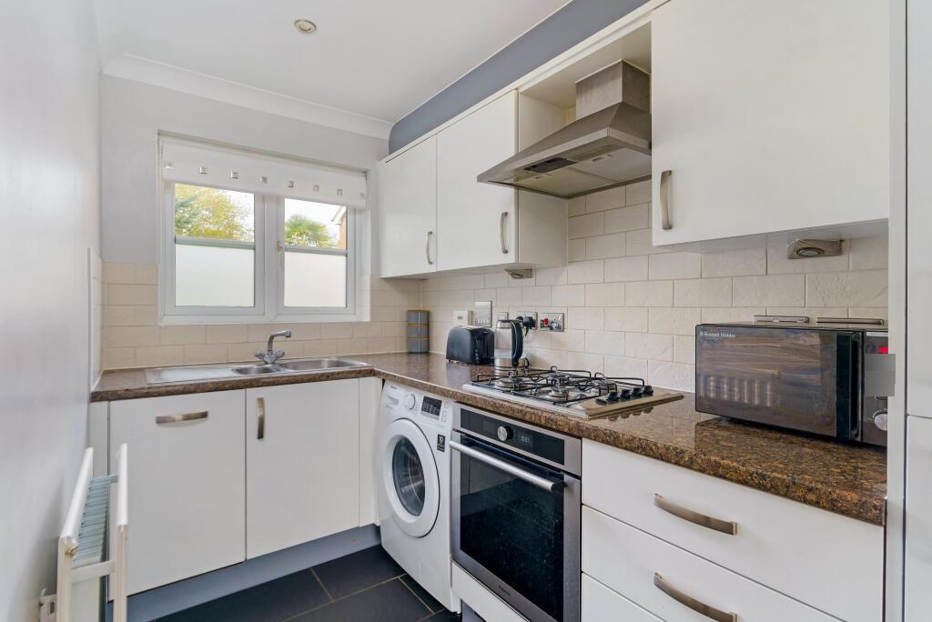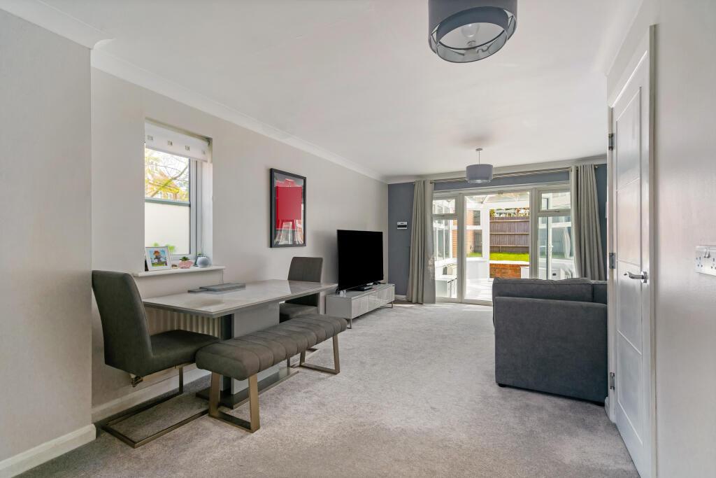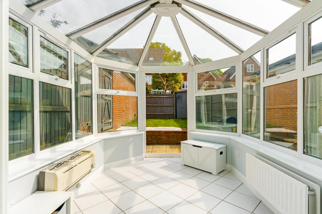 A welcoming hallway invites you into a light filled kitchen and sitting/dining room that combine to produce a wonderful open plan arrangement. The generously sized sitting/dining room is a great place to relax and entertain. Natural light filters into the reception area from a good size conservatory, while French doors lead out onto the low maintenance, landscaped rear garden. Fitted kitchen with tile splash backs, offering a great range of integrated appliances including a dishwasher.\n\nA cloakroom completes the ground floor.\n\nUpstairs, split over 2 floors, a good sized principal bedroom sits exclusively on the top floor benefiting from a modern en-suite shower room and storage within the eaves and fitted wardrobes. Two equally well-presented bedrooms are on the first floor, and whilst one has a further en-suite shower room the other has direct access to the family bathroom which can also be accessed via the landing.\n\nOutside\n\nA beautifully maintained front garden and a driveway that supplies private off-road parking. \n\nSituation\n\nThe property is located in a modern development in a small cul-de-sac position with nearby footpaths leading to Kenley Aerodrome. A good choice of schools include both primary and secondary, Hayes Lane, Audley and De Stafford to name a few.\n\nTRAIN SERVICES: Whyteleafe South Station 1.5 miles and Upper Warlingham Station is 1.7 miles, with direct train services to London Bridge and London Victoria.