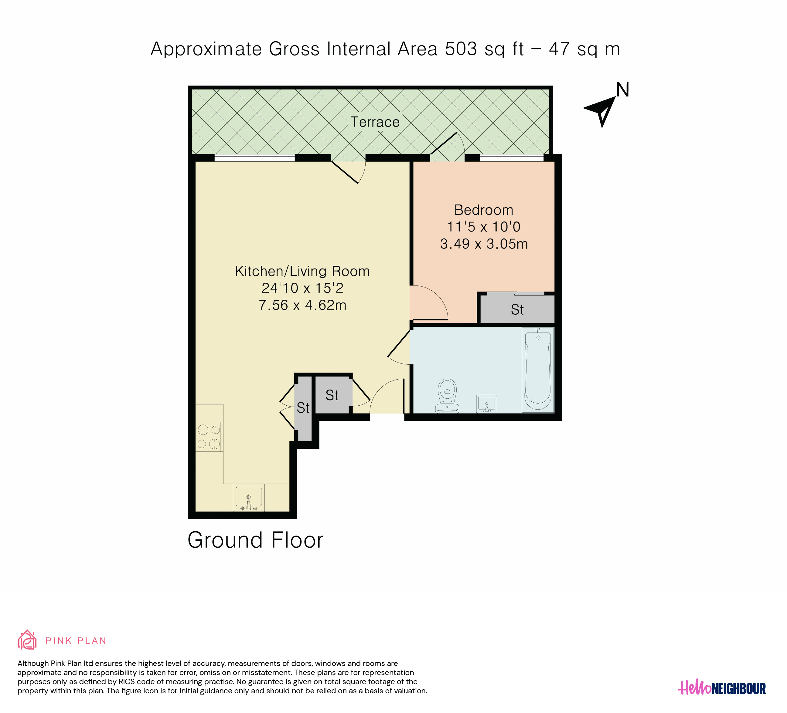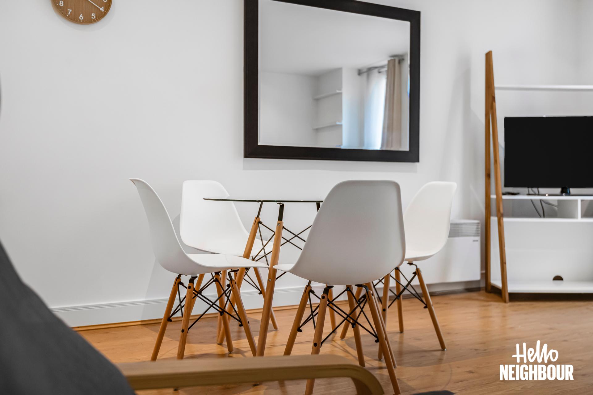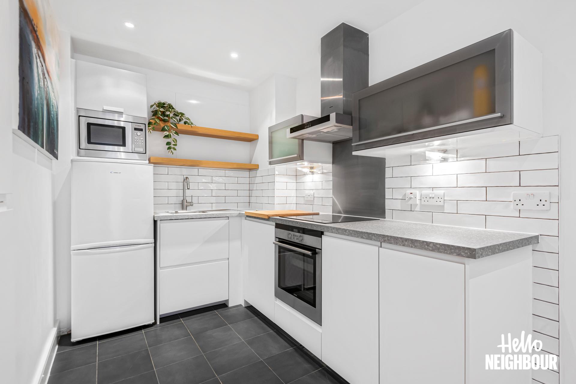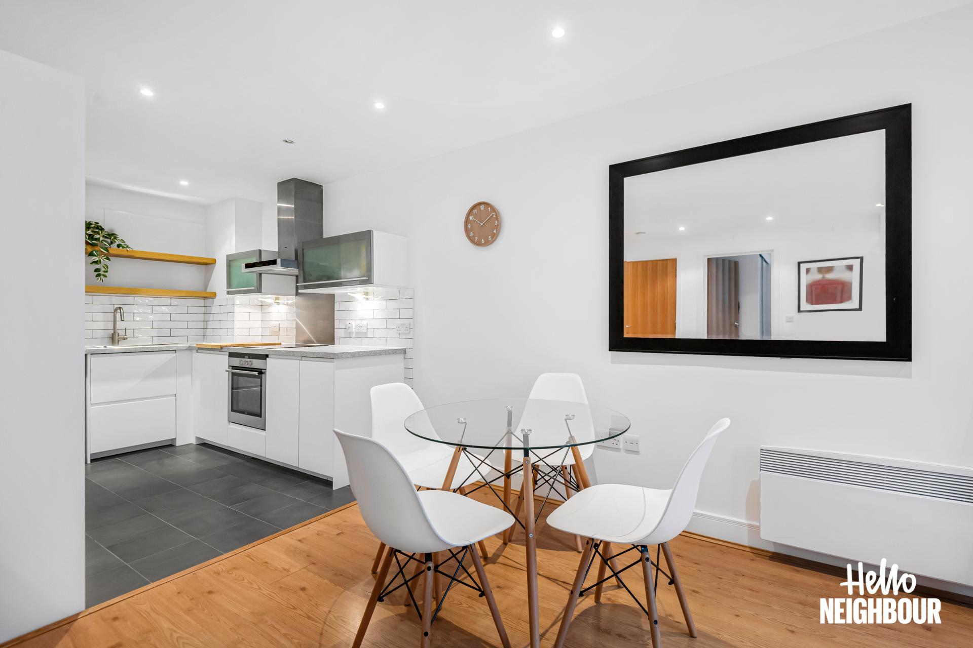 Hello Neighbour are proud to present this bright and well presented 1-bedroom apartment in Axis Court, SE16.\n\nThe property features a spacious open-plan reception area with large windows and direct access to a private terrace, allowing for plenty of natural light and a comfortable indoor-outdoor flow. The modern kitchen is neatly integrated into the living space and comes fully equipped with white goods, offering both style and practicality.\n\nThe bedroom is well sized and benefits from built-in wardrobes, providing ample storage while maintaining a clean and uncluttered feel. A contemporary bathroom with sleek tiling and a full-size bath completes the property.\n\nOffered furnished, this home is ready to move into and ideal for a single professional or couple looking for a well-connected and low-maintenance space.\n\nLocated in SE16, the property is within easy reach of local amenities including cafes, shops and green spaces, as well as convenient transport links for access into Central London.\n\nParking: None \nPets: Not accepted\n\nTo book a viewing: submit your enquiry and you'll receive an email and SMS detailing availability - within 10 min