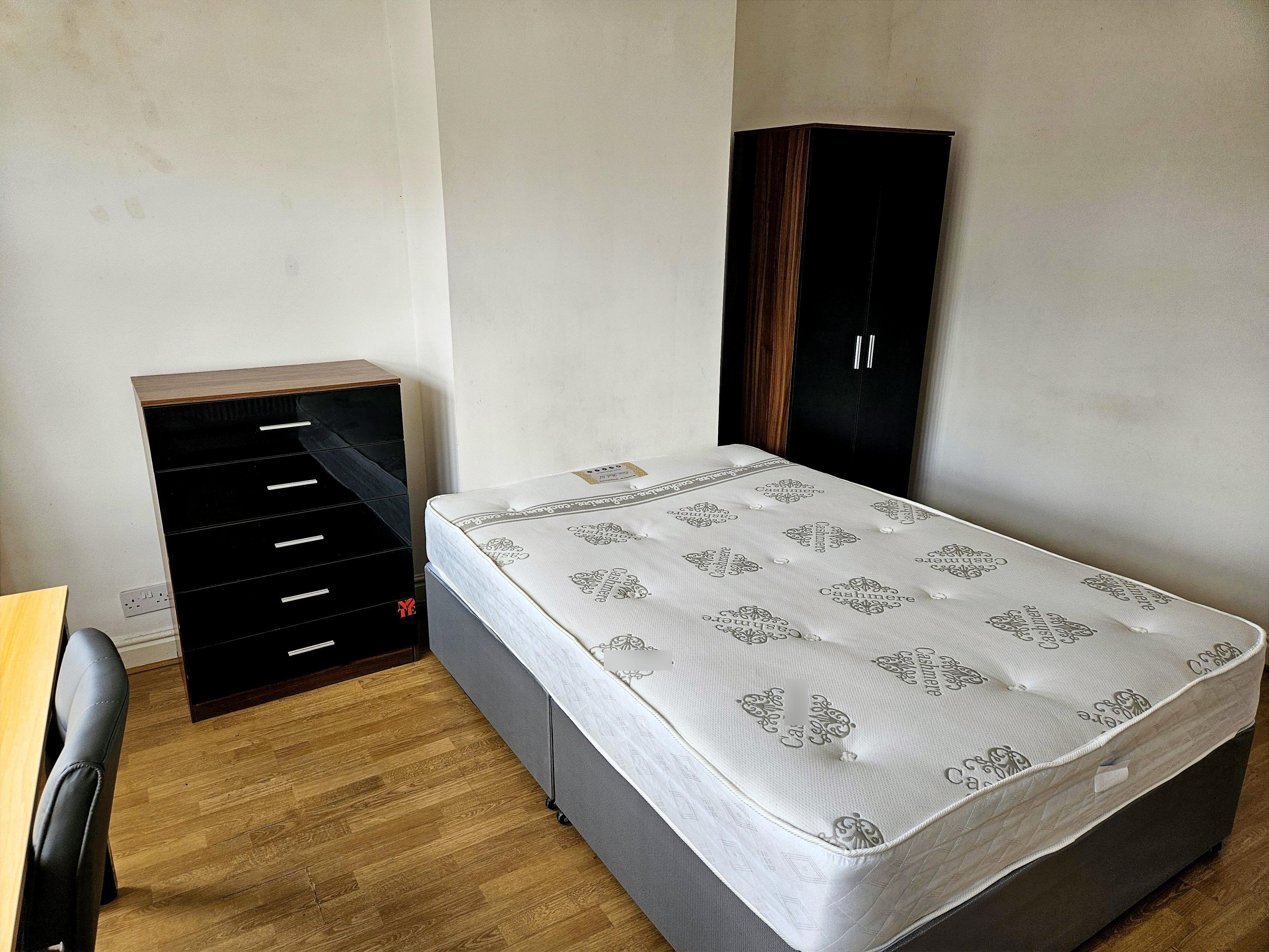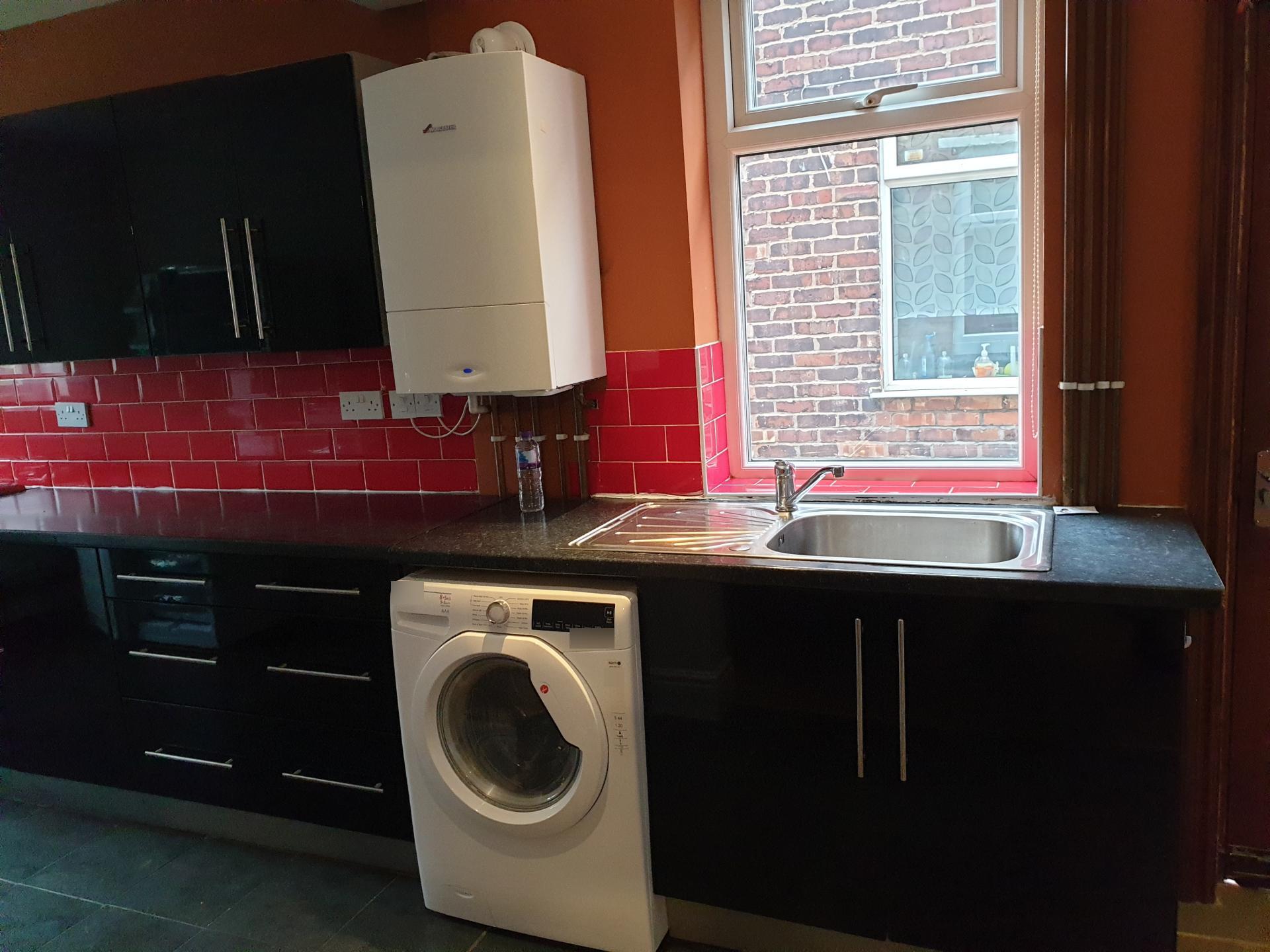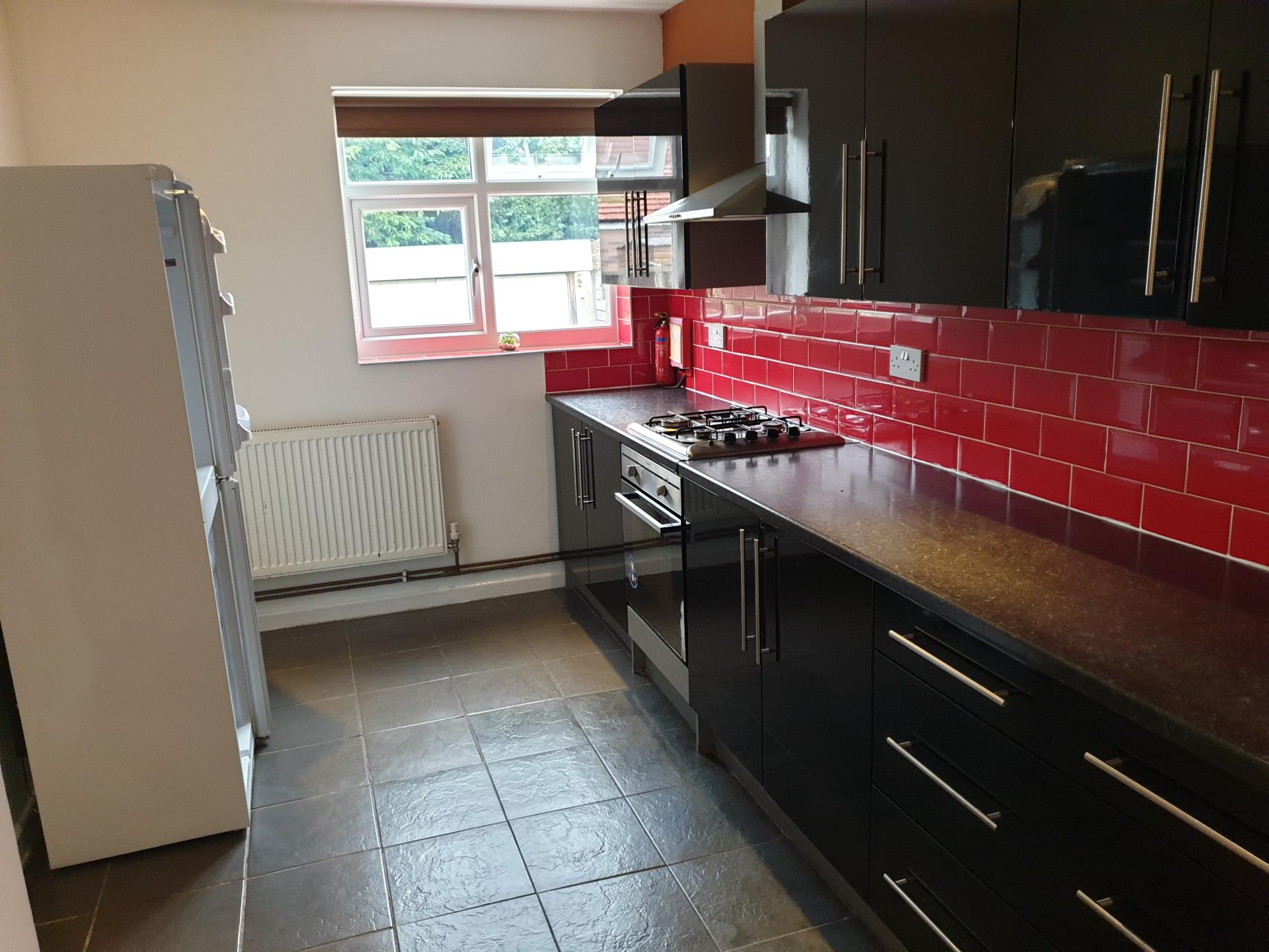 A superb property with spare room for those with lots of baggage which can also double-up as a guest room. Benefitting from a recent makeover, it’s the perfect student home for a group of friends in search of affordable quality accommodation.\n\nThis stunning and spacious home comes fully furnished with an open-plan lounge leading into the kitchen. The lounge comes with comfortable leather settees, matching coffee table and oak laminate flooring and a 65 LG TV!\n\nThe kitchen is an absolute treat especially kitted out for the discerning chefs amongst yourselves offered in “Black High Gloss” with soft close doors & drawers boasting ample storage. Black ceramic tiled floor & red “brick effect” glazed tile surround, 4 x burner gas hob and built-in Oven, 2 x Fridge Freezer & Washer/Dryer not forgetting to mention energy efficient Philips LED down lights.\n\nDouble Bedrooms with oak laminate flooring, key operated locks on all doors, double beds, desk & chair and high-end furniture pack offering ample storage & space front bedrooms come with thermal blackout curtains and rear bedrooms with blackout blinds creating the perfect tranquil personal living space.\n\nThe awesome fully tiled main bathroom is equipped with a powerful walk-in shower “square look” basin & toilet with soft close seat and energy efficient Philips LED down lights. Complimented by a fantastic shower room & separate WC to the ground the floor.\n\nDigital TV Ariel, SKY dish, Virgin Media fibre broadband
