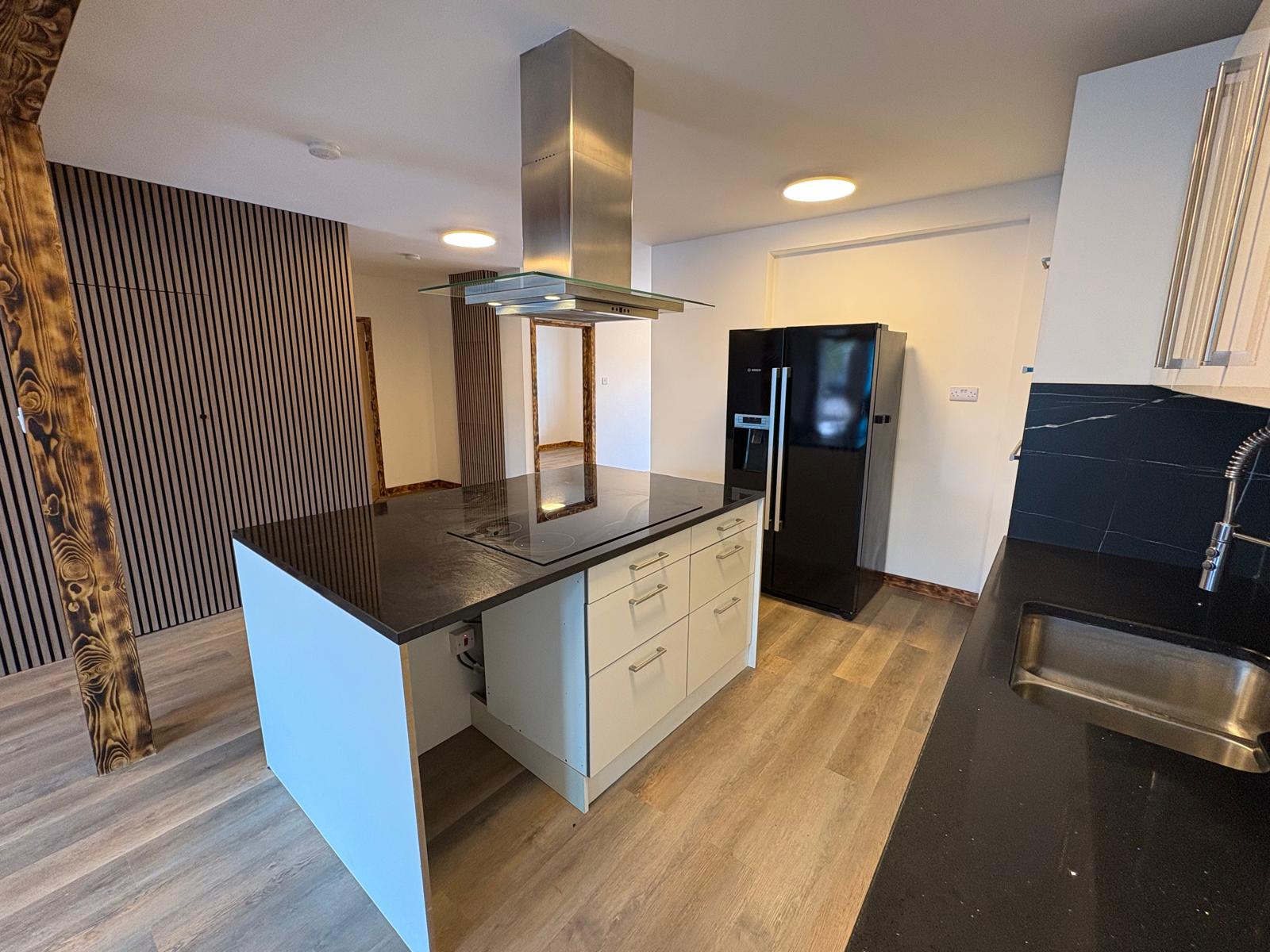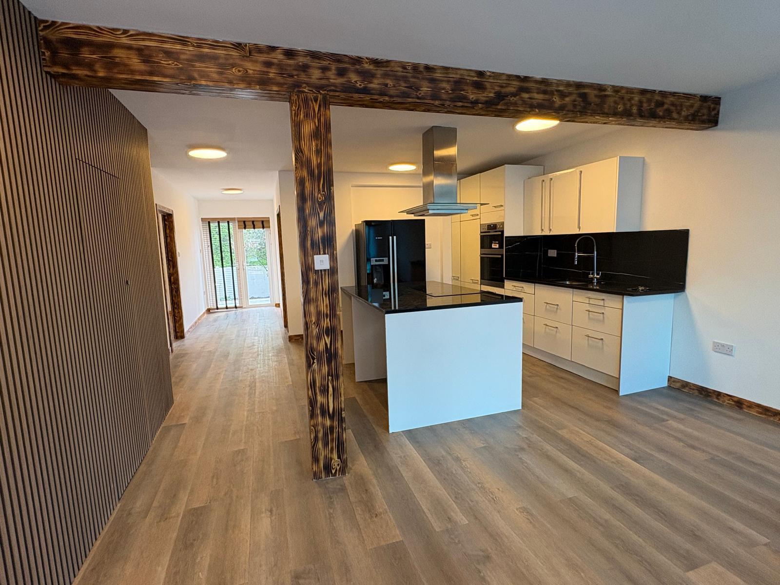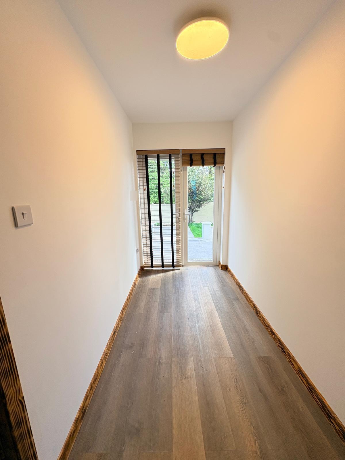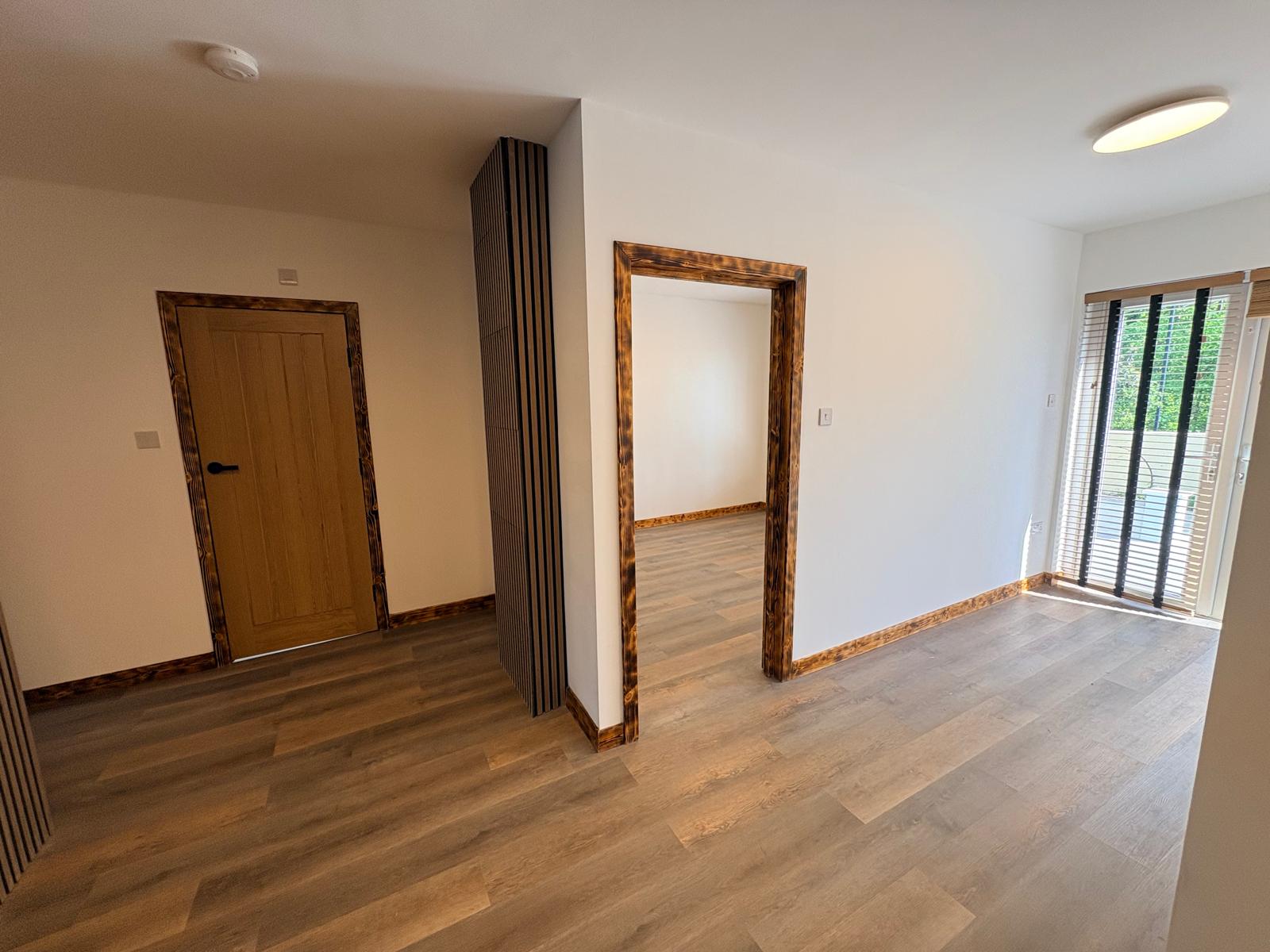 A newly refurbished, ultra-modern 3-bedroom, 1-bathroom ground floor maisonette engineered for high-efficiency urban living. Move-in ready with zero compromise on quality.\n\nNext-Gen Tech & Climate\n\nPower & Heating: 100% electric, zero-gas infrastructure. Features fully integrated underfloor heating for maximum energy efficiency and a clean, radiator-free aesthetic.\n\nSmart Access: Keyless 'Bold' smart cylinder lock for secure, trackable entry.\n\nInterior Specs\n\nKitchen: High-gloss units, solid black granite countertops with matching island, integrated AEG double ovens, glass/steel extractor, and a premium American-style fridge-freezer.\n\nDesign: Striking burnt-timber structural pillars and architraves paired with a bespoke acoustic slat-wood feature wall.\n\nFinishes: Continuous luxury wood-effect flooring, solid granite windowsills across the property, and high-output LED flush lighting.\n\nLayout: Flexible 3-bedroom floor plan, highly optimized for dedicated remote workspaces or versatile bedroom configurations.\n\nExterior Space & Outlook\n\nPrivate Garden: Direct access to a highly practical, low-maintenance outdoor space featuring a large modern paved patio and a manicured lawn section.\n\nViews: Backs directly onto a private woodland and stream, offering exceptional privacy and natural tranquility in the city.